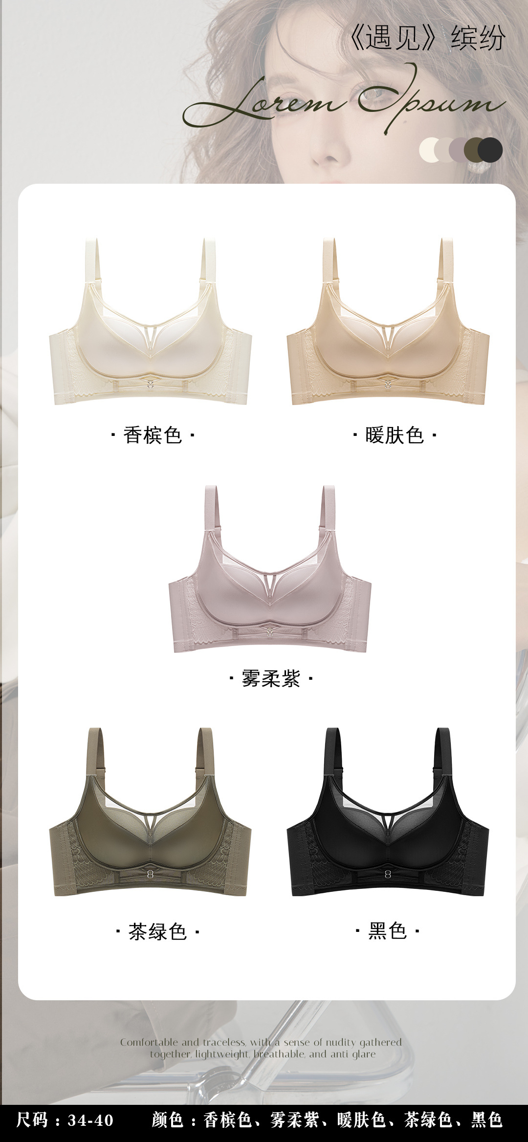 夏季薄款透气无钢圈文胸