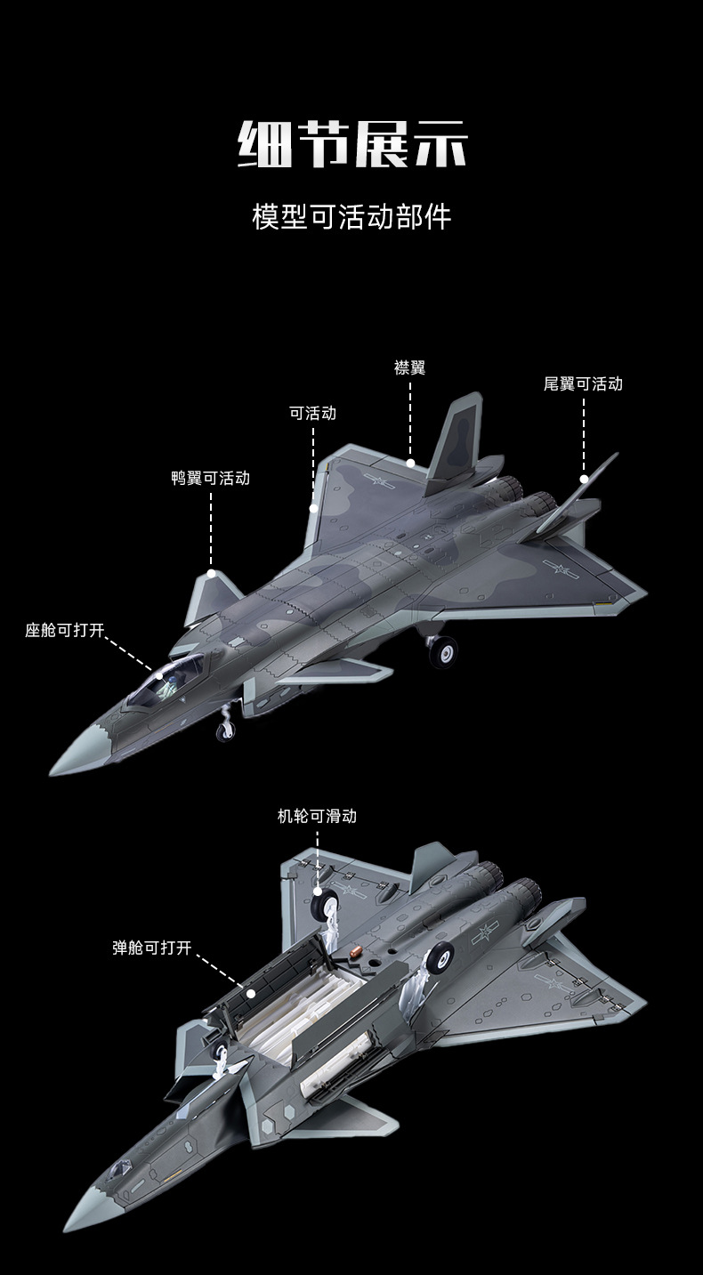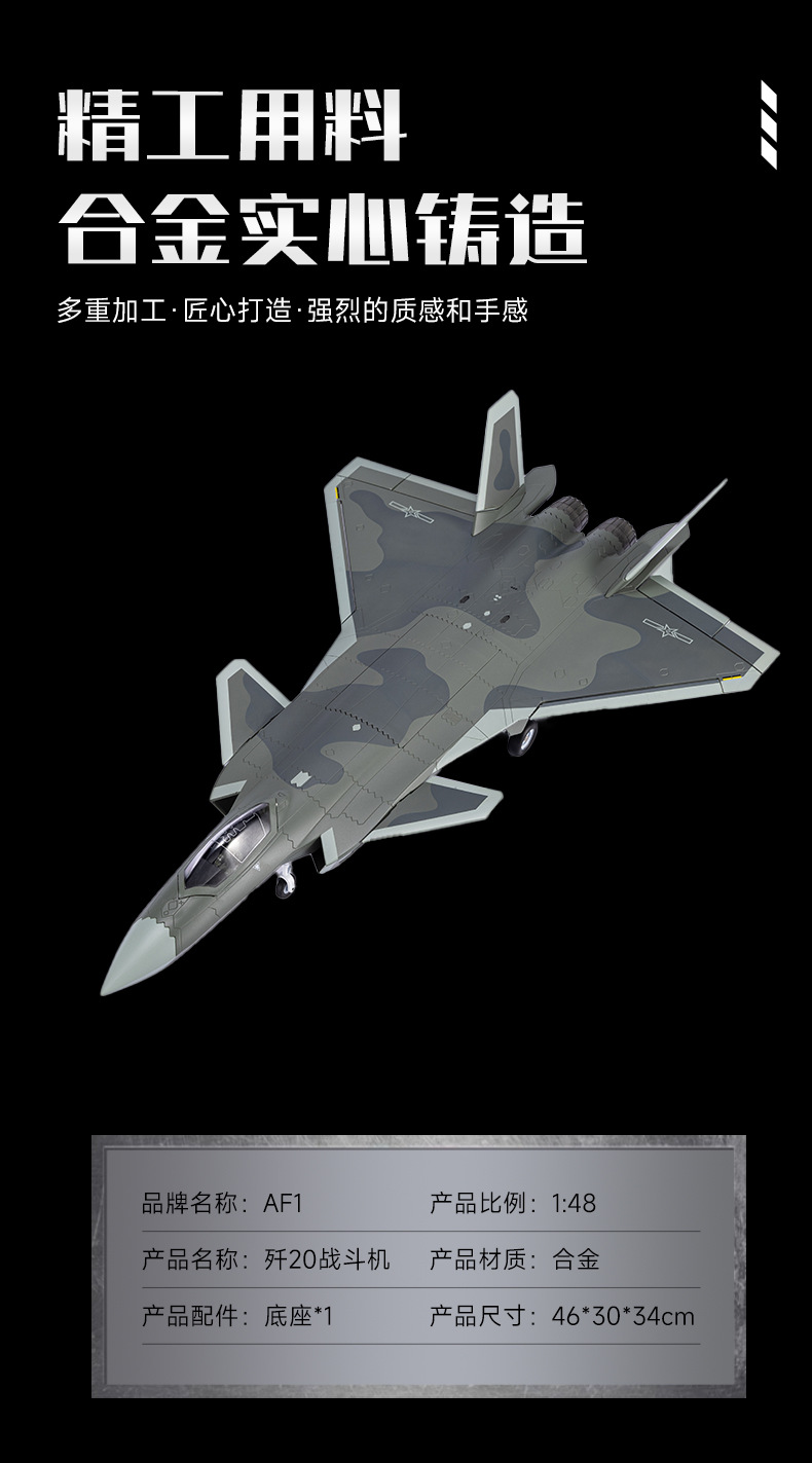 고품질 시뮬레이션 항공기 모델 1:48 J-20 스텔스 전투기 시뮬레이션 합금 항공기 장난감 컬렉션 장식품