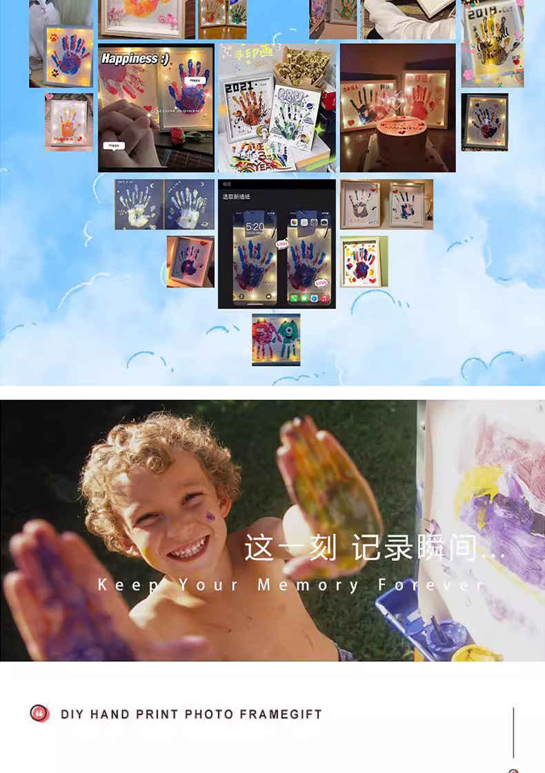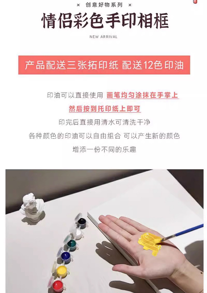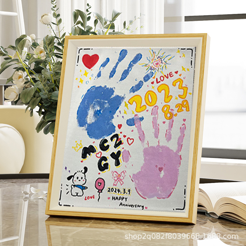 커플의 손자국 DIY 액자, 남자친구와 여자친구를 위한 생일 기념 액자, 손자국 그림 장식품, 액자 및 테이블 장식