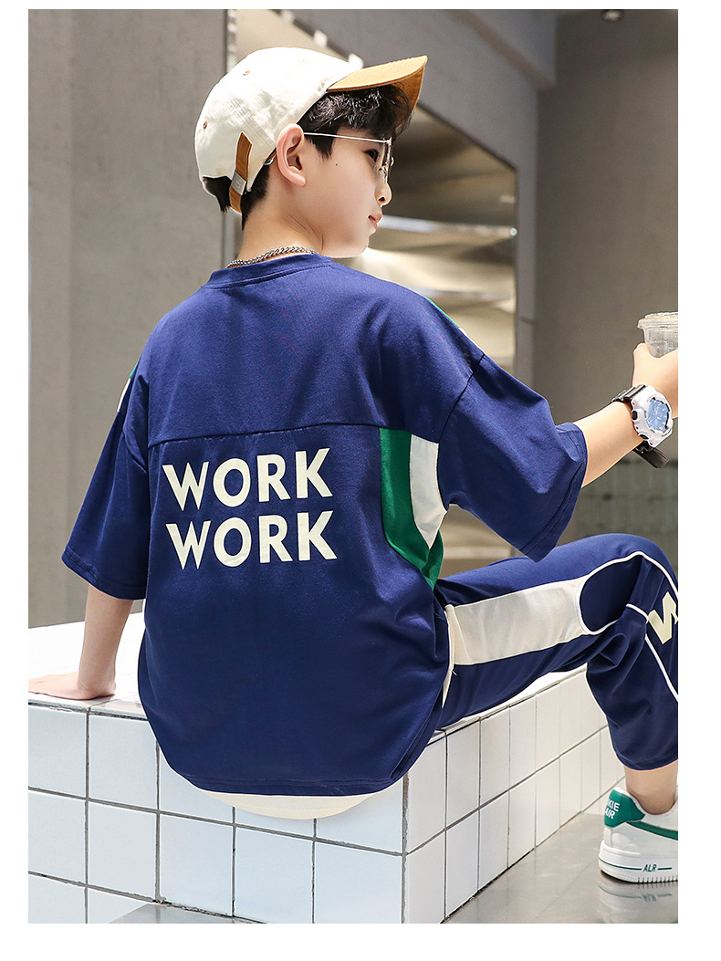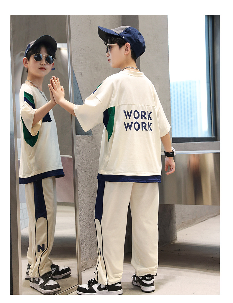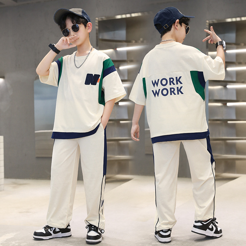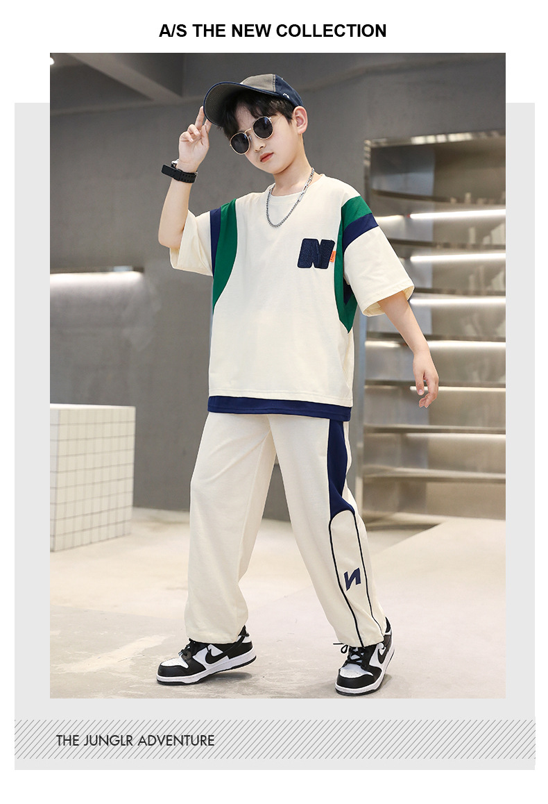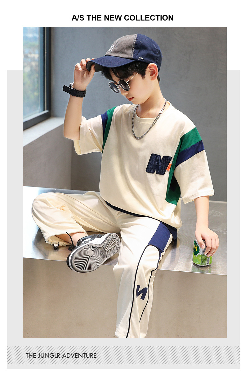 소년 여름 정장 2025 새로운 아동복 반팔 큰 어린이 여름 옷 소년 여름 데님 투피스 세트