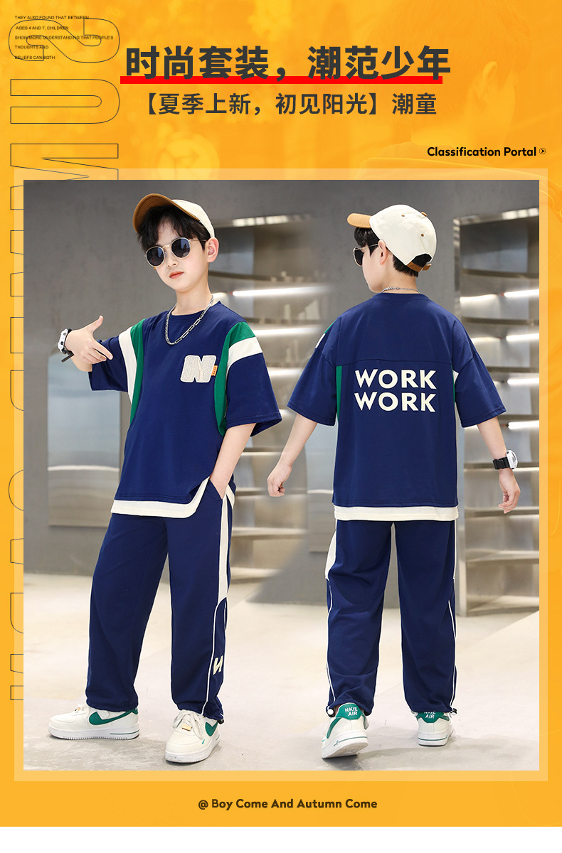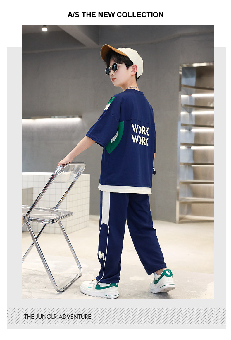 소년 여름 정장 2025 새로운 아동복 반팔 큰 어린이 여름 옷 소년 여름 데님 투피스 세트스토어 가기
