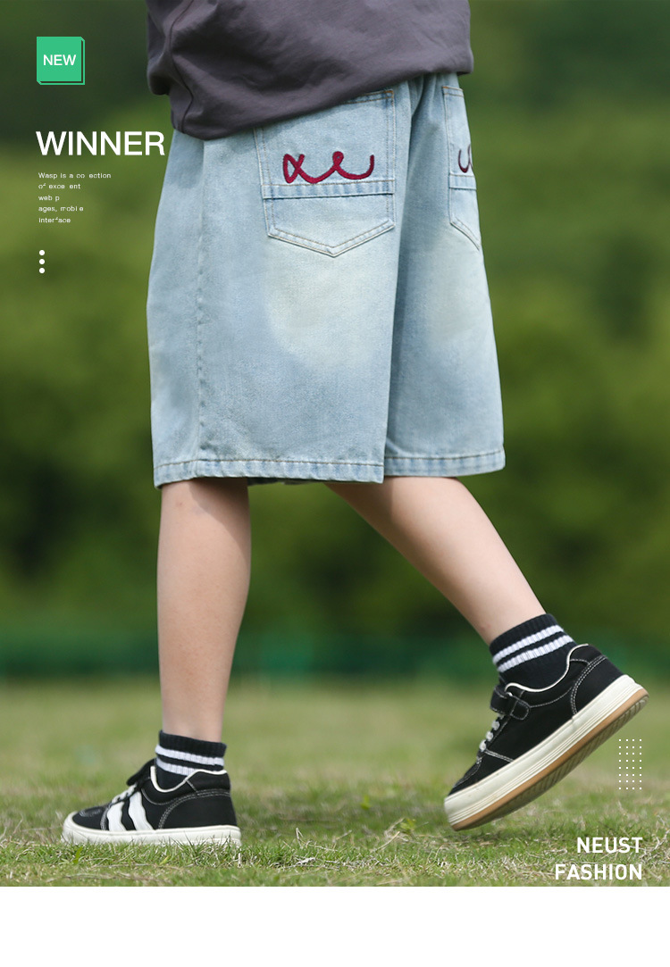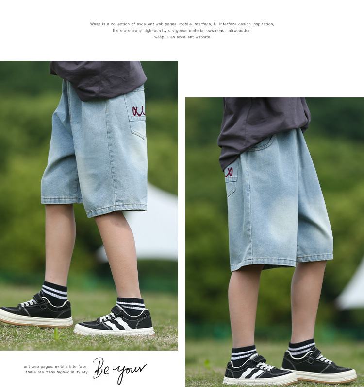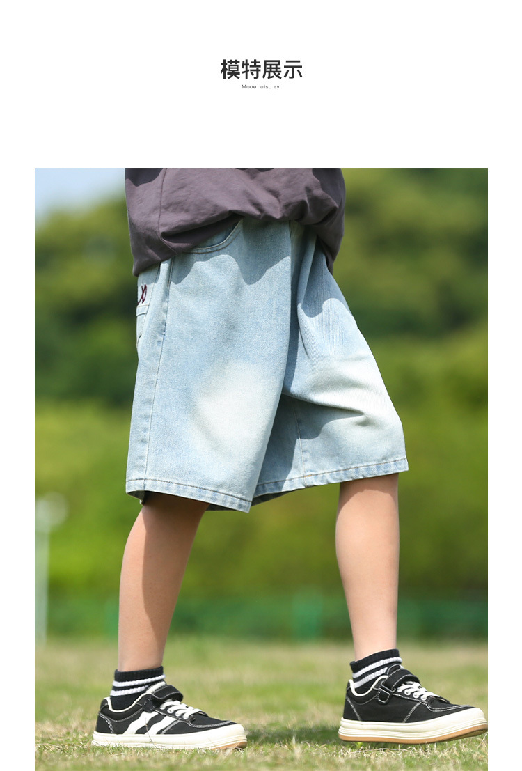 남학생 데님 반바지 여름 어린이 캐주얼 청바지 서양식 중장 바지 대형 어린이 여름 느슨한 올 매치 바지스토어 가기