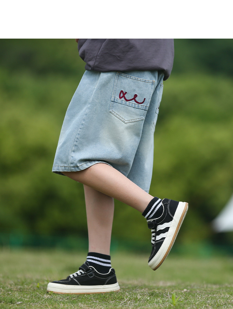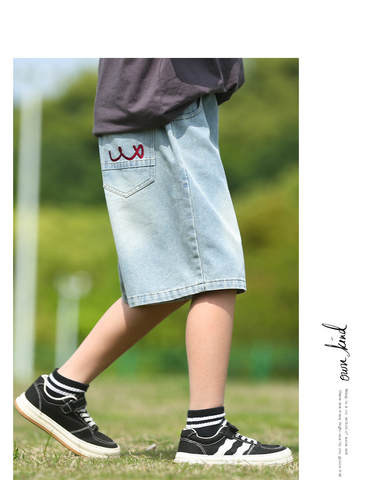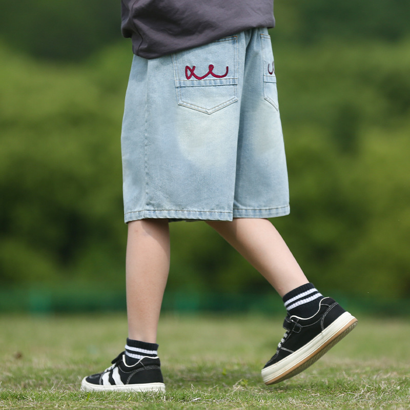 남학생 데님 반바지 여름 어린이 캐주얼 청바지 서양식 중장 바지 대형 어린이 여름 느슨한 올 매치 바지