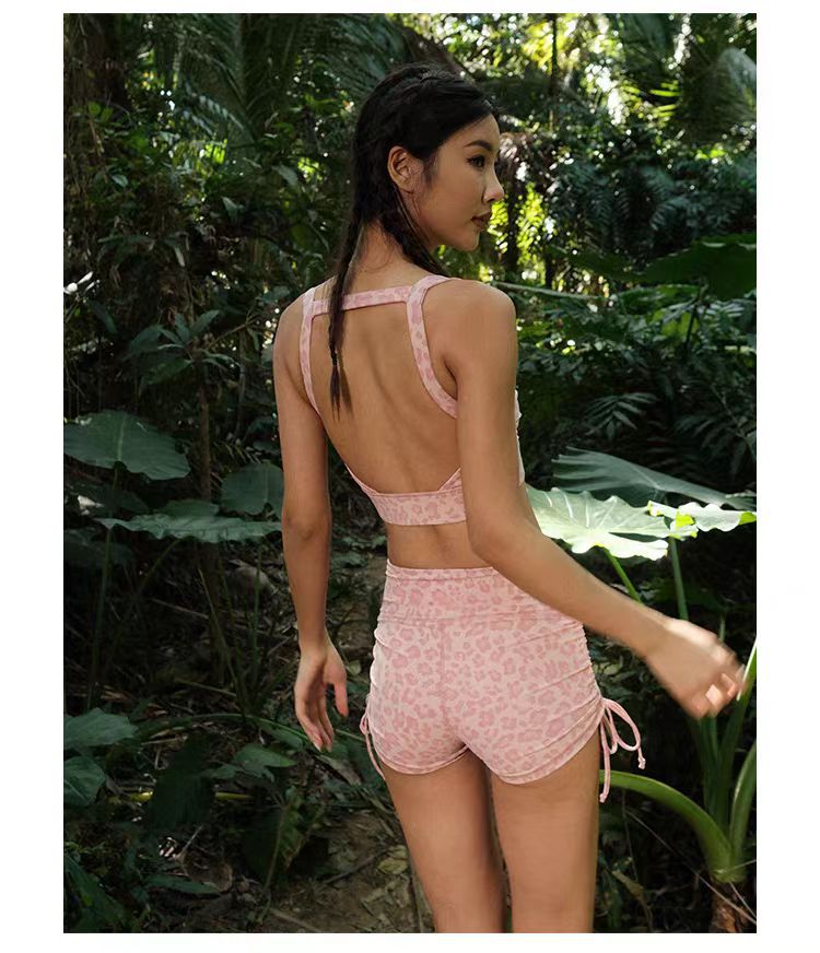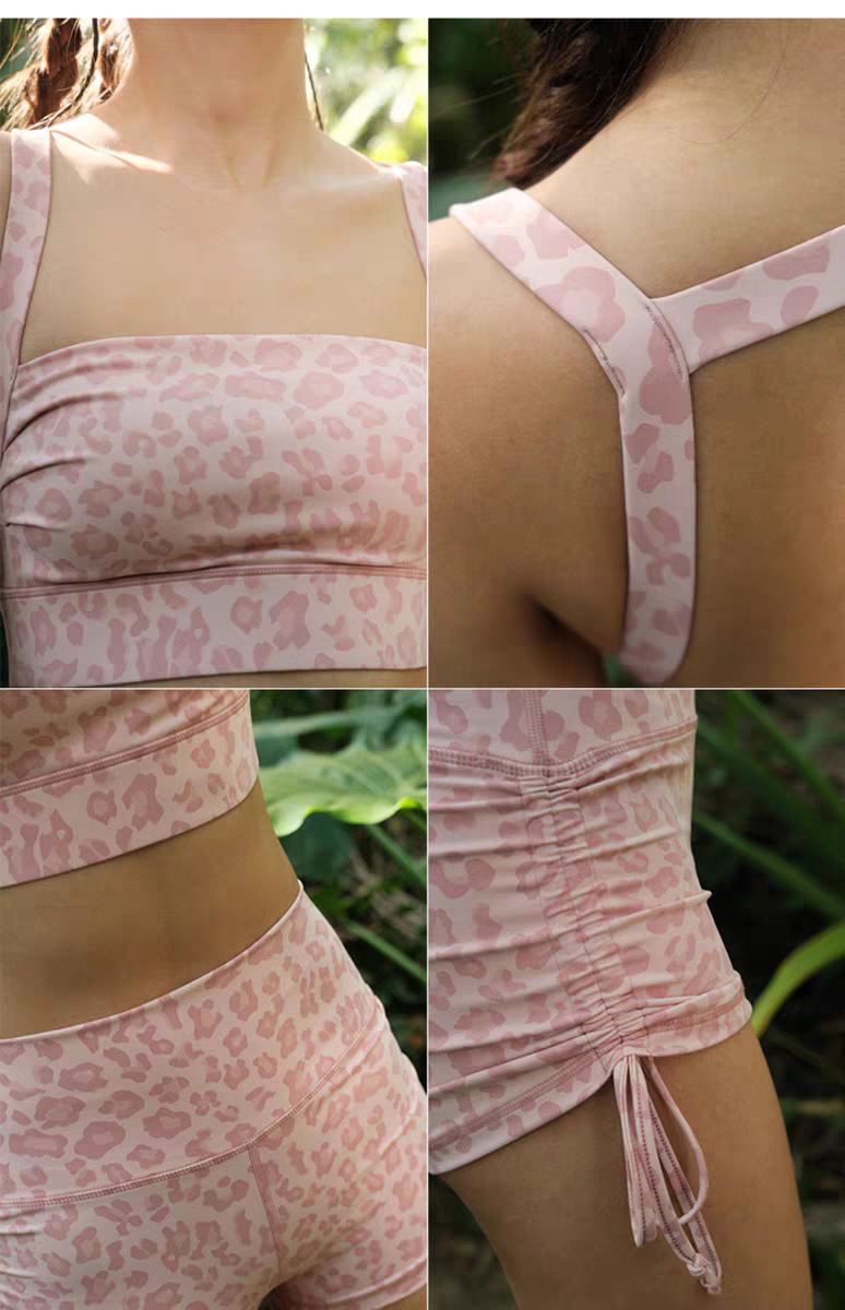 새로운 요가 세트 인쇄 섹시한 충격 방지 푸시 업 러닝 피트니스 스포츠 속옷 3 점 드로우 스트링 반바지 세트