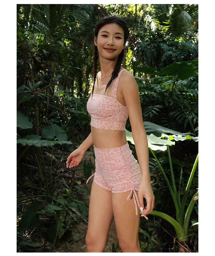 새로운 요가 세트 인쇄 섹시한 충격 방지 푸시 업 러닝 피트니스 스포츠 속옷 3 점 드로우 스트링 반바지 세트스토어 가기