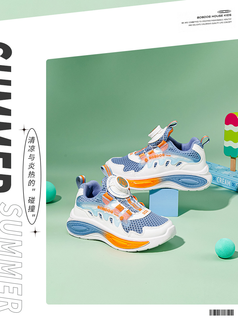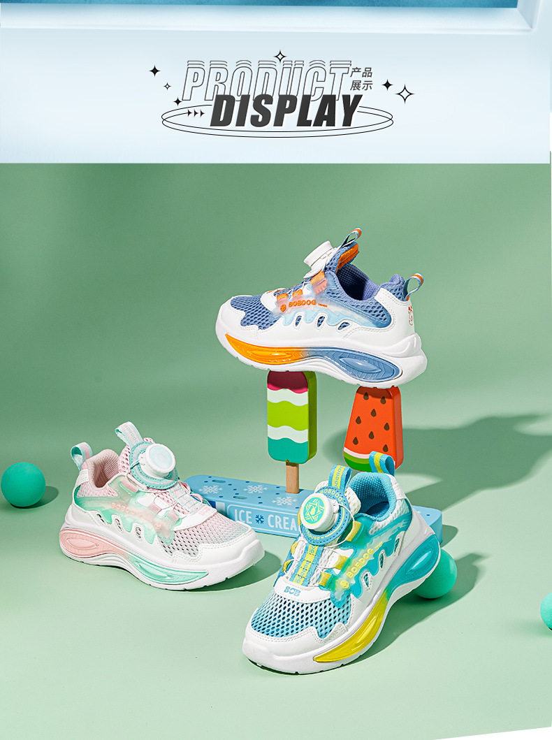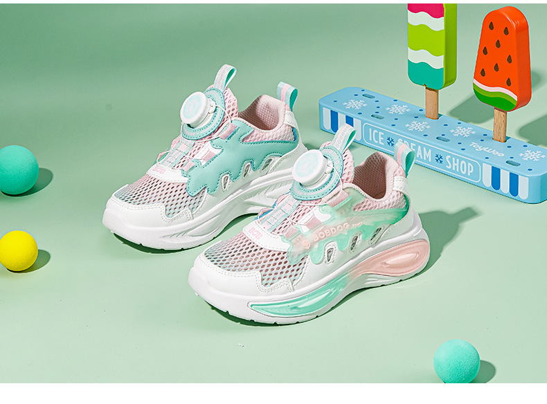 바부 콩 소년 싱글 메쉬 신발 봄과 여름 얇은 농구 신발 여성 신발 소년 회전 버튼 어린이 운동화