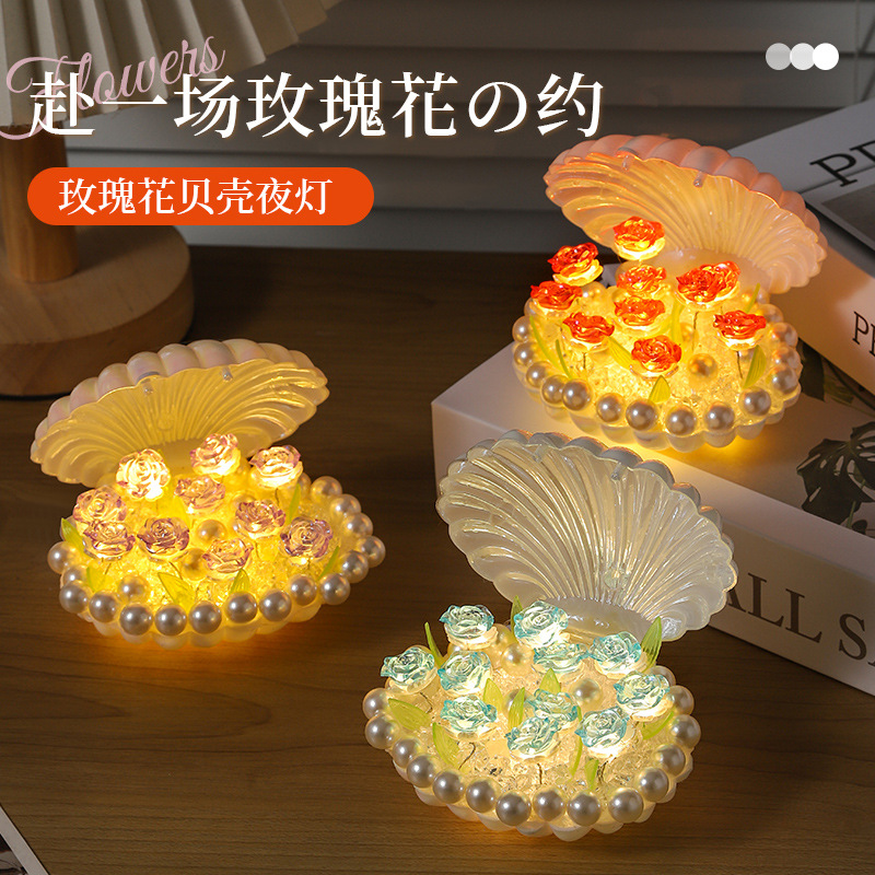 수제 DIY 쉘 장미 꽃 밤 빛 창조적 인 선물 침대 옆 내각 분위기 여자 친구를위한 가벼운 빛나는 장식품스토어 가기