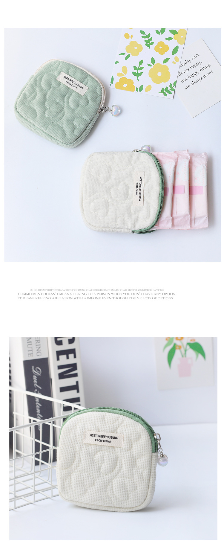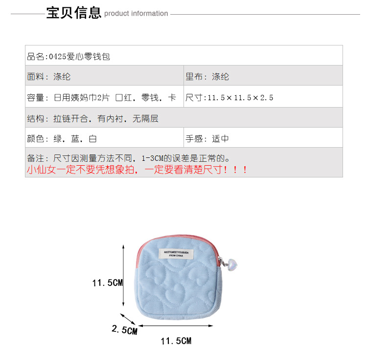 ins 심플한 한국형 학생용 휴대용 지갑 미니백 2026년 신형 지퍼 생리대 수납 가방스토어 가기