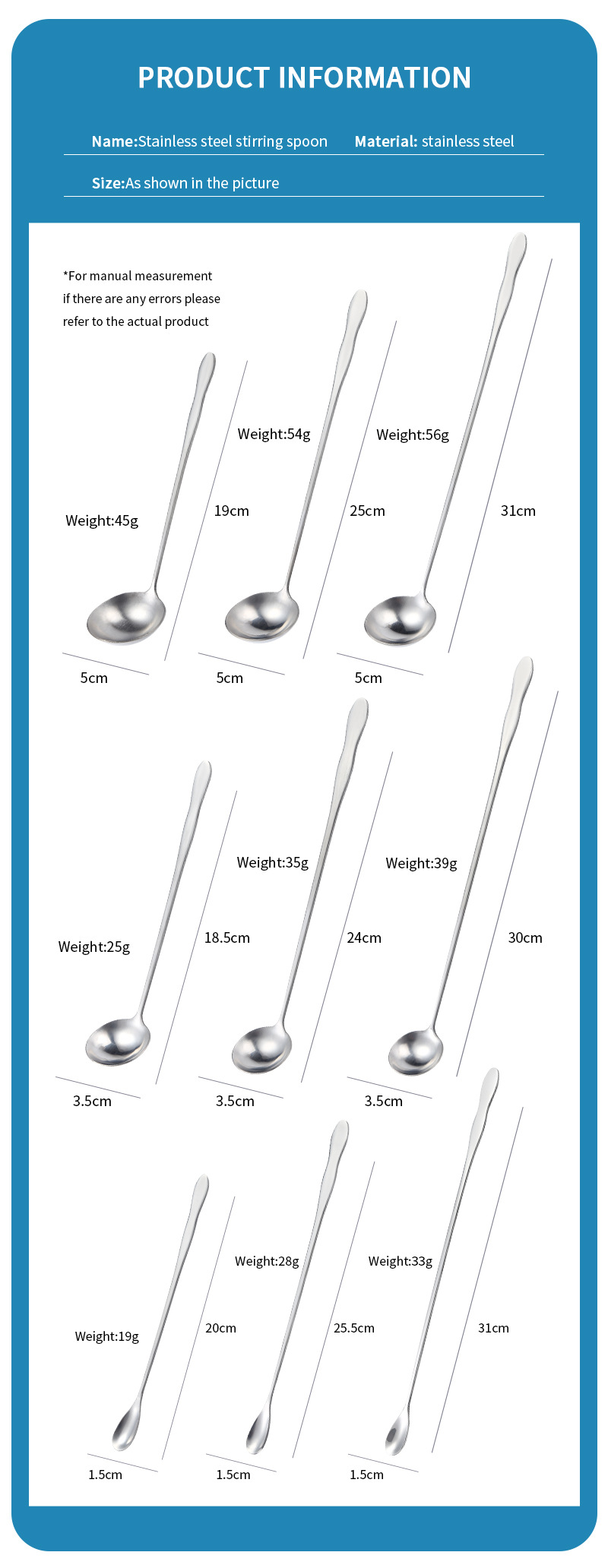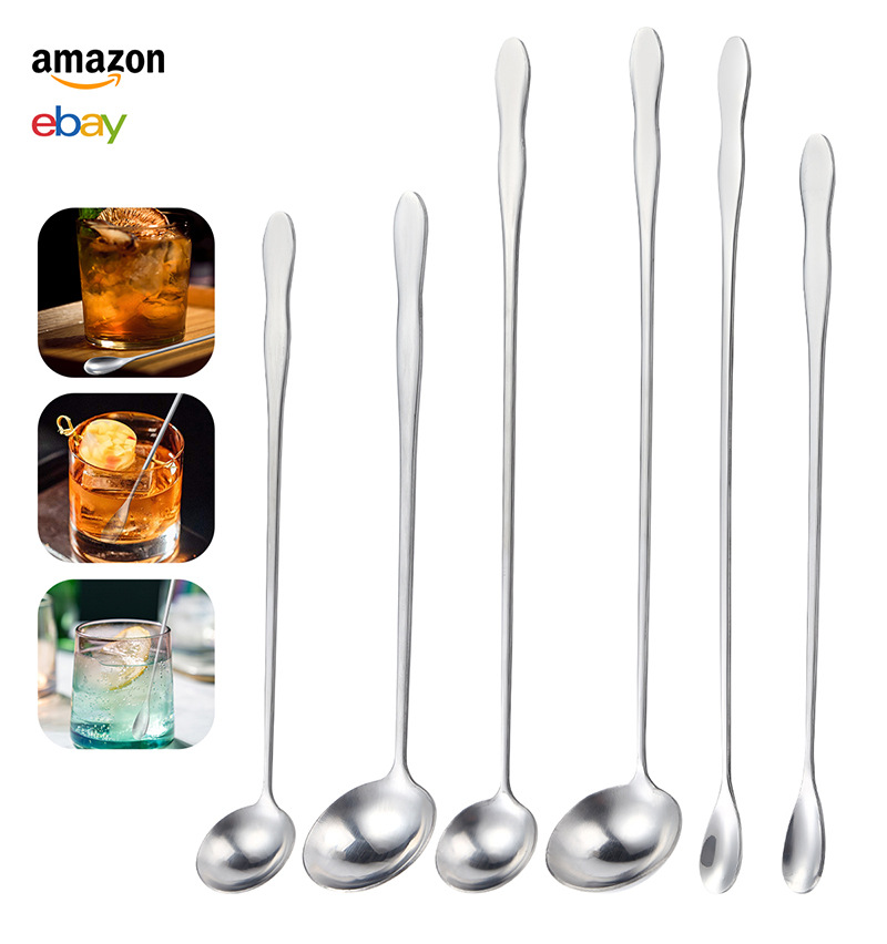 국경 기름 숟가락 스테인레스 스틸 숟가락 긴 손잡이 조미료 숟가락 혼합 숟가락 창조적 인 조롱박 손잡이 작은 숟가락 얼음 숟가락 바 숟가락