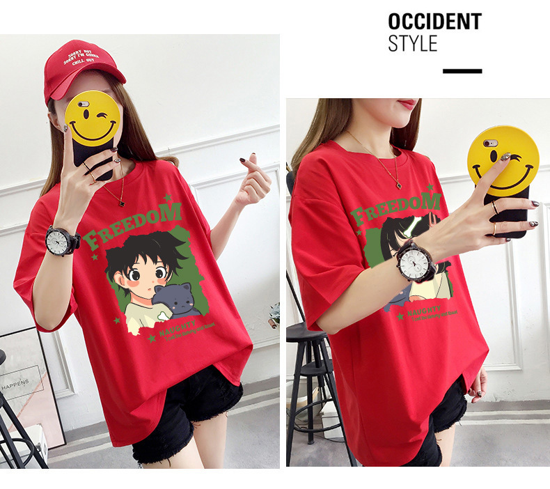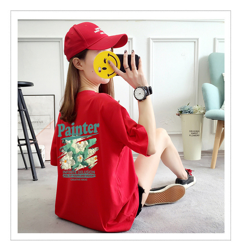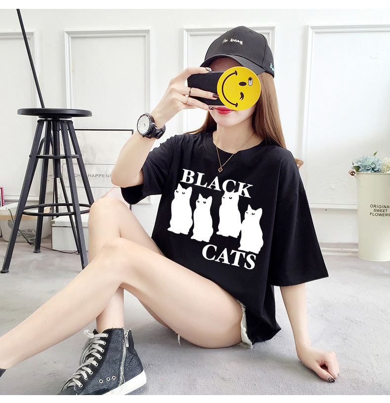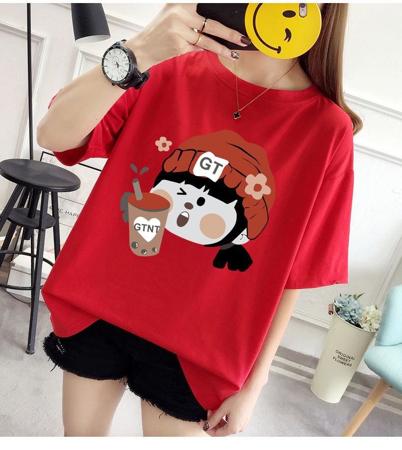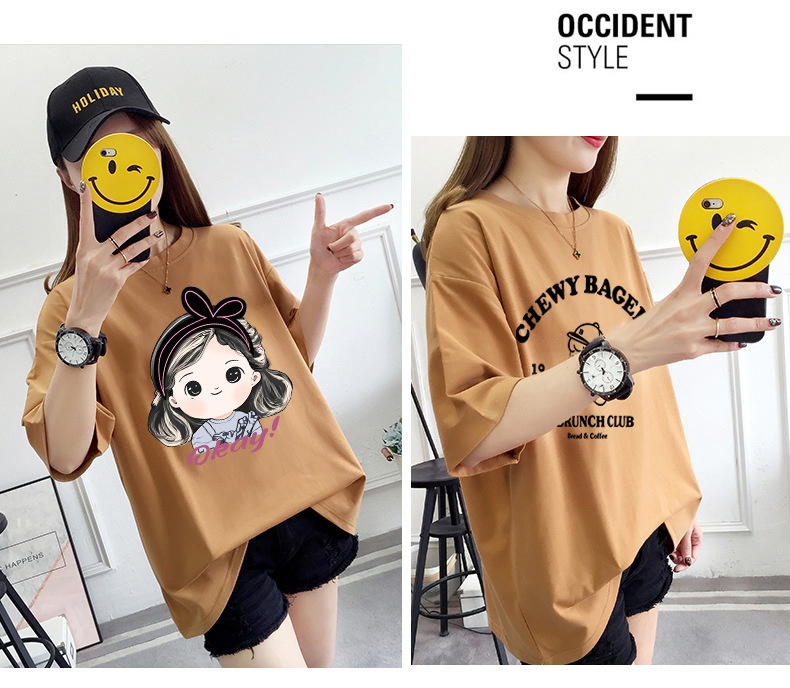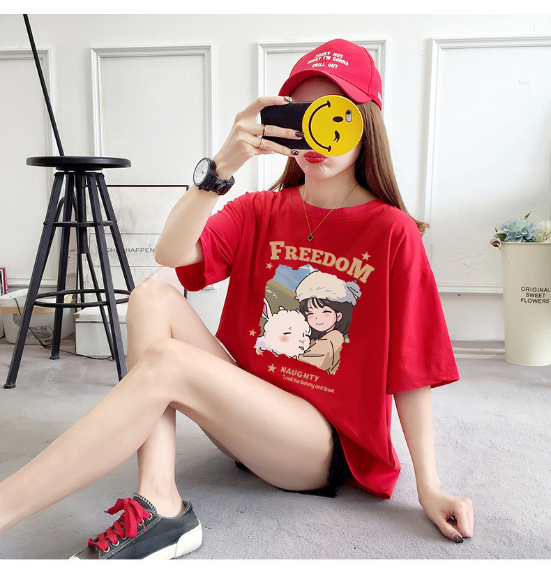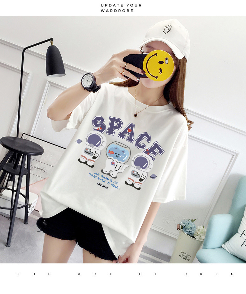 2025년 순면 반팔 티셔츠 여성용 여름 화이트 신상 루즈핏 프린트 트렌디 반팔 이너웨어 오프숄더 탑스토어 가기