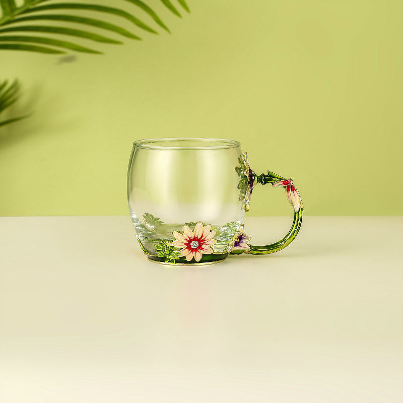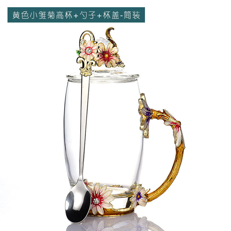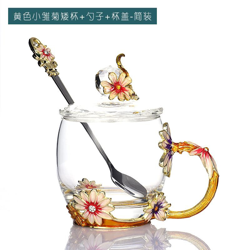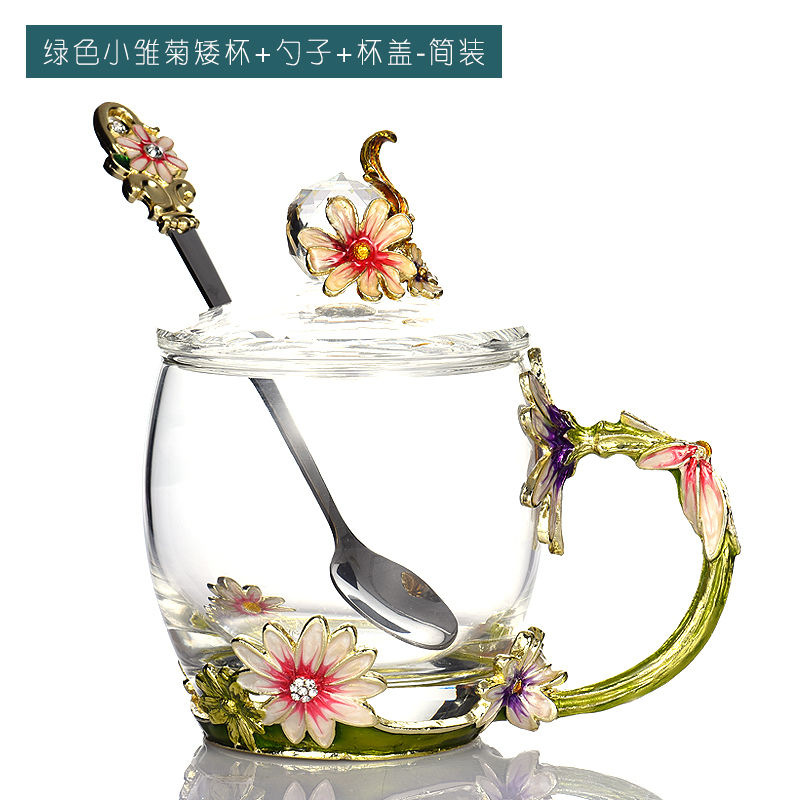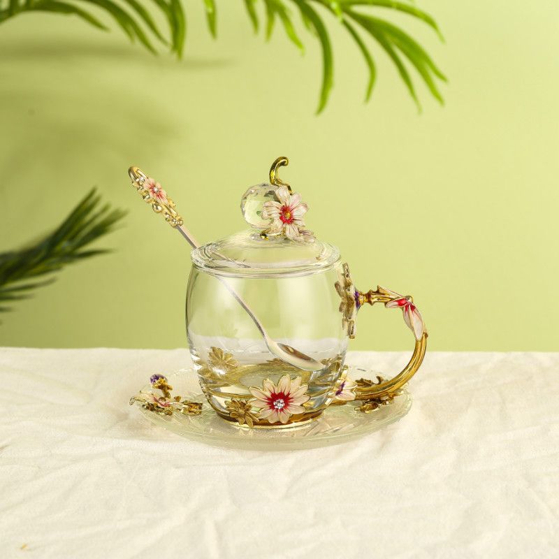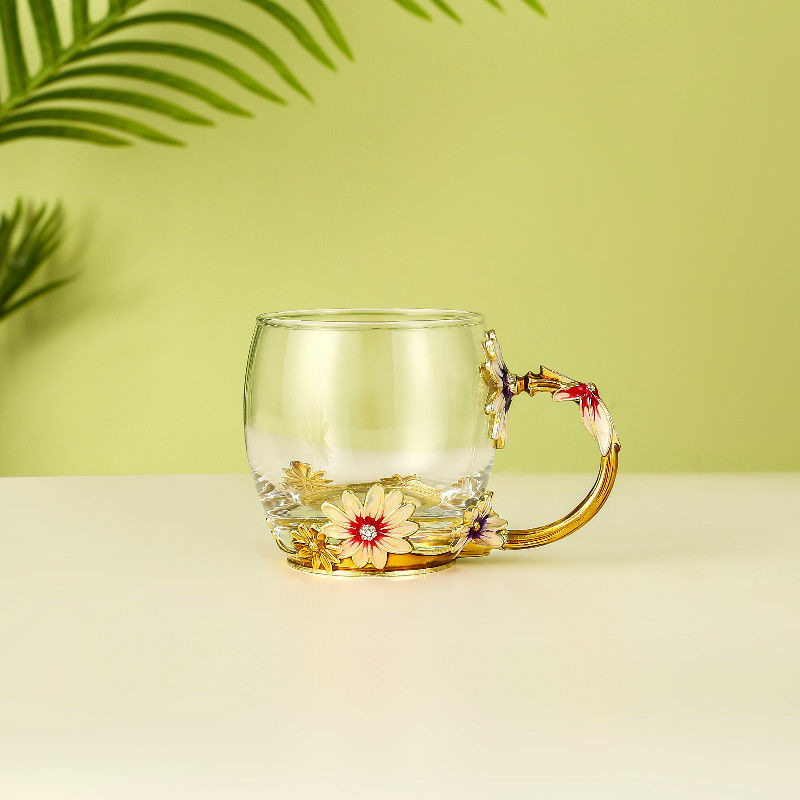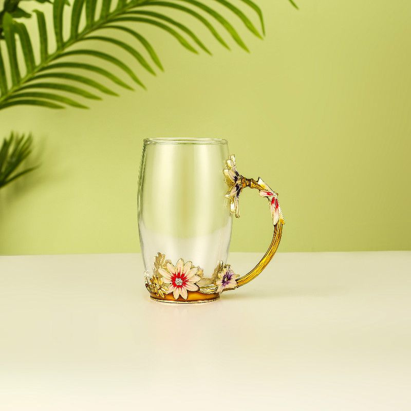 데이지 에나멜 컬러 내열 크리스탈 유리컵 차컵 가정용 물컵 생일 명절 선물 도매 차 세트스토어 가기