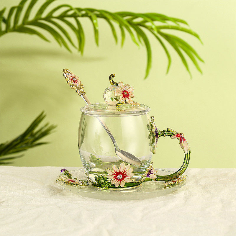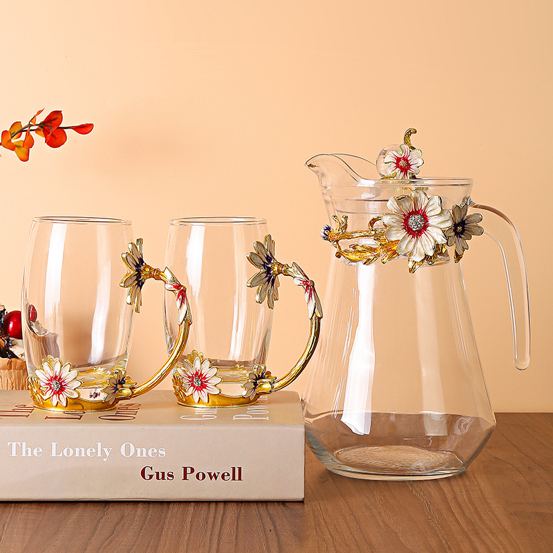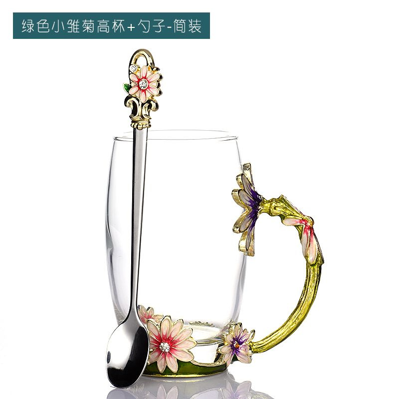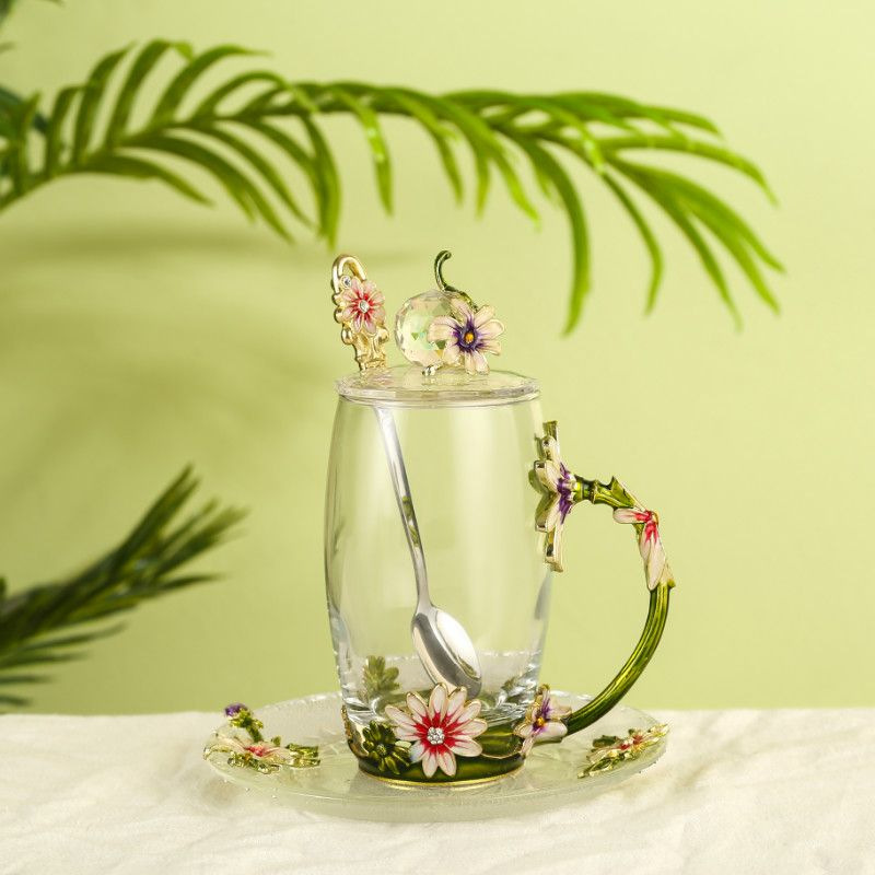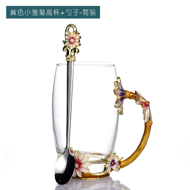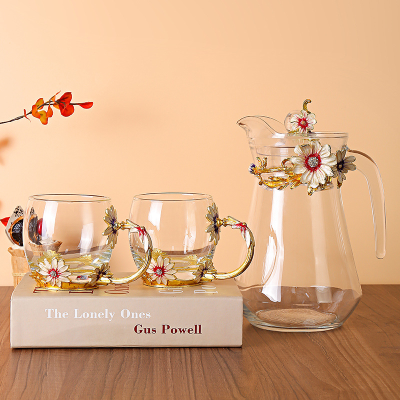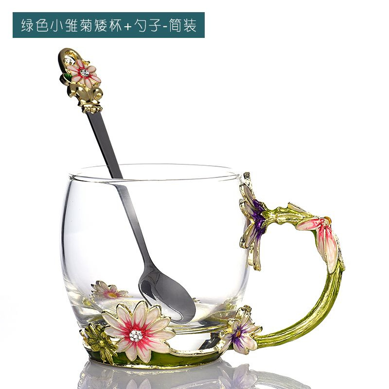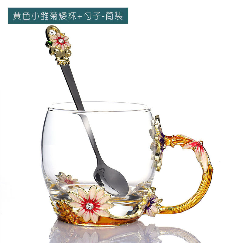 데이지 에나멜 컬러 내열 크리스탈 유리컵 차컵 가정용 물컵 생일 명절 선물 도매 차 세트스토어 가기