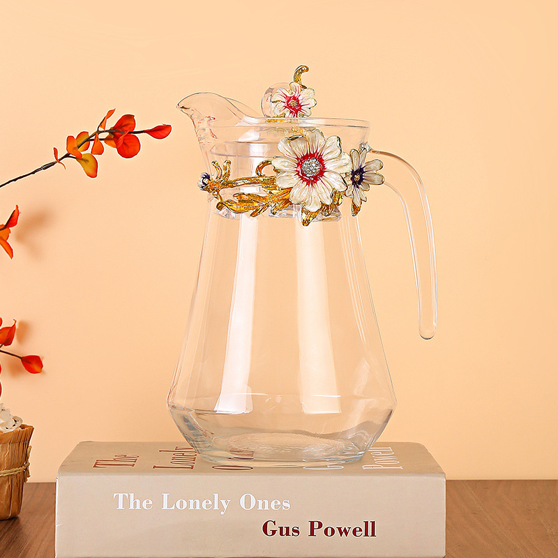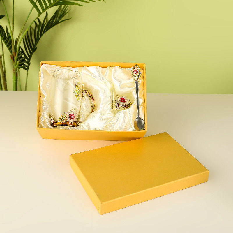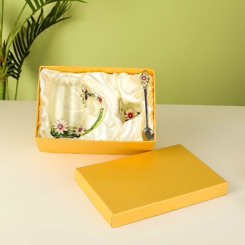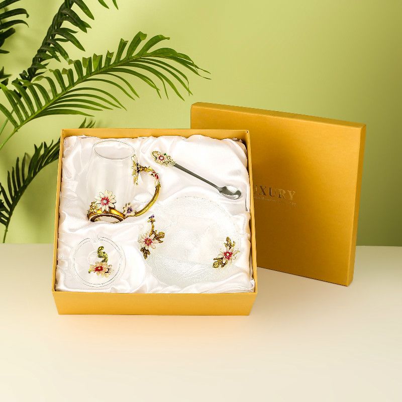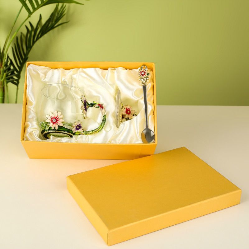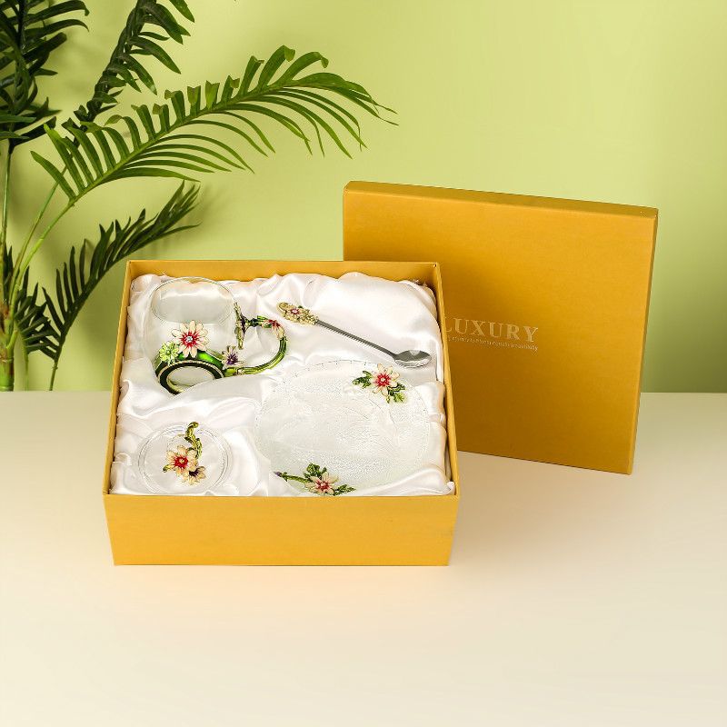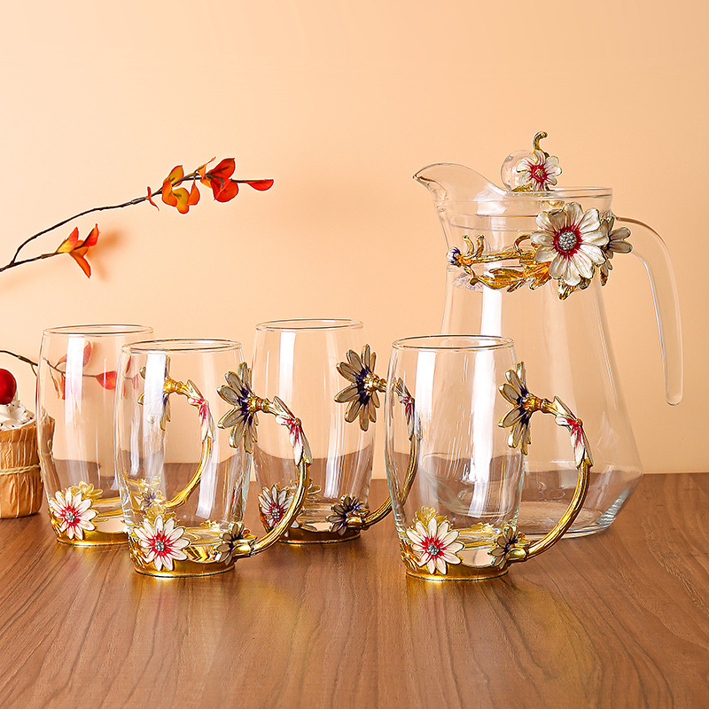 데이지 에나멜 컬러 내열 크리스탈 유리컵 차컵 가정용 물컵 생일 명절 선물 도매 차 세트스토어 가기