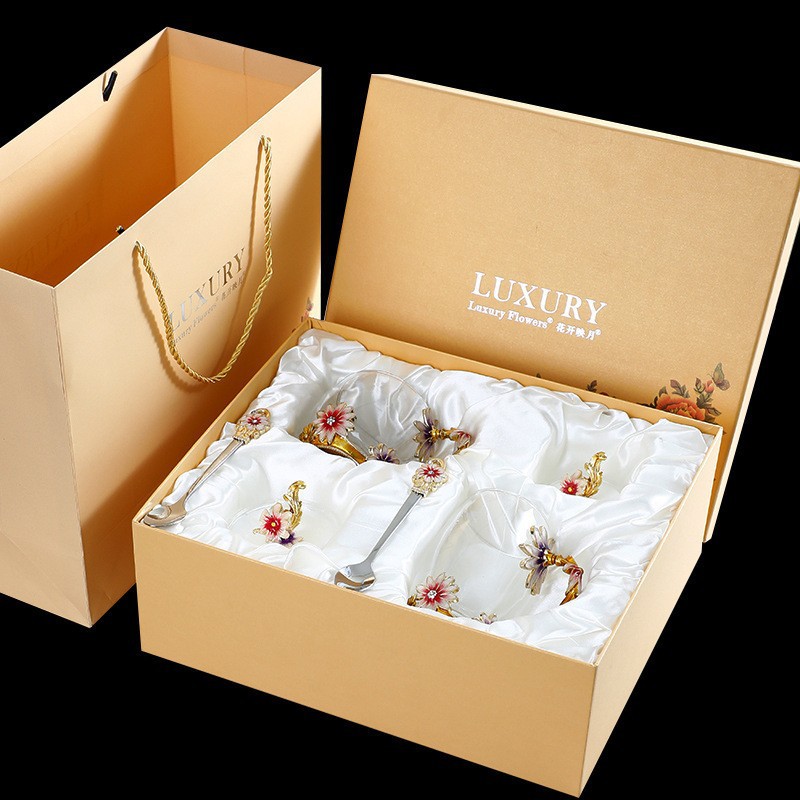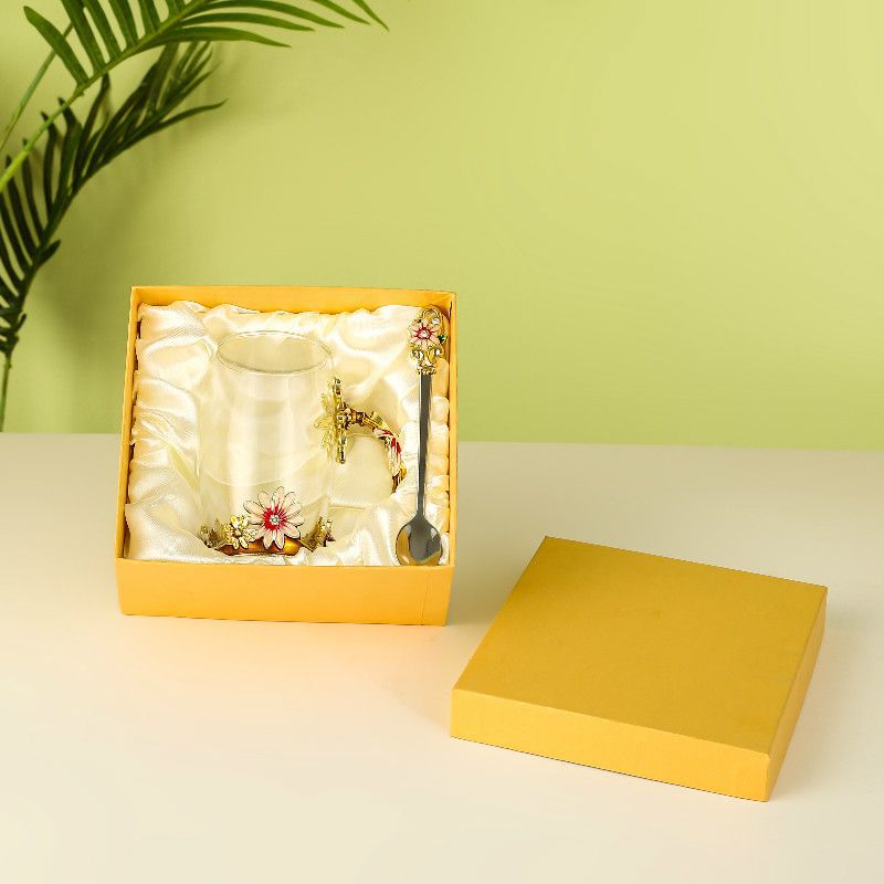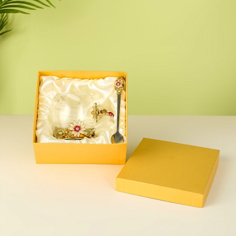 • 황금 데이지 350ml 숟가락 뚜껑 쟁반-선물 상자