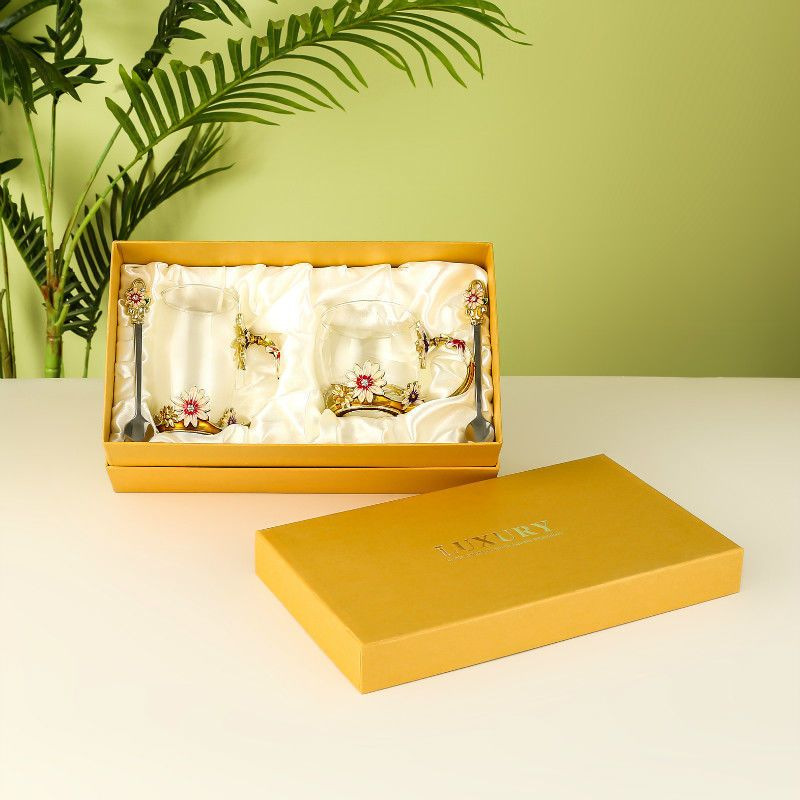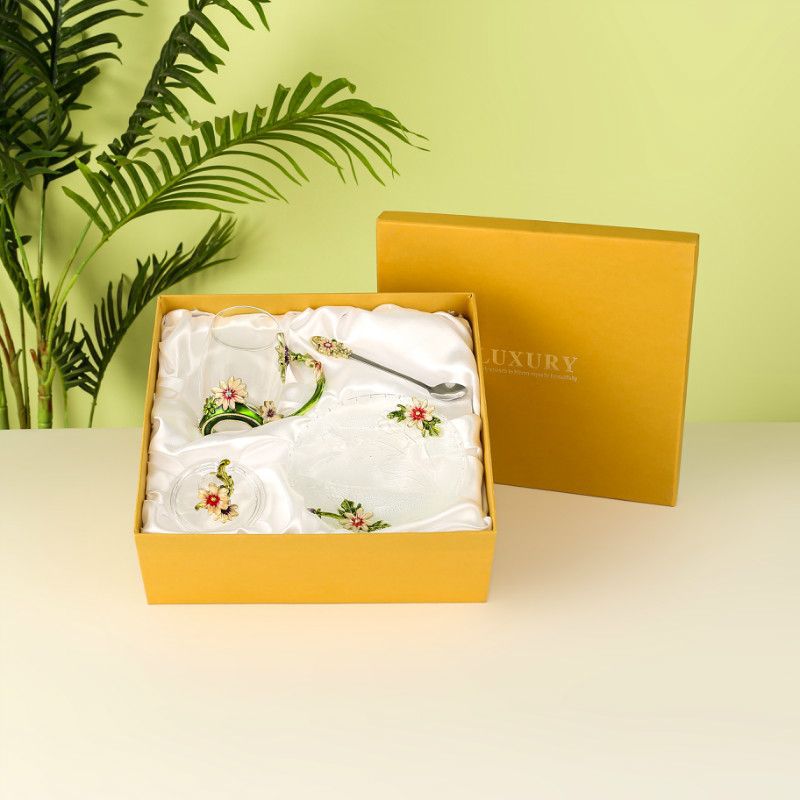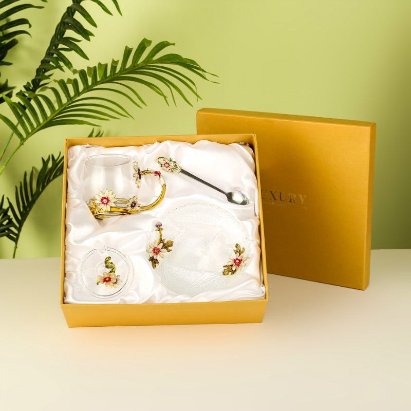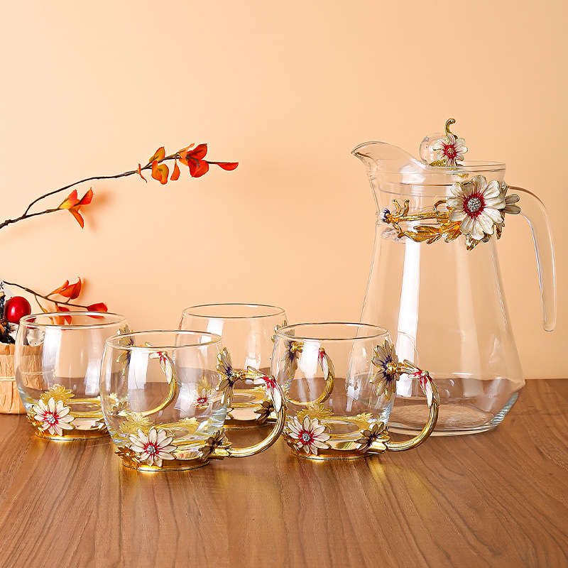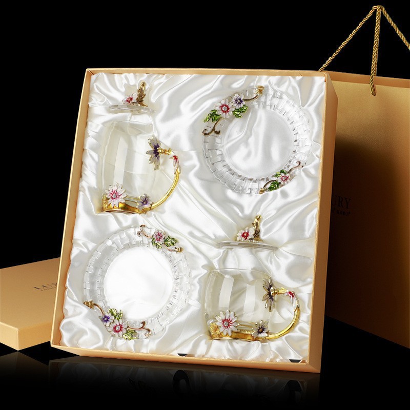 데이지 에나멜 컬러 내열 크리스탈 유리컵 차컵 가정용 물컵 생일 명절 선물 도매 차 세트