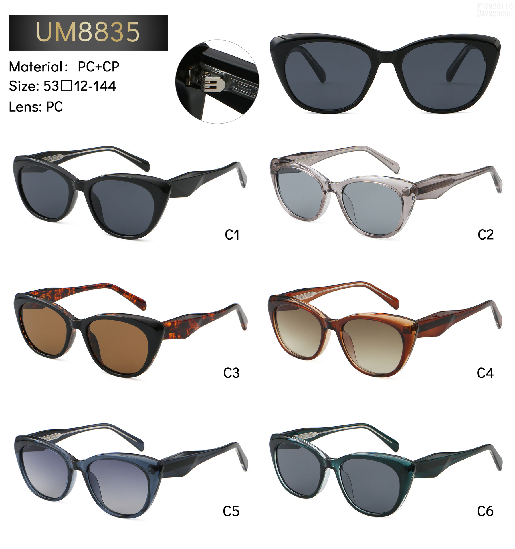 TikTok 폭발 모방 판 프로피오닉 핀 고양이의 눈 선글라스 패션 유럽과 미국 남성과 여성의 패션 스트리트 샷 슬림 8835
