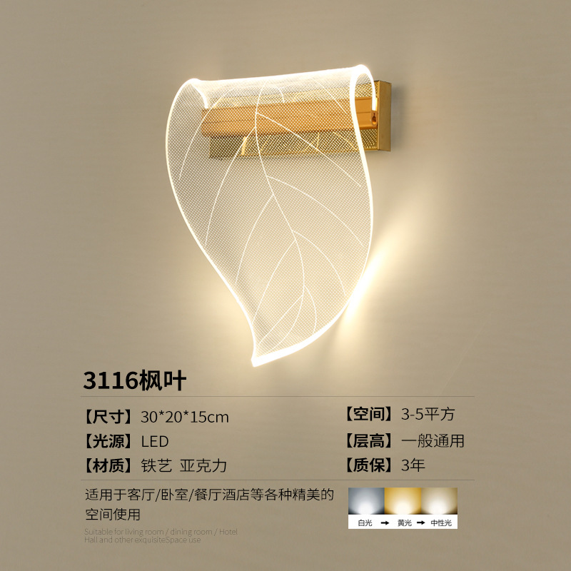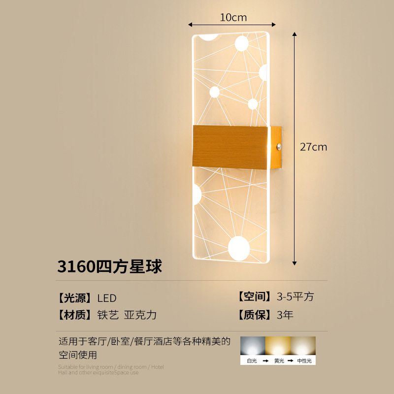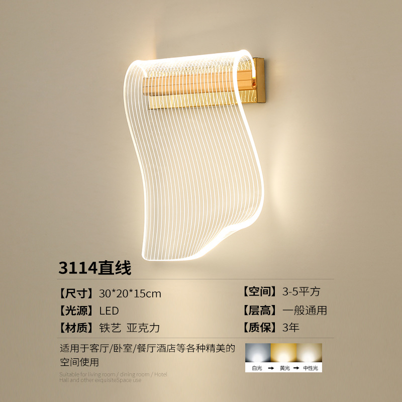 간단한 포스트 모던 침실 램프 창조적 인 침실 거실 북유럽 LED 아크릴 슈퍼 밝은 통로 배경 벽 램프