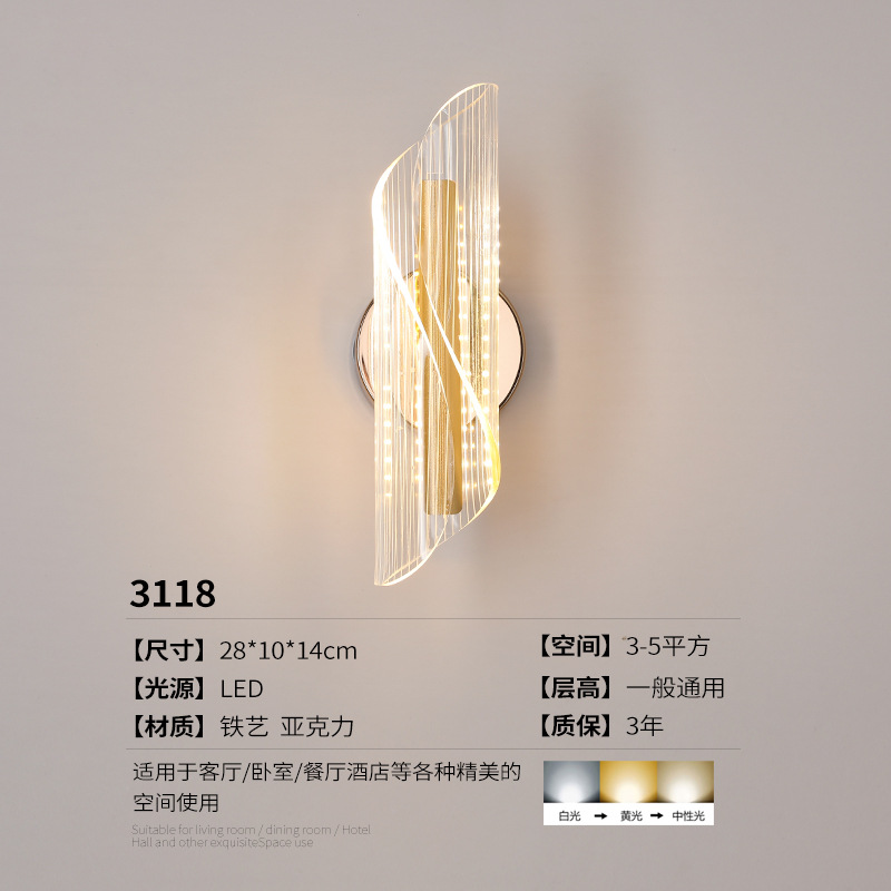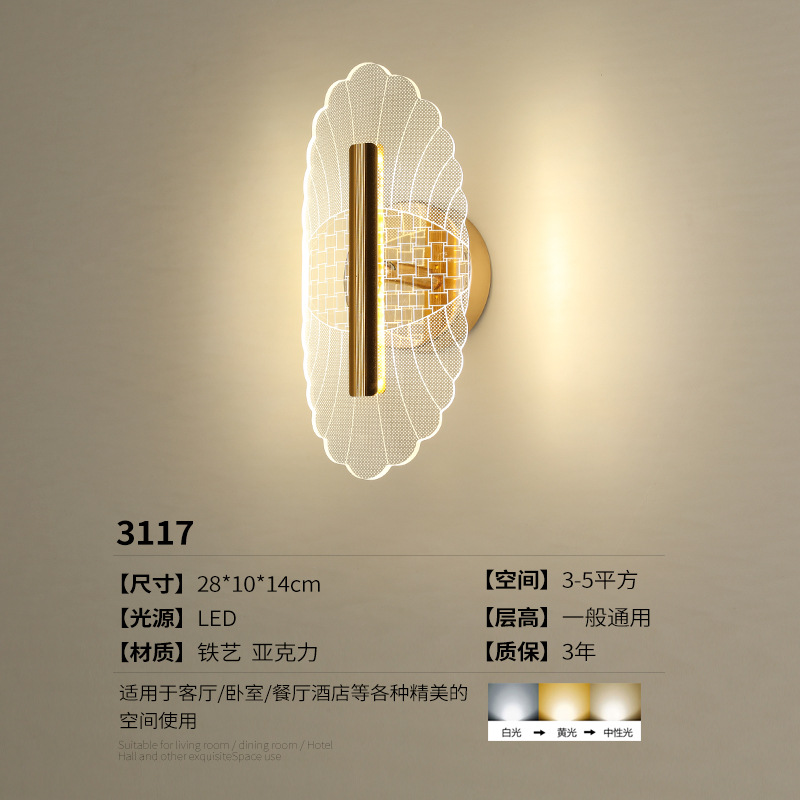 간단한 포스트 모던 침실 램프 창조적 인 침실 거실 북유럽 LED 아크릴 슈퍼 밝은 통로 배경 벽 램프스토어 가기