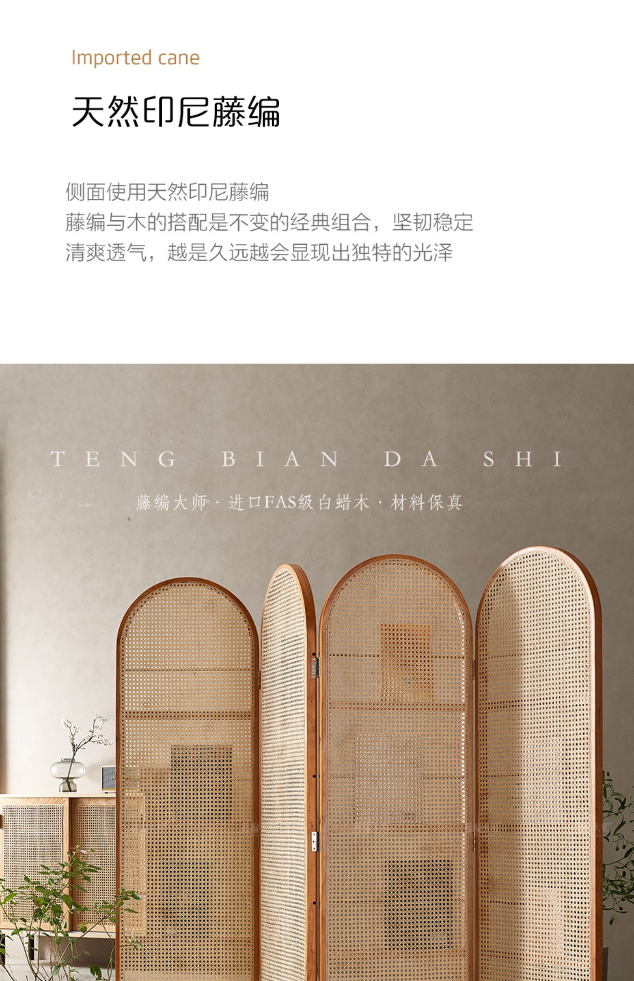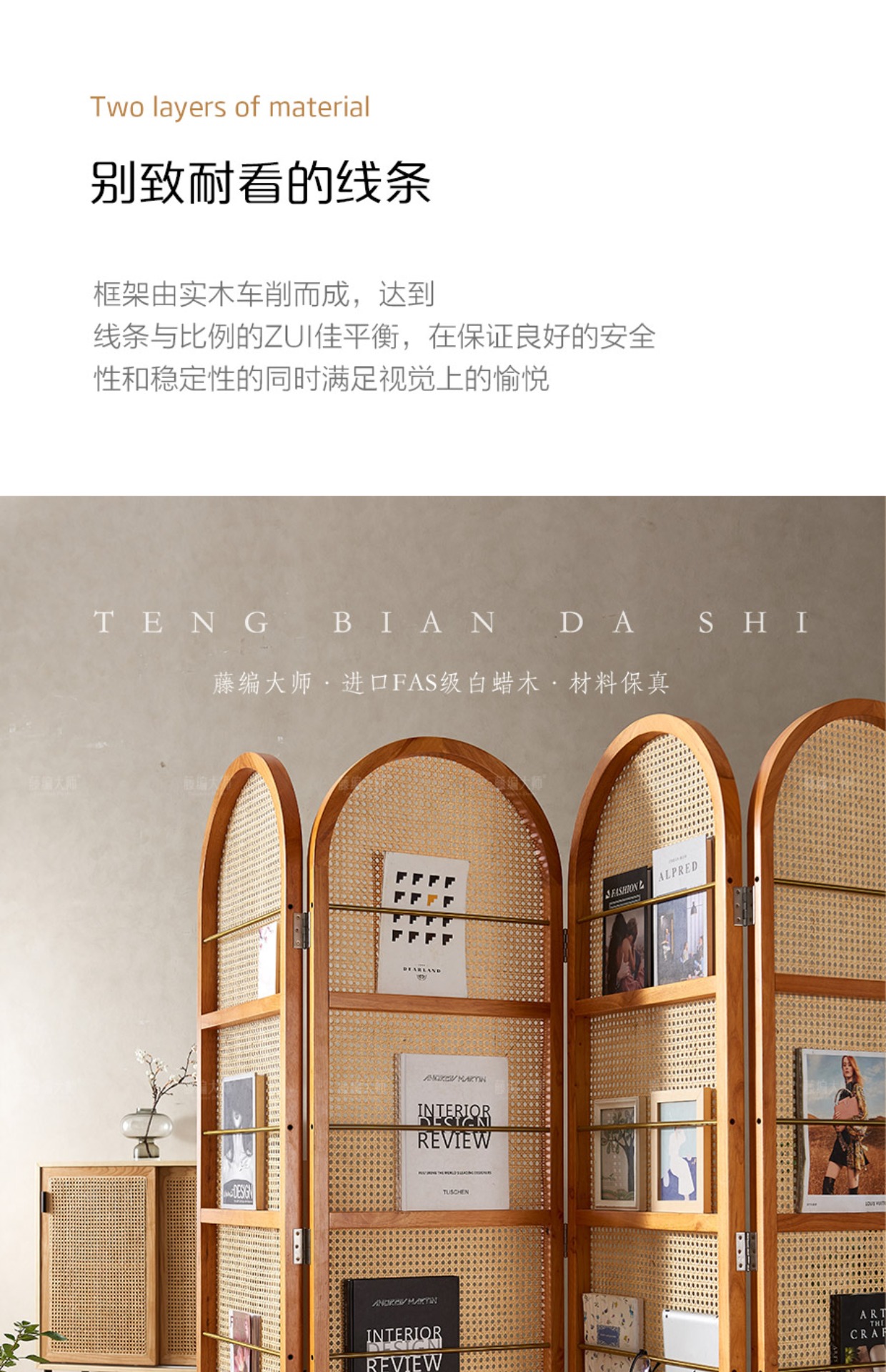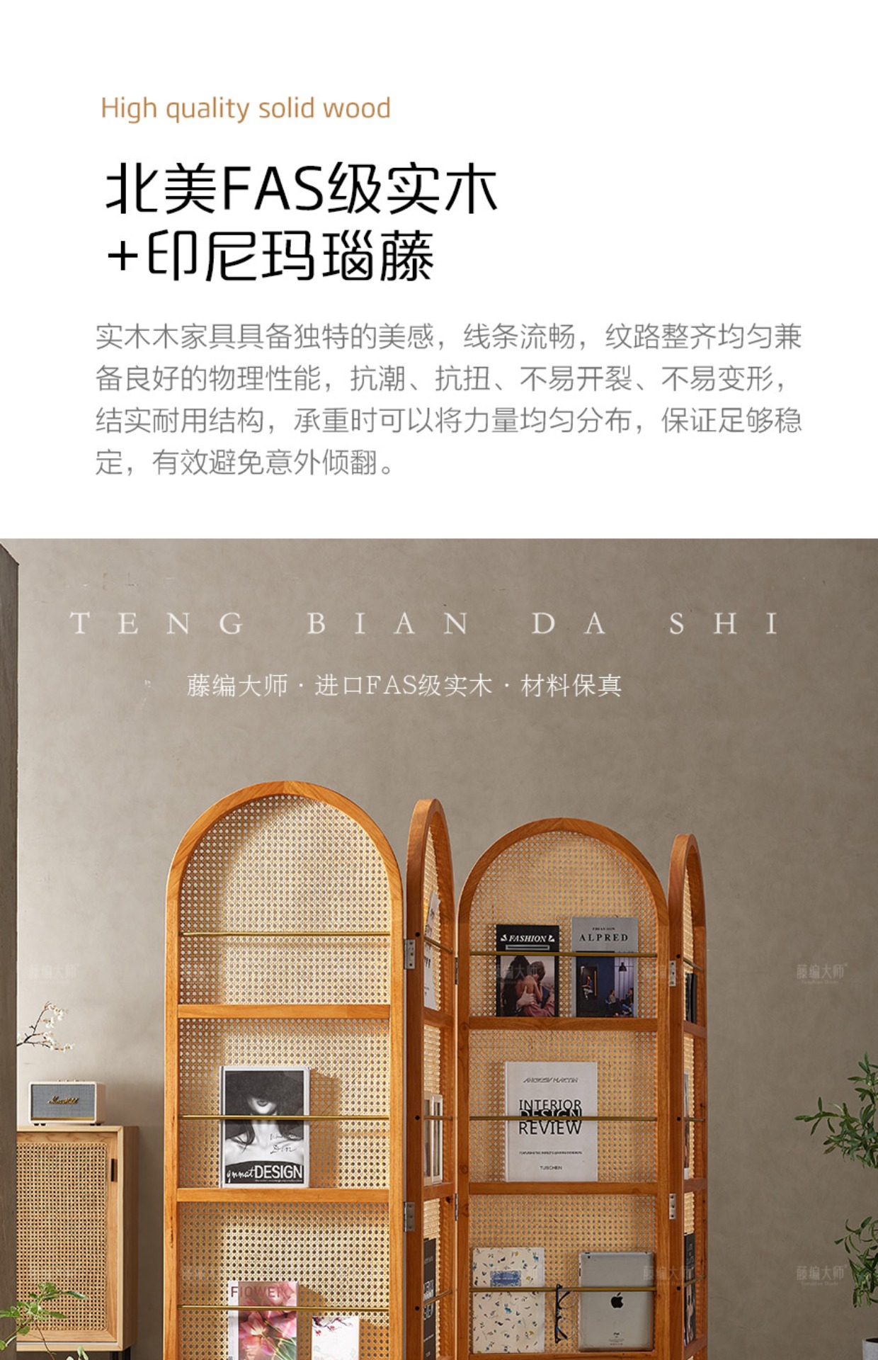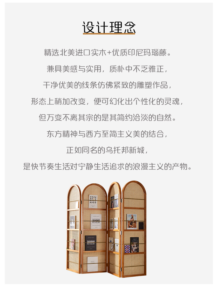 4I 솔리드 우드 등나무 스크린 파티션 벽 레트로 아트 매거진 책꽂이 작은 아파트 거실 간단한 좌석