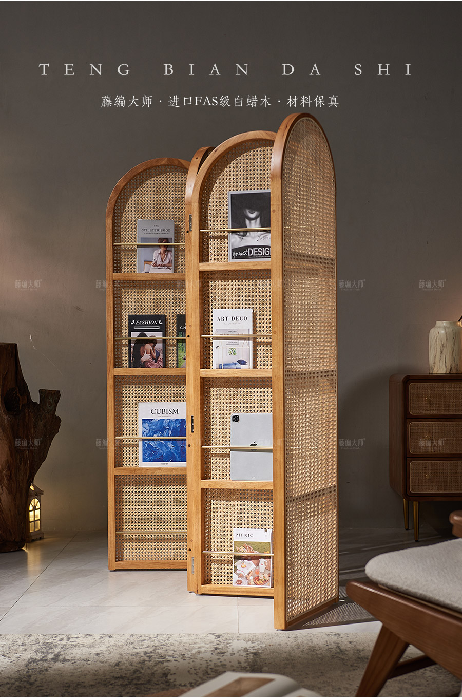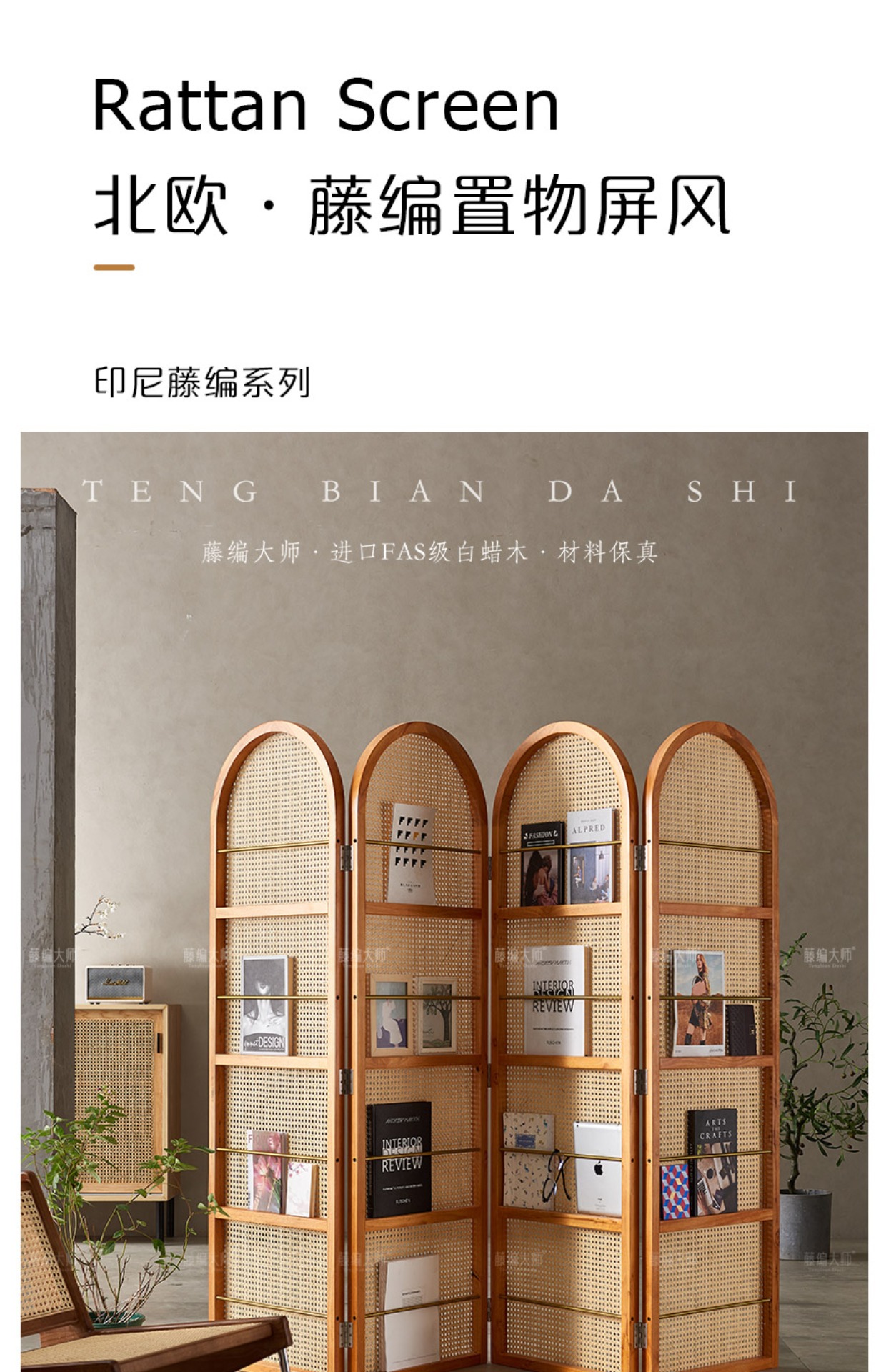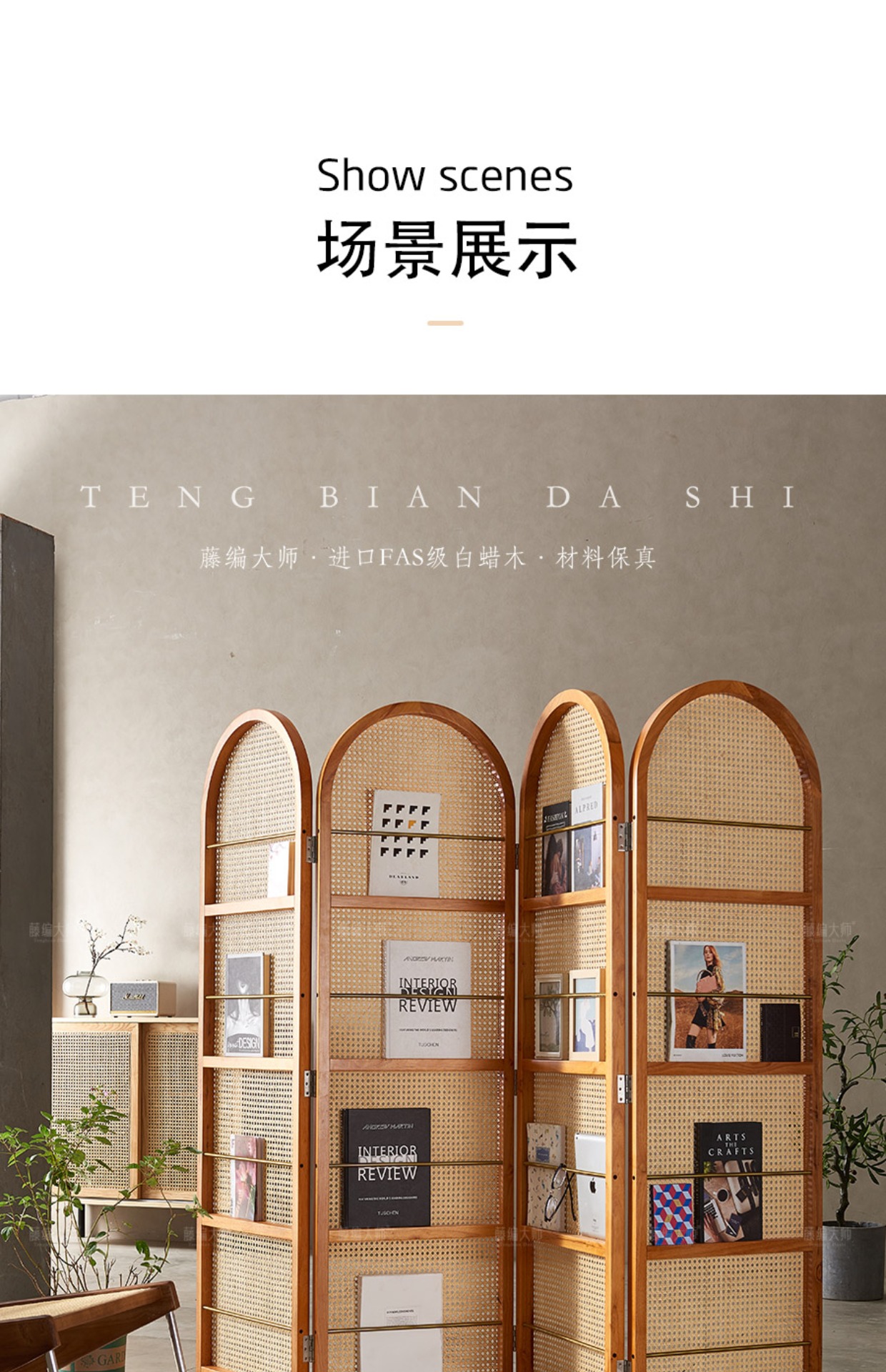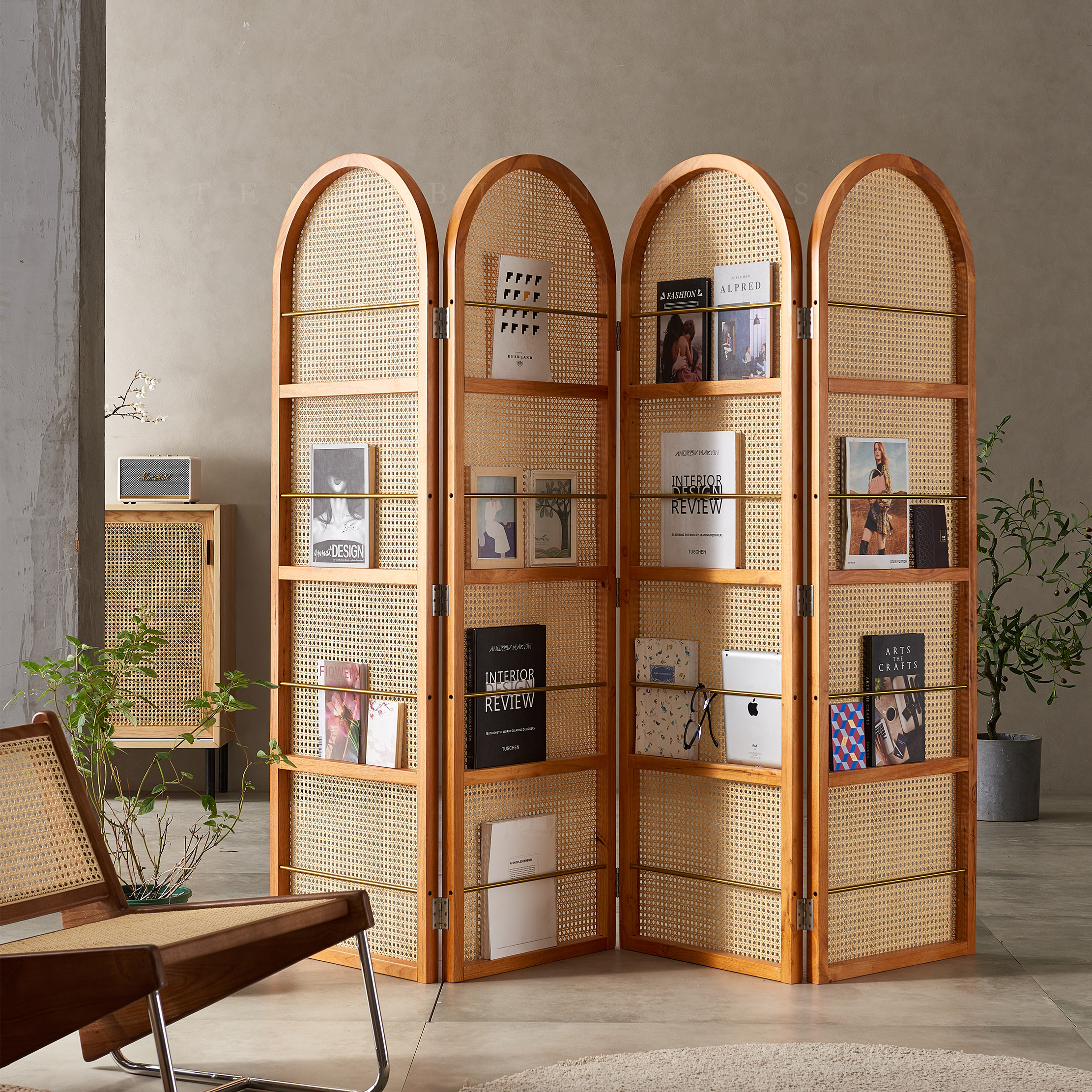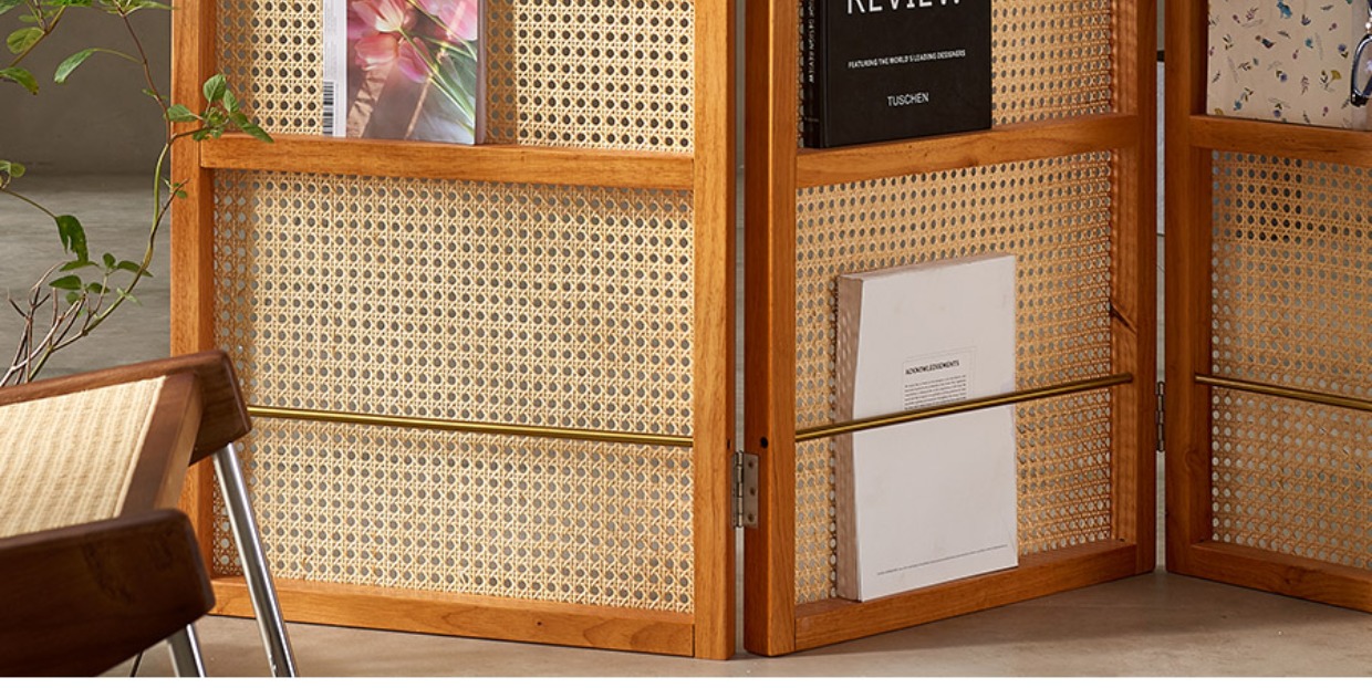 4I 솔리드 우드 등나무 스크린 파티션 벽 레트로 아트 매거진 책꽂이 작은 아파트 거실 간단한 좌석스토어 가기