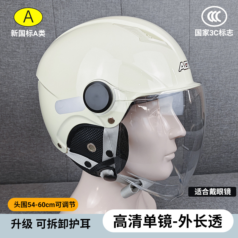 • 305 밀키 화이트 [이중 거울, 긴 투명 + 탈부착 가능한 귀 보호] [신국가 표준 3C]