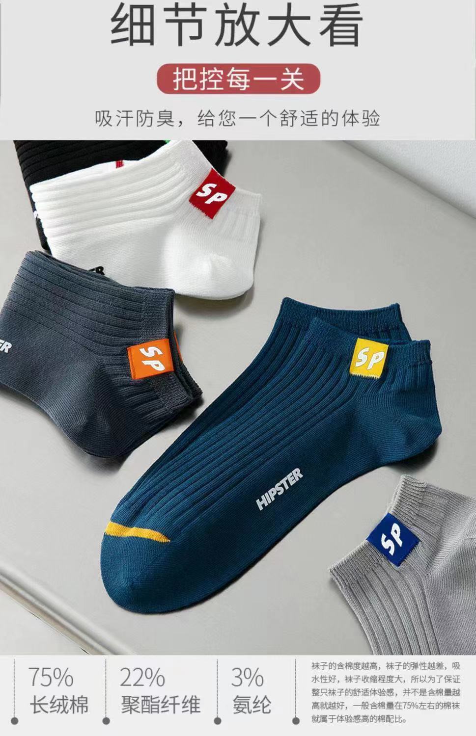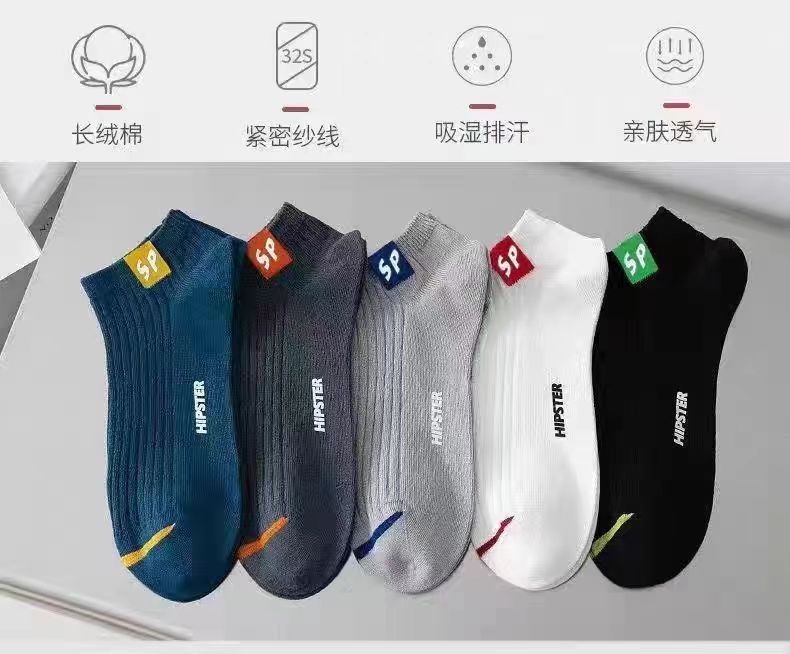 남성 양말 sp 편지 봄과 가을 남성 양말 유행 패션 조커 보트 양말 수직 스트립 얕은 입 땀 흡수성 통기성 도매스토어 가기