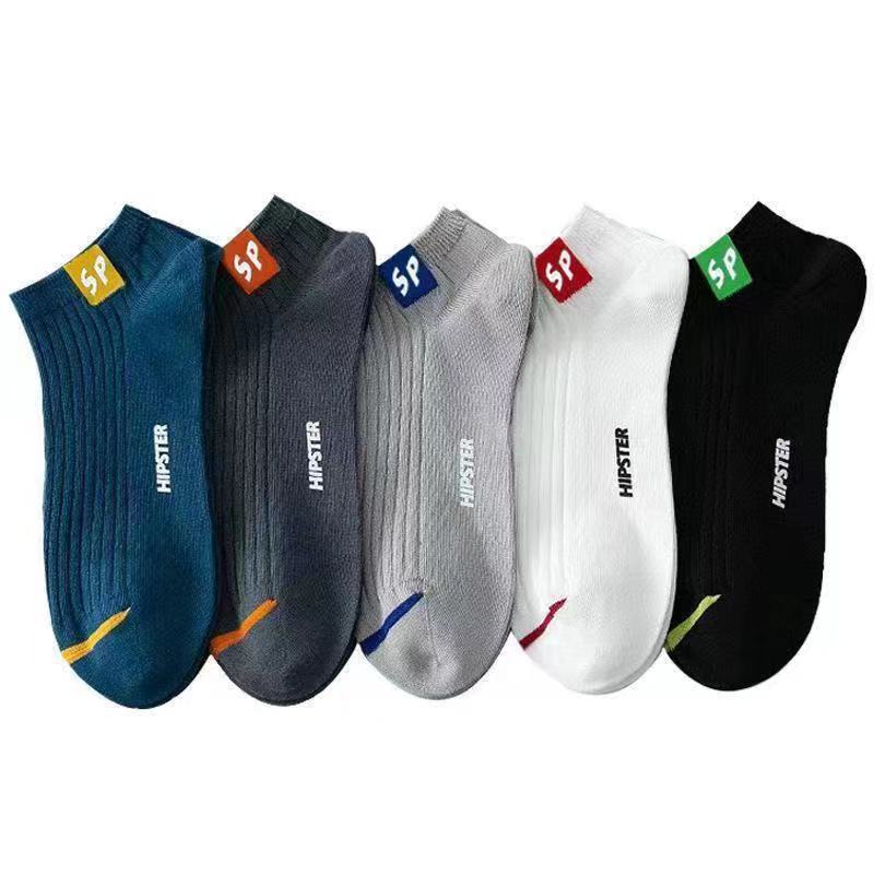 남성 양말 sp 편지 봄과 가을 남성 양말 유행 패션 조커 보트 양말 수직 스트립 얕은 입 땀 흡수성 통기성 도매