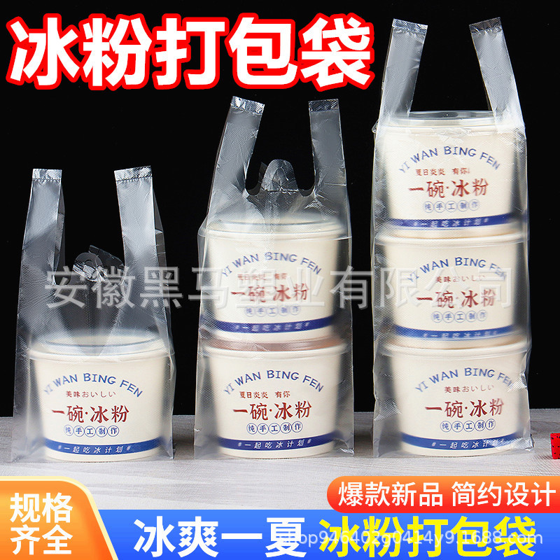 얼음 분말 포장 가방 구운 요정 잔디 과일 양동이 일회용 우유 차 구운 배 이중 피부 우유 포장 비닐 봉지 과일 낚시