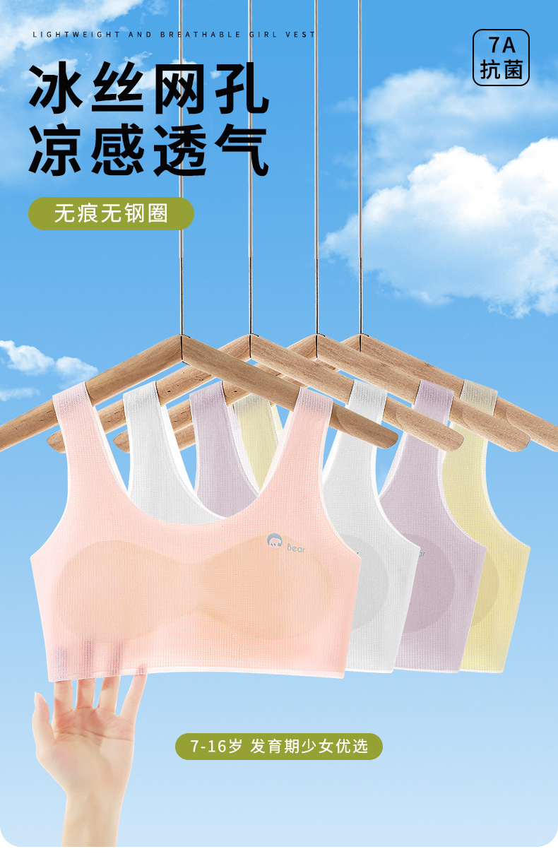 발달여아 트레이스리스 속옷 여중학생 브래지어 경량급 통기성 어린이 조끼 여름