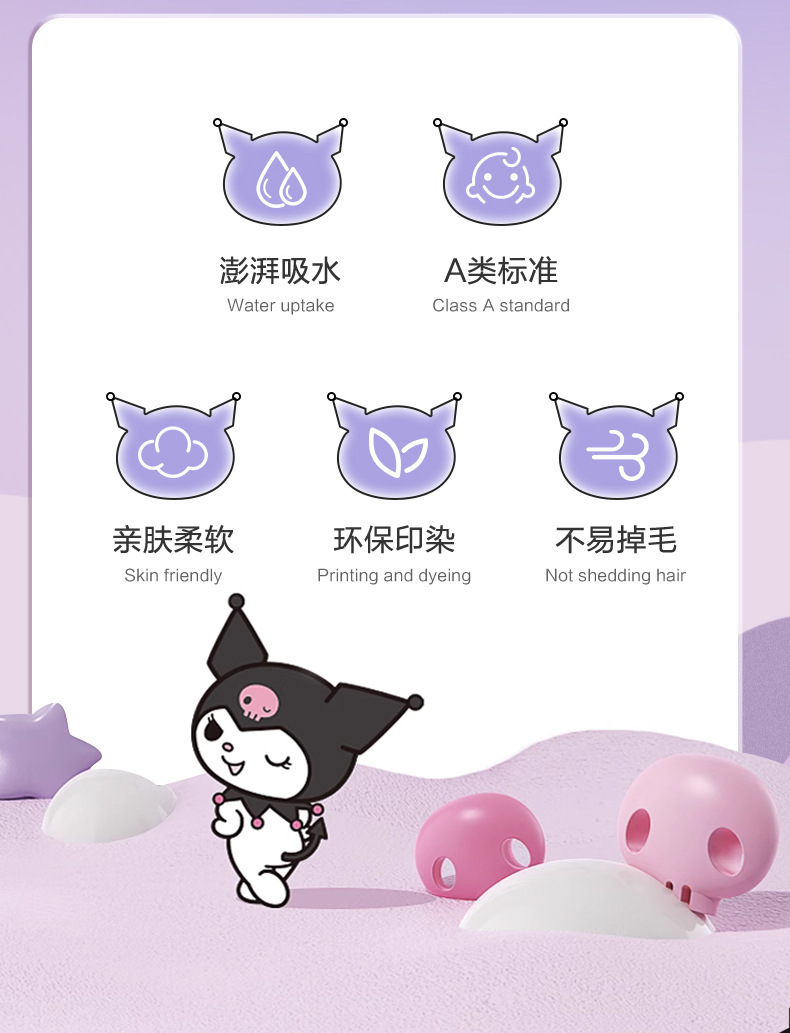산리오&산리유 공동 브랜드 쿠로미 목욕타월 성인용 목욕타월 만화 캐릭터 목욕타월 엄마와 아기에게 안전한 순면