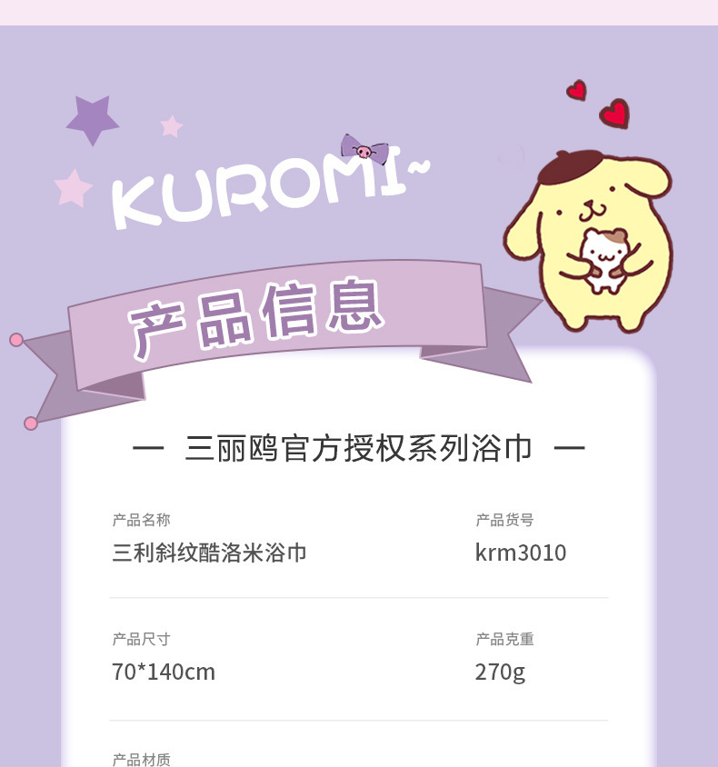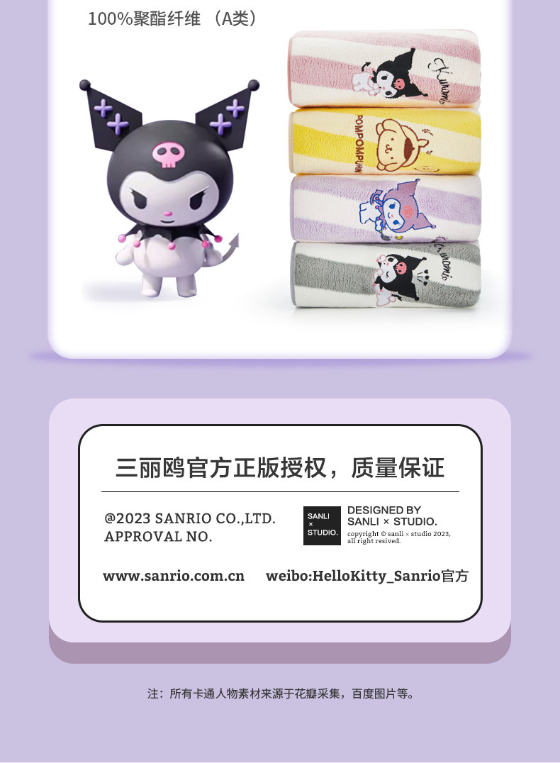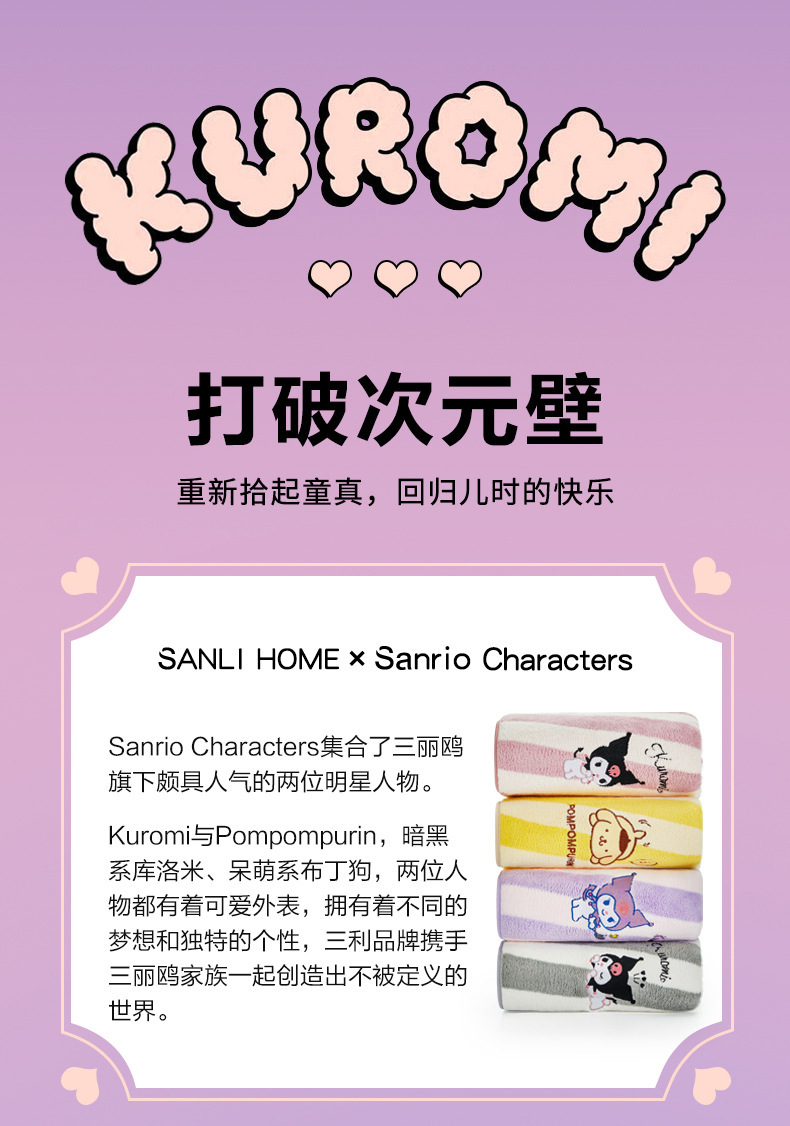 산리오&산리유 공동 브랜드 쿠로미 목욕타월 성인용 목욕타월 만화 캐릭터 목욕타월 엄마와 아기에게 안전한 순면스토어 가기