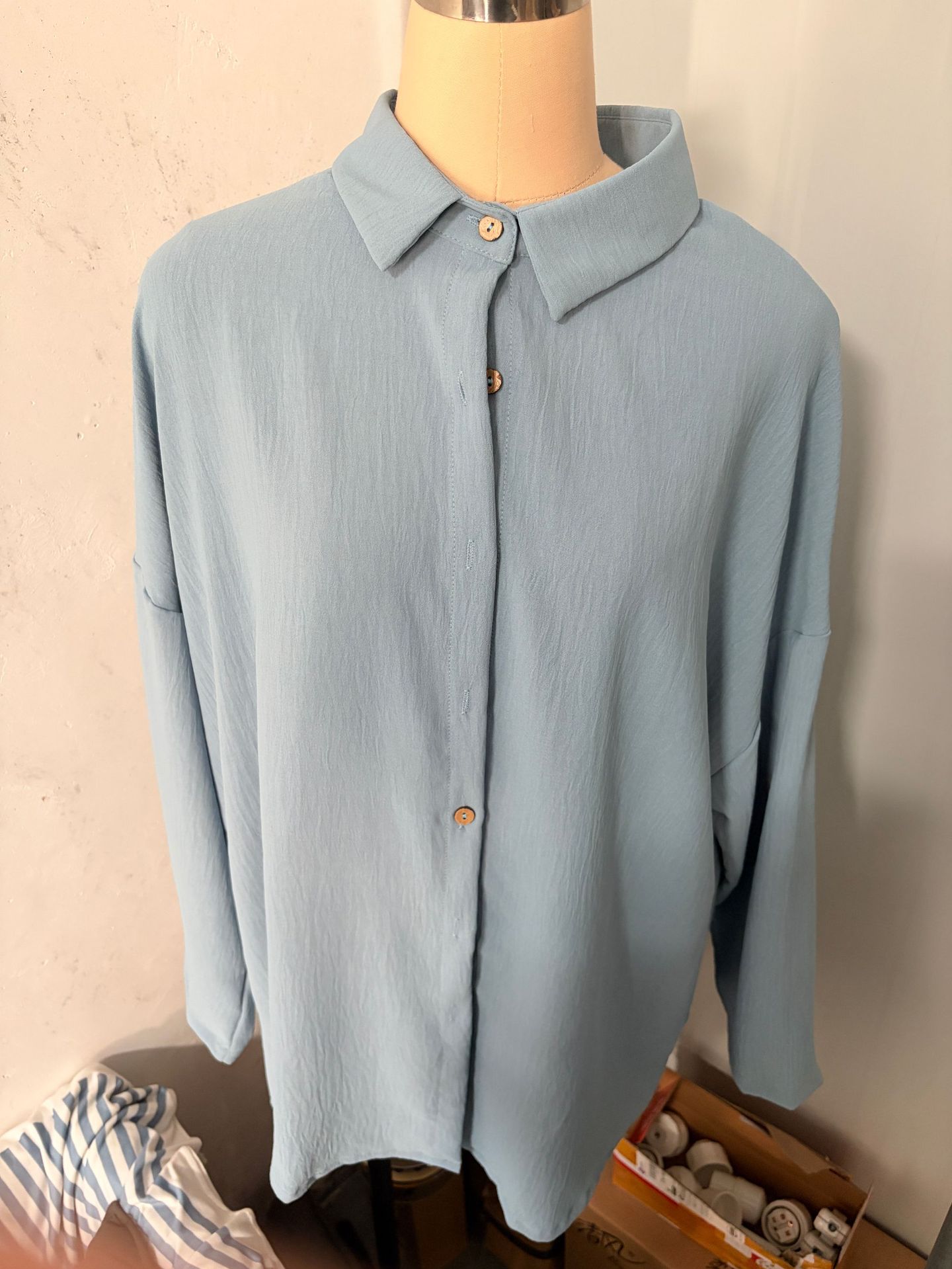 2024 새로운 단일 가슴 주름 옷깃 셔츠 독립 스테이션 폭발 여성 솔리드 컬러 유럽과 미국 슬리브 탑스토어 가기