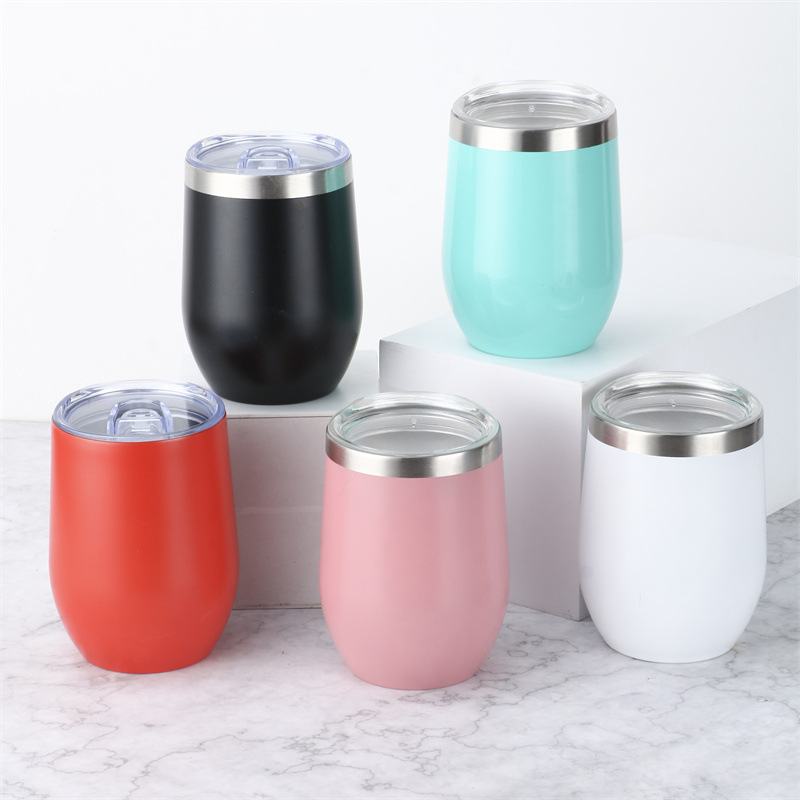 국경 12oz 달걀 껍질 컵 스테인레스 스틸 창조적 인 진공 단열 스위그 U 자형 배꼽 레드 와인 컵 제조 업체 도매