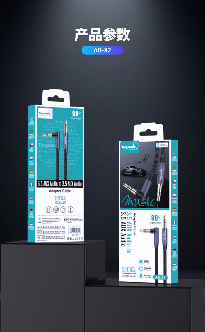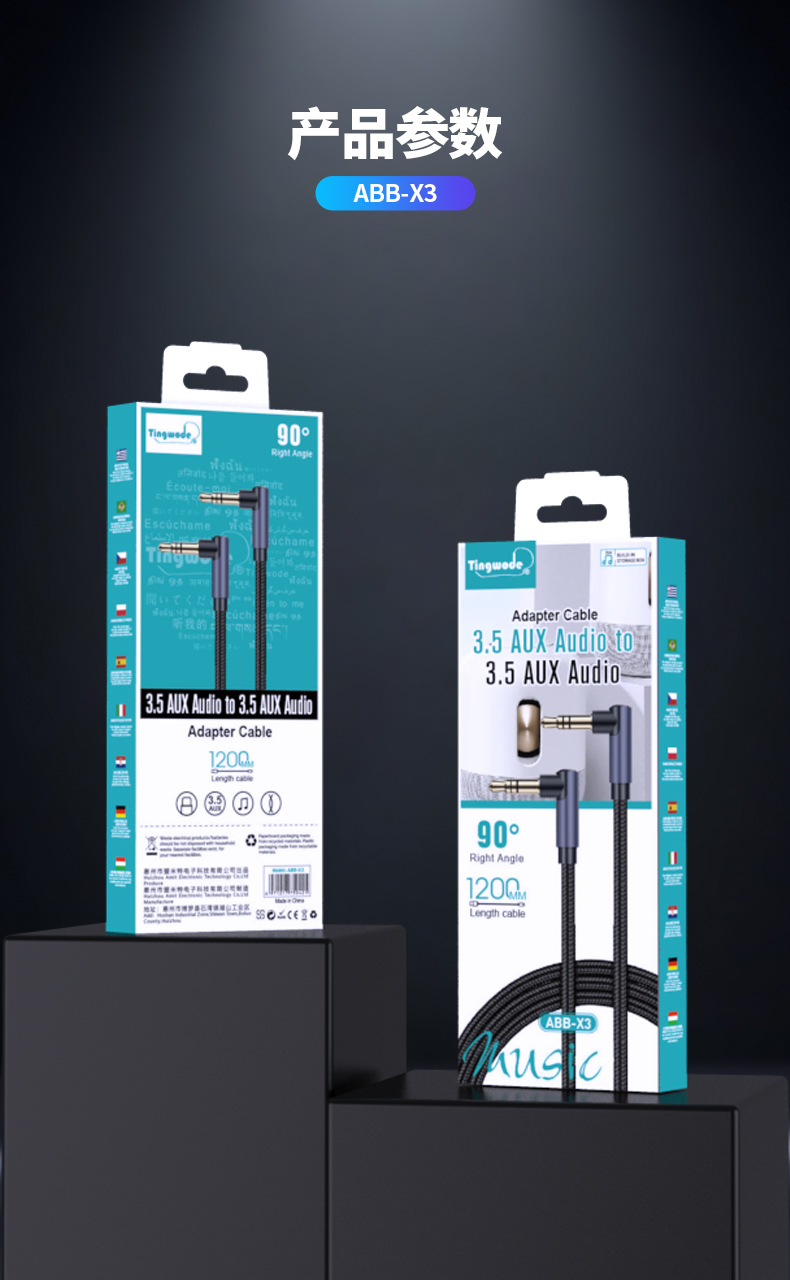 • AUX 오디오 케이블 1.2 m -3.5MM 남성 (팔꿈치에서 직선)-박스