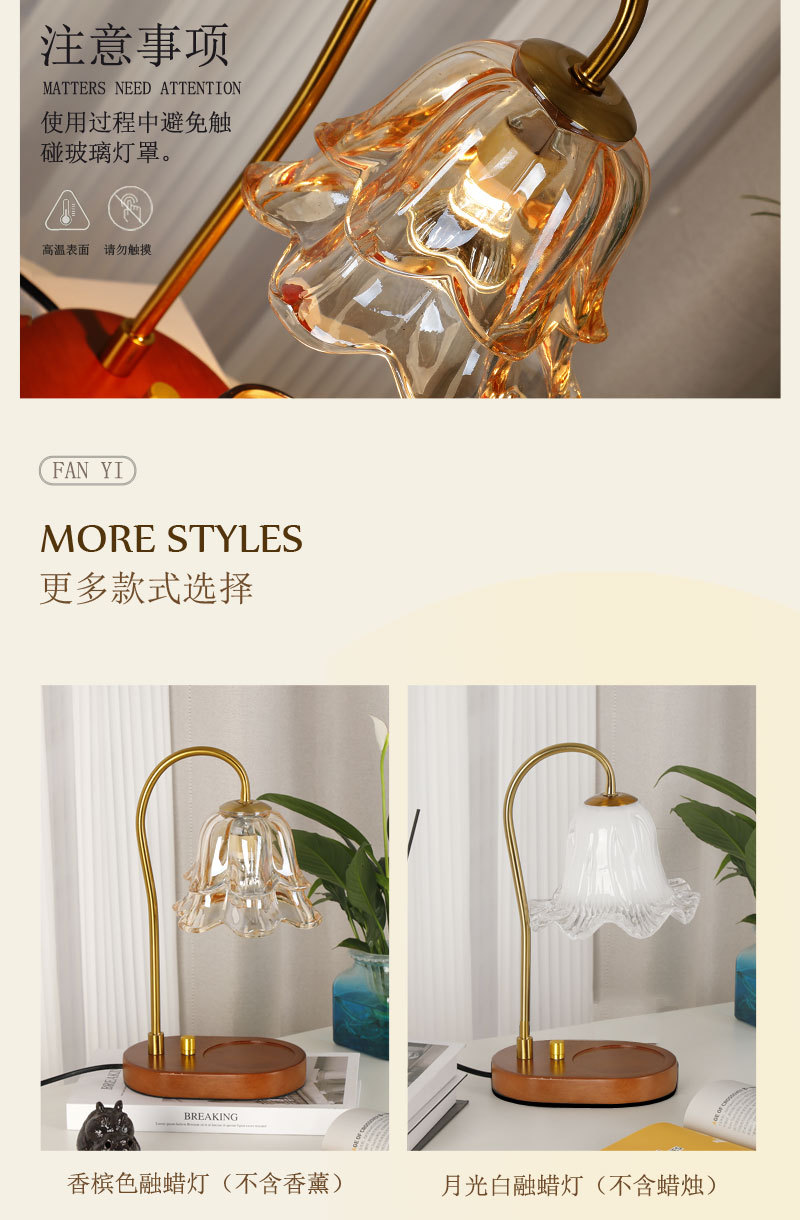 릴리 오브 더 밸리 아로마 테라피 램프 왁스 램프 프랑스 복고풍 침실 침대 옆 램프 홈 장식 분위기 램프 불 향기 책상 램프