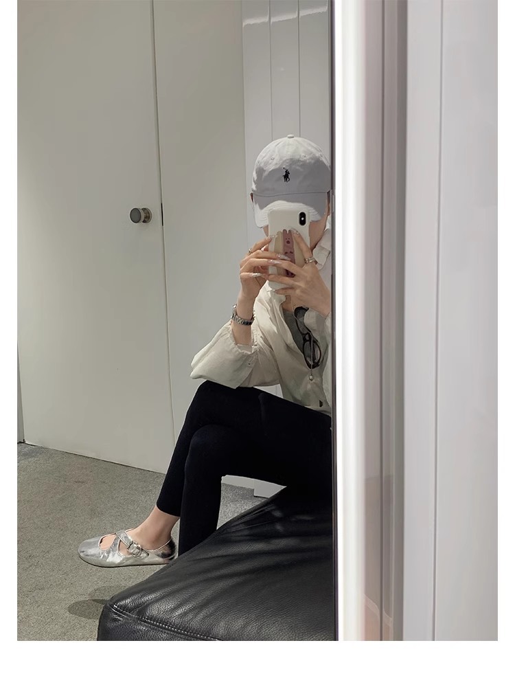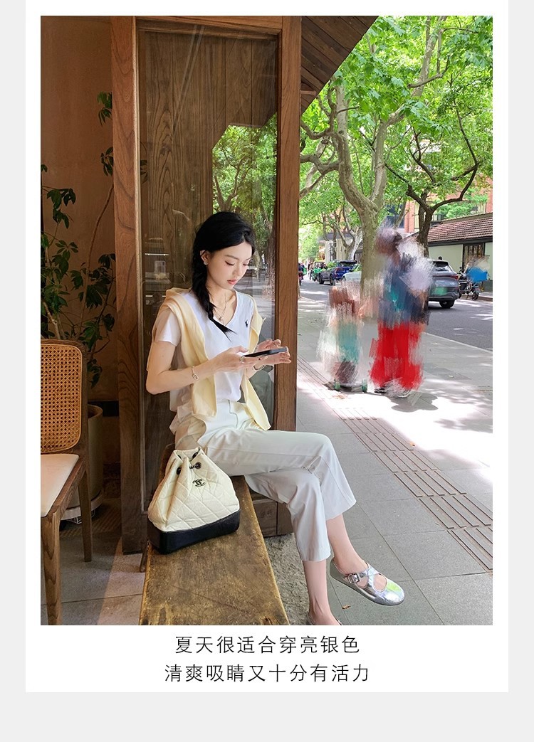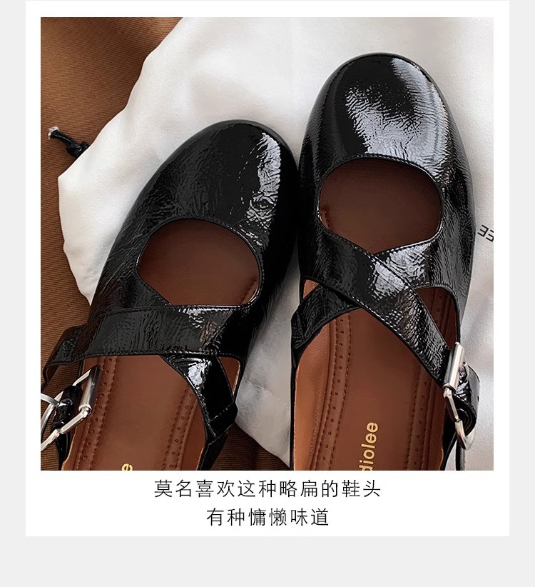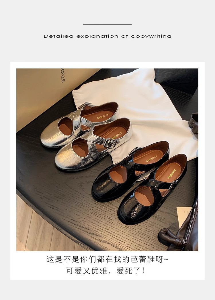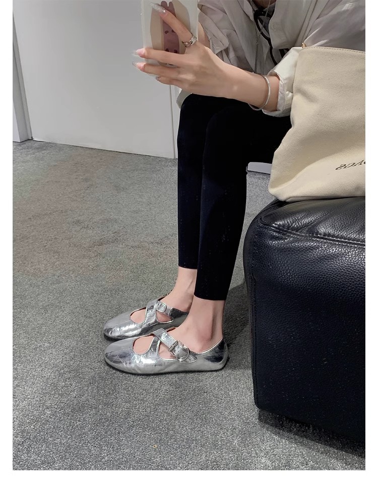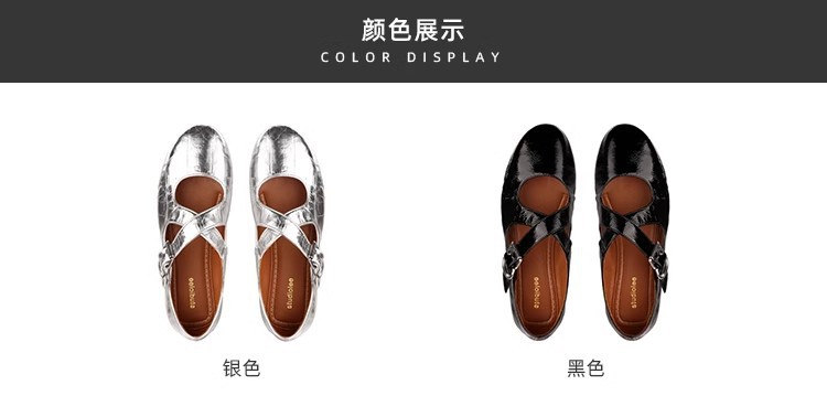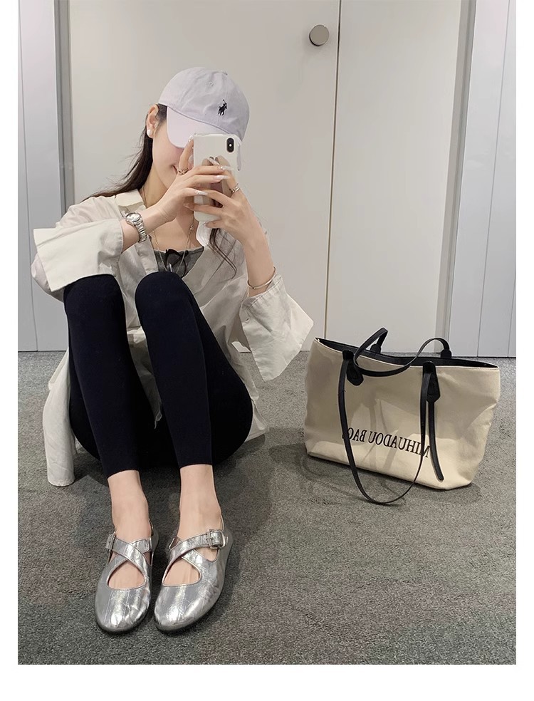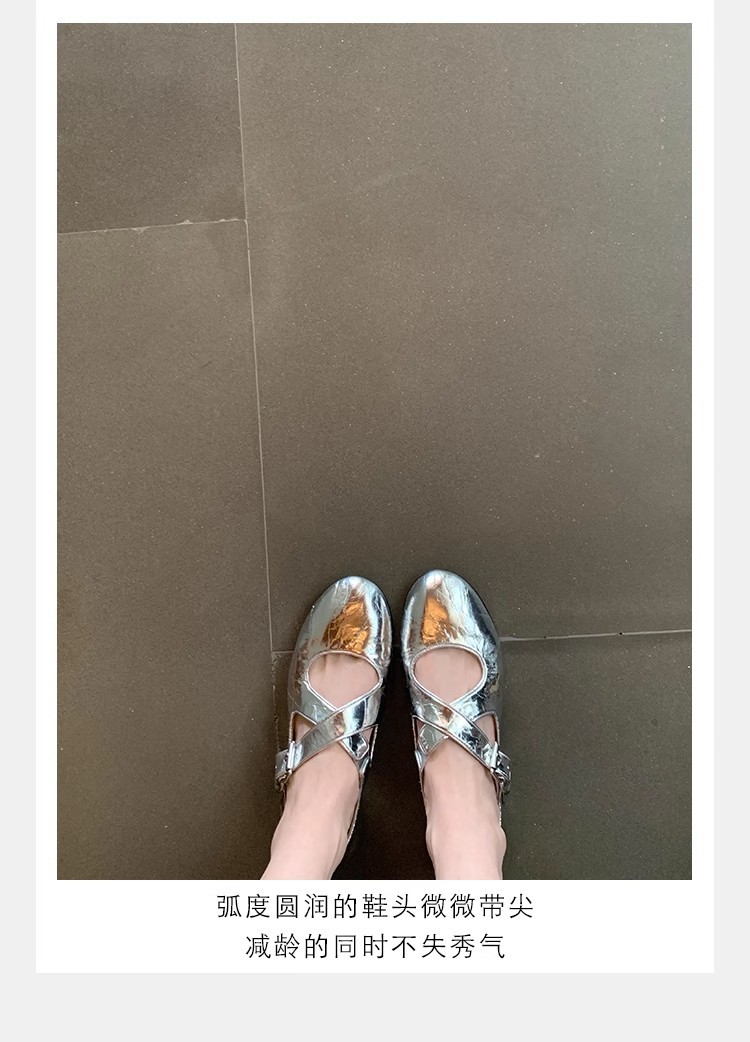 상품에서는 포도 어머니 제니 매너 ~ 크로스 벨트 실버 둥근 머리 메리 제인 여성 신발 낮은 입 플랫 슈즈