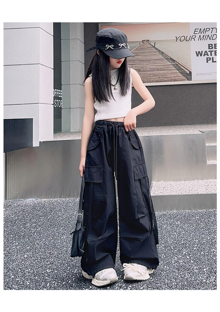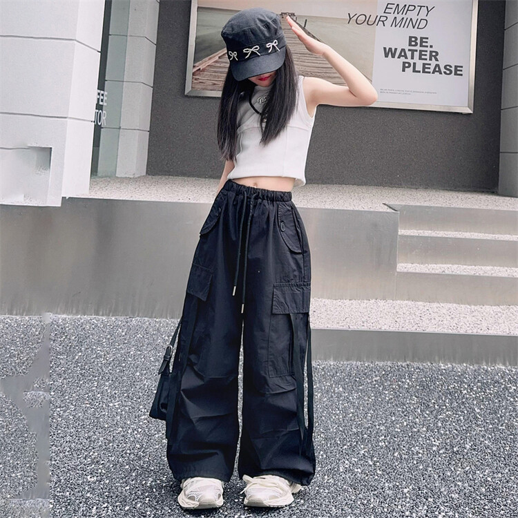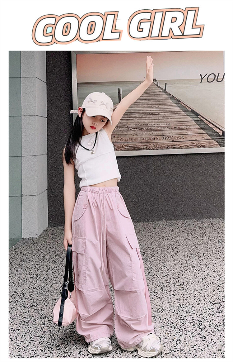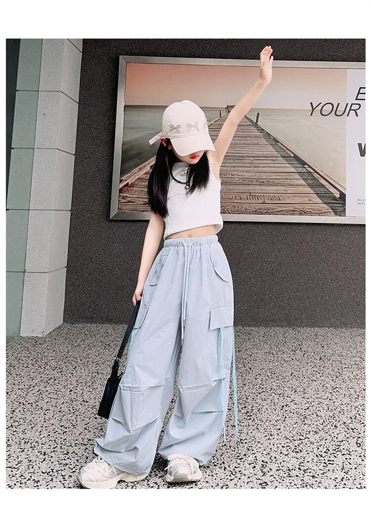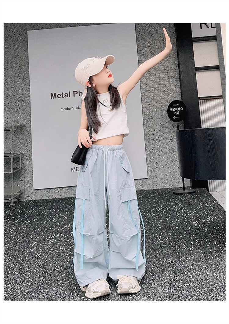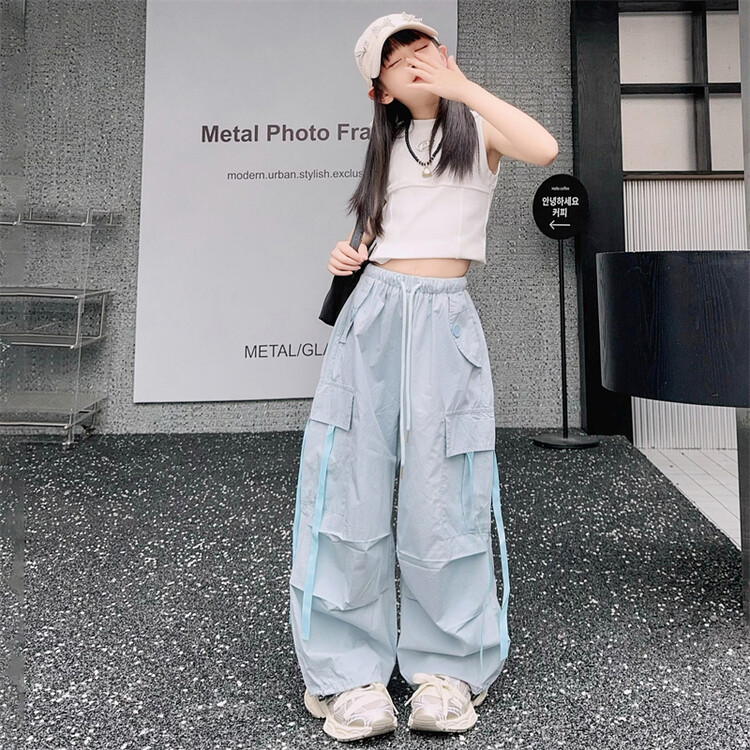 여아 작업복 2025 신작 여름 아동복 바지 얇은 스트리트 스타일 여아 와이드 팬츠 여름 정장스토어 가기
