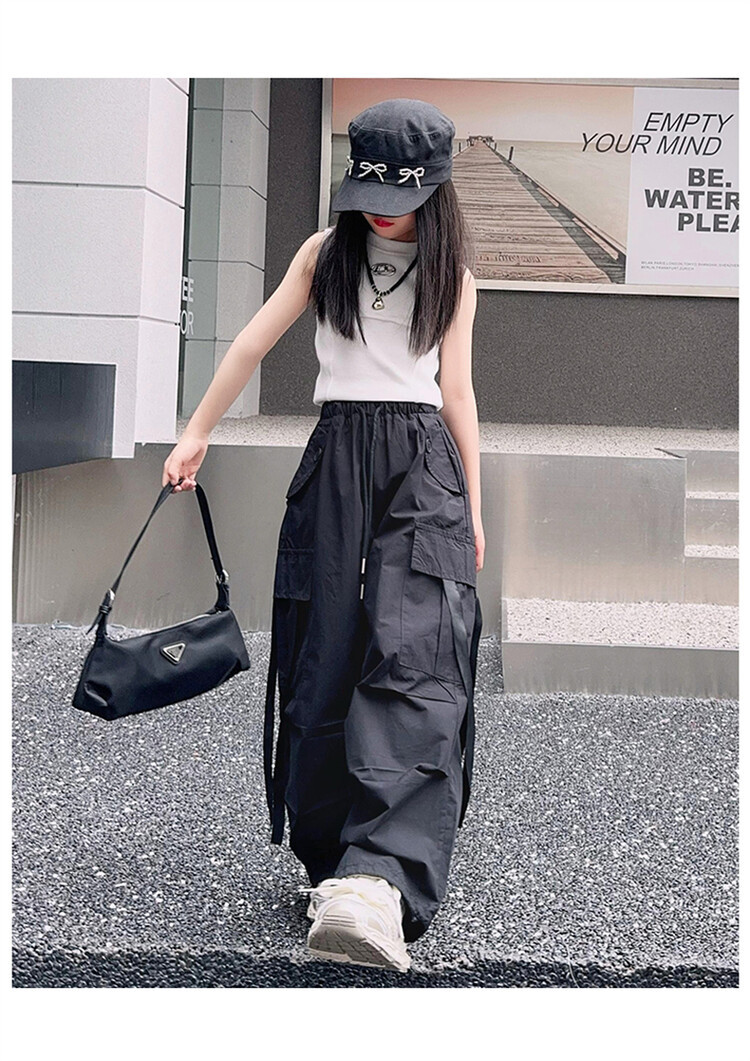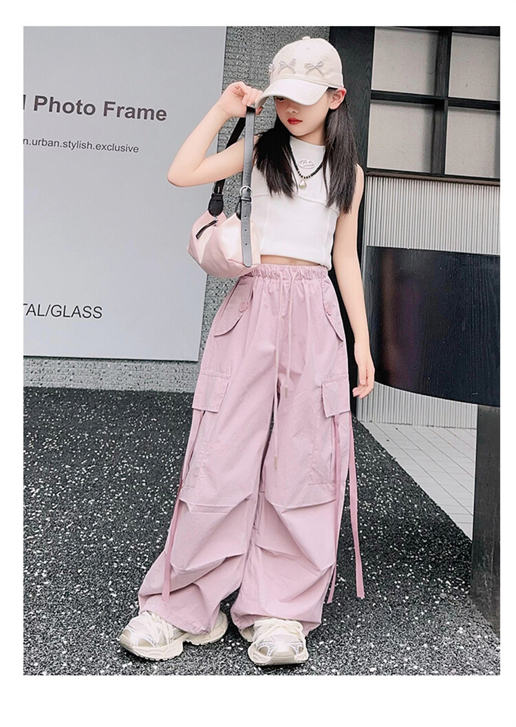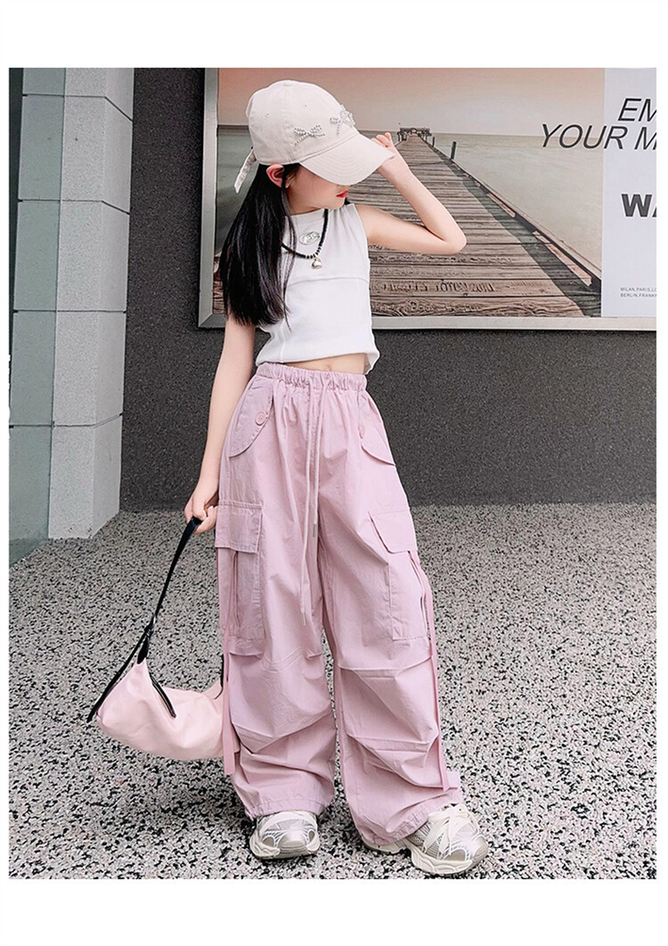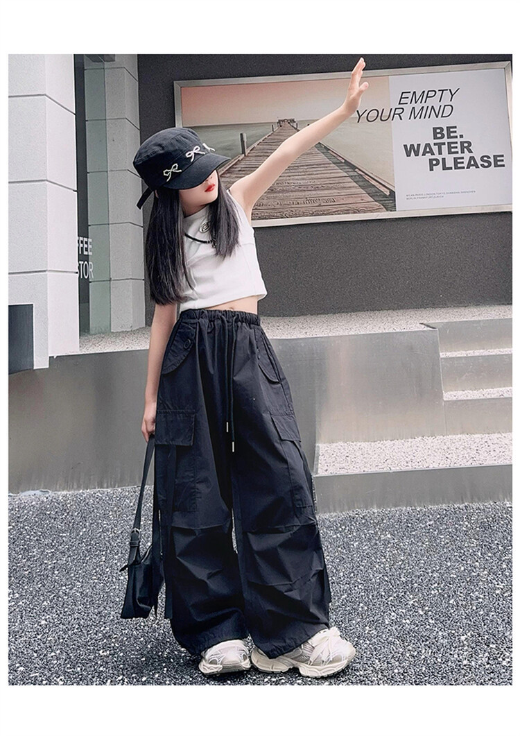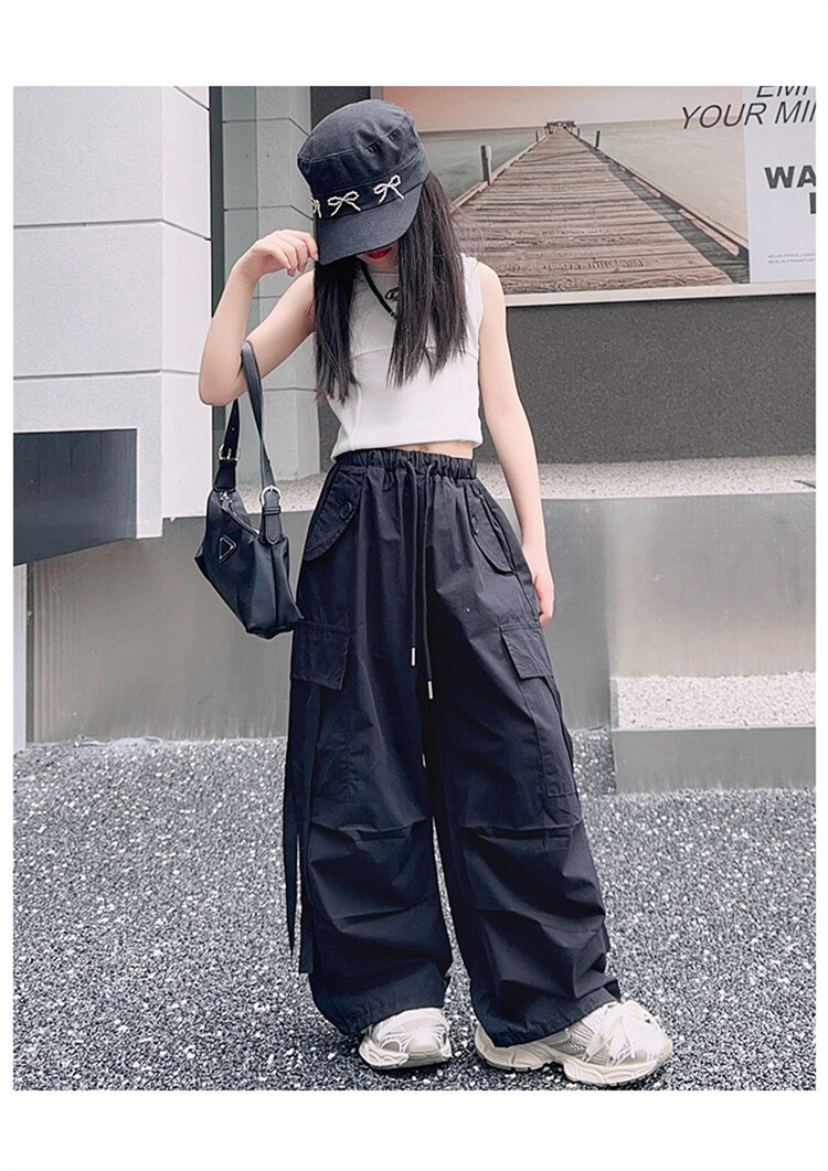 여아 작업복 2025 신작 여름 아동복 바지 얇은 스트리트 스타일 여아 와이드 팬츠 여름 정장스토어 가기
