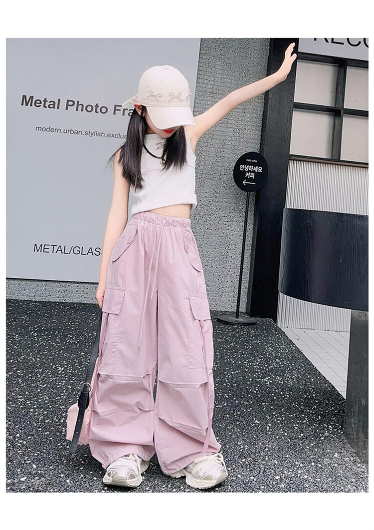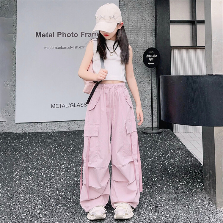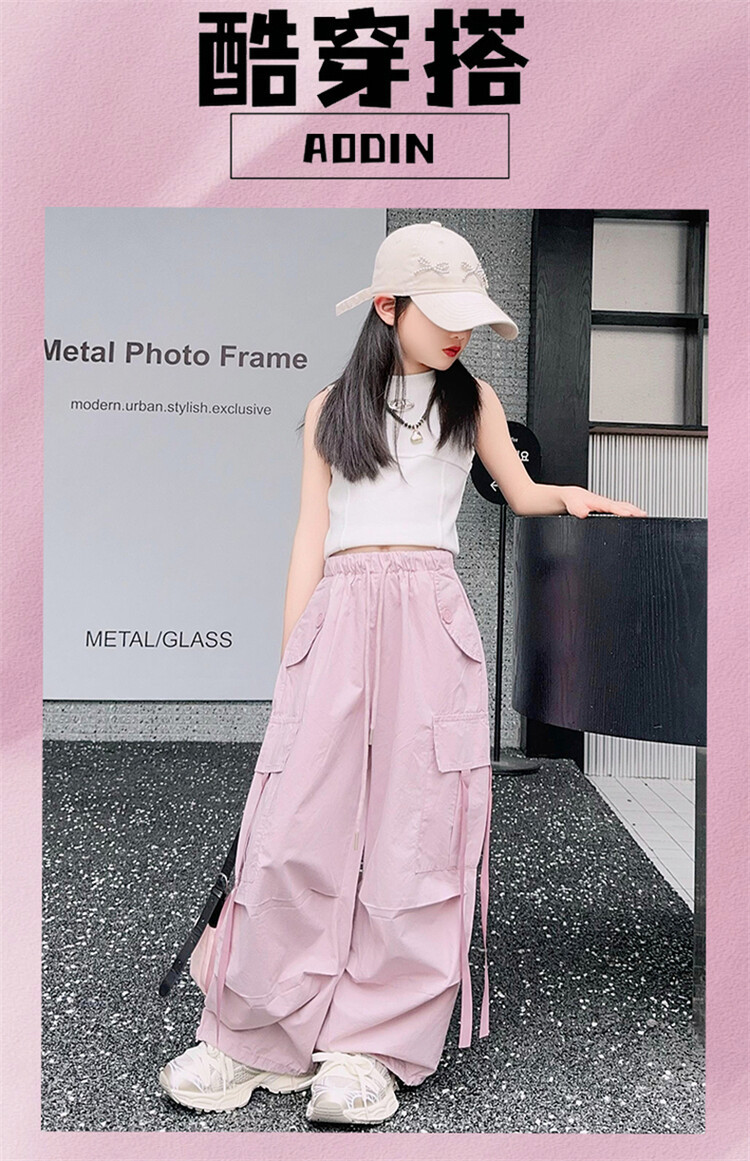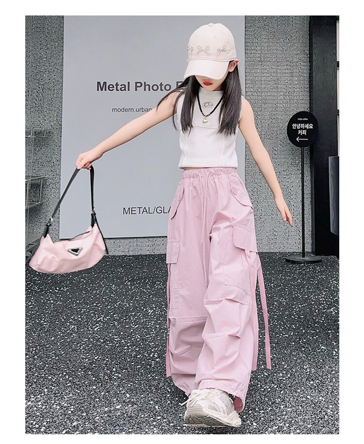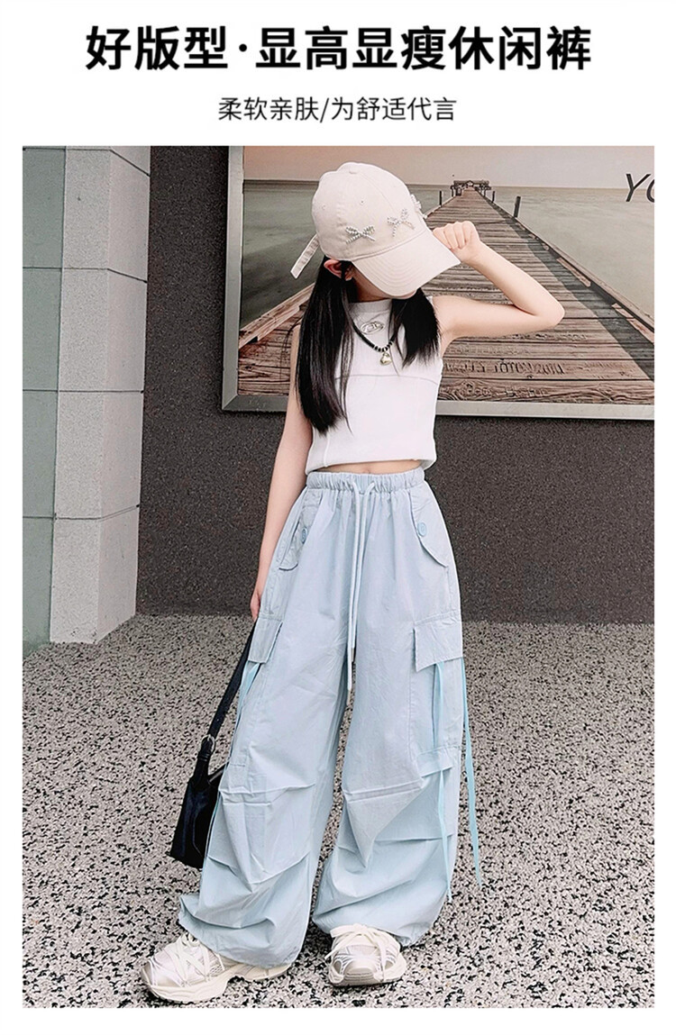 여아 작업복 2025 신작 여름 아동복 바지 얇은 스트리트 스타일 여아 와이드 팬츠 여름 정장