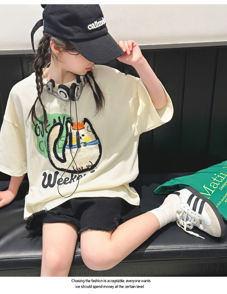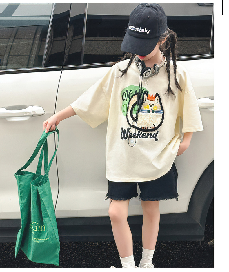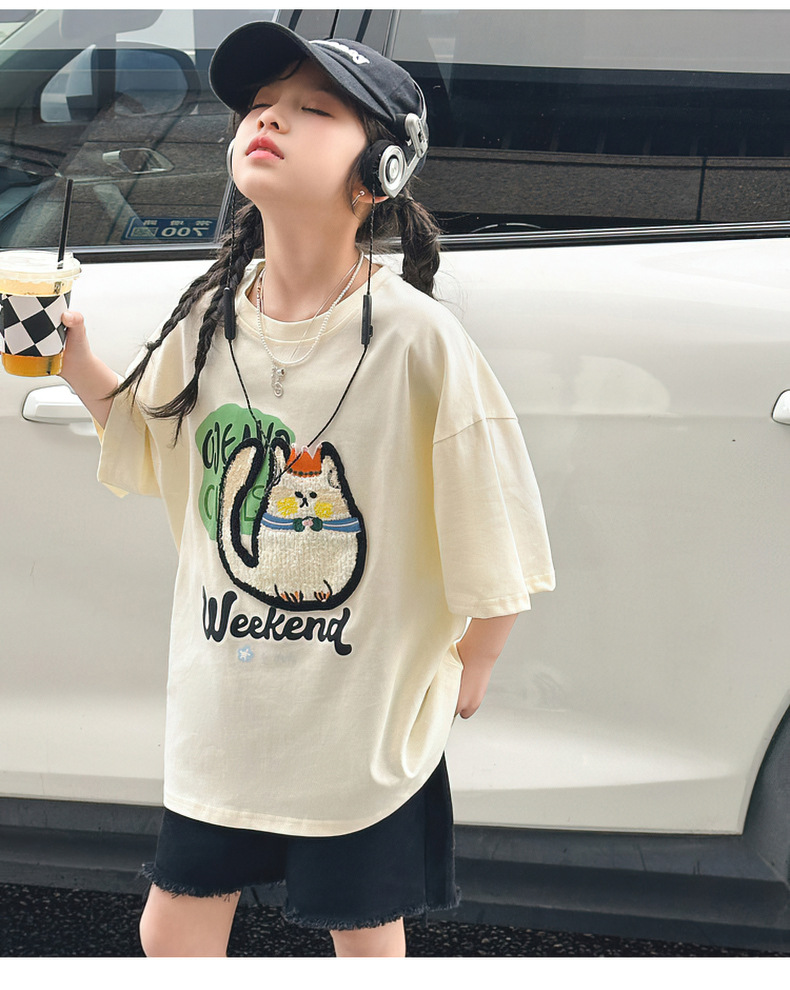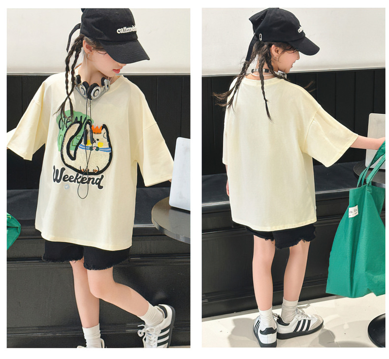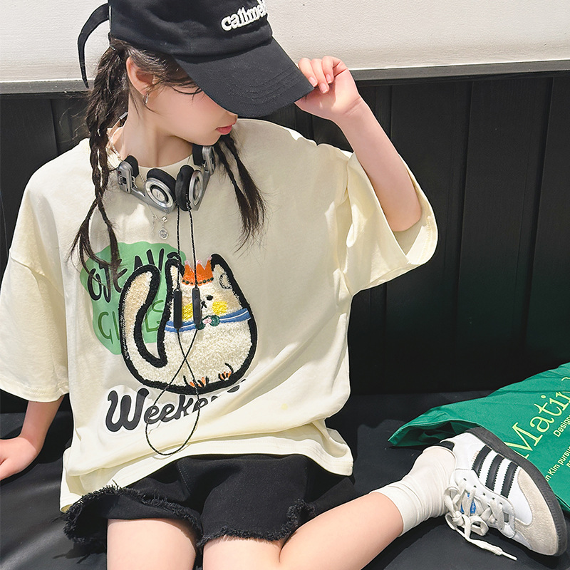 여자 티셔츠 반팔 여름 정장 새로운 어린이 스타일 탑 여름 여자 큰 어린이 얇은 티셔츠스토어 가기