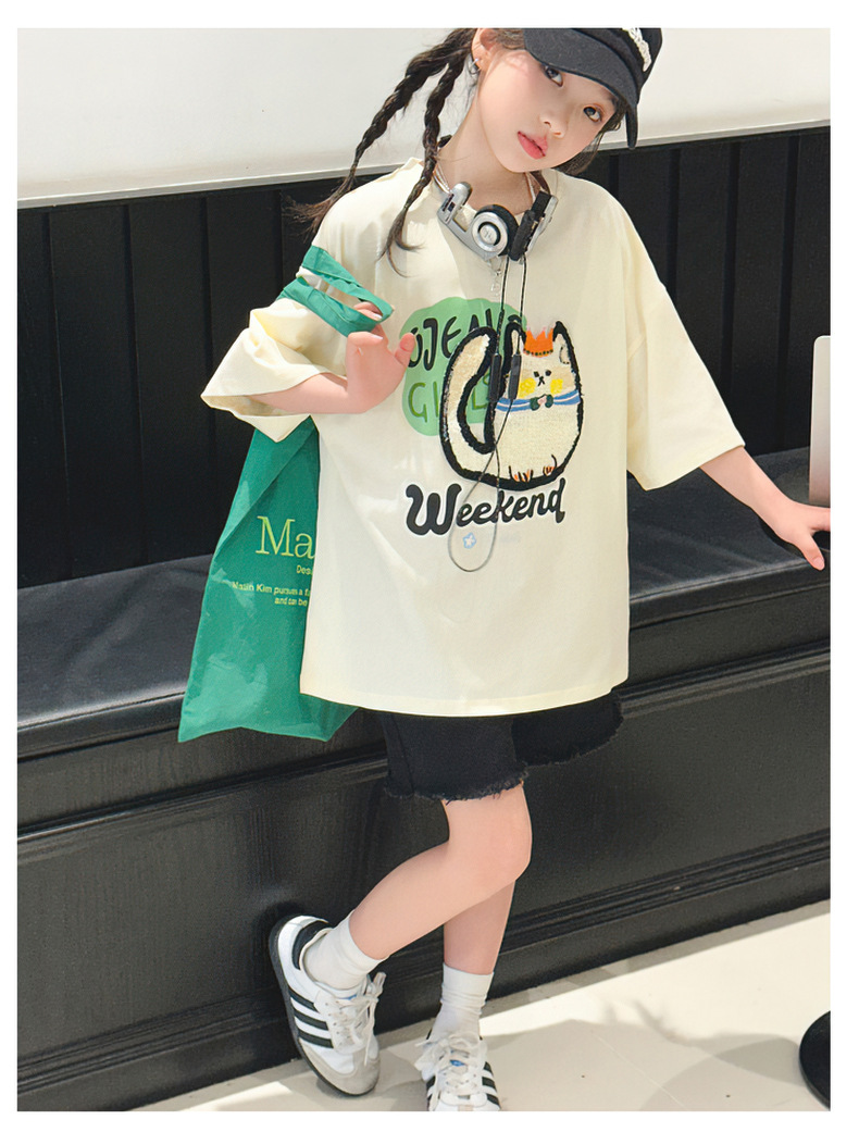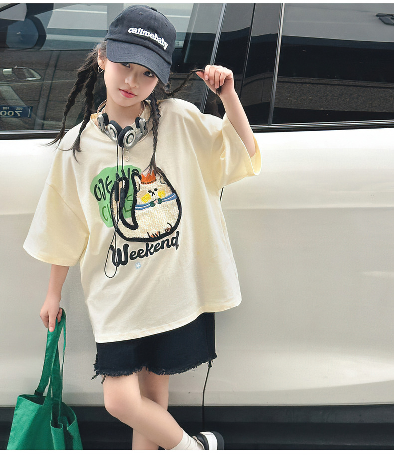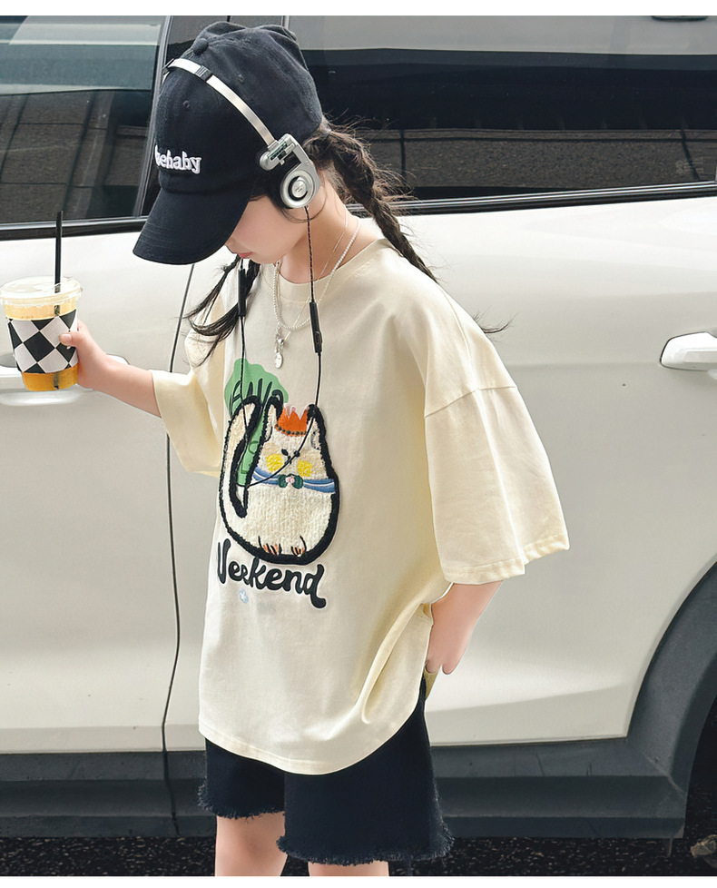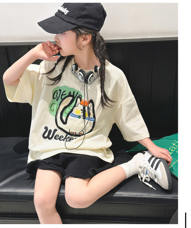 여자 티셔츠 반팔 여름 정장 새로운 어린이 스타일 탑 여름 여자 큰 어린이 얇은 티셔츠스토어 가기