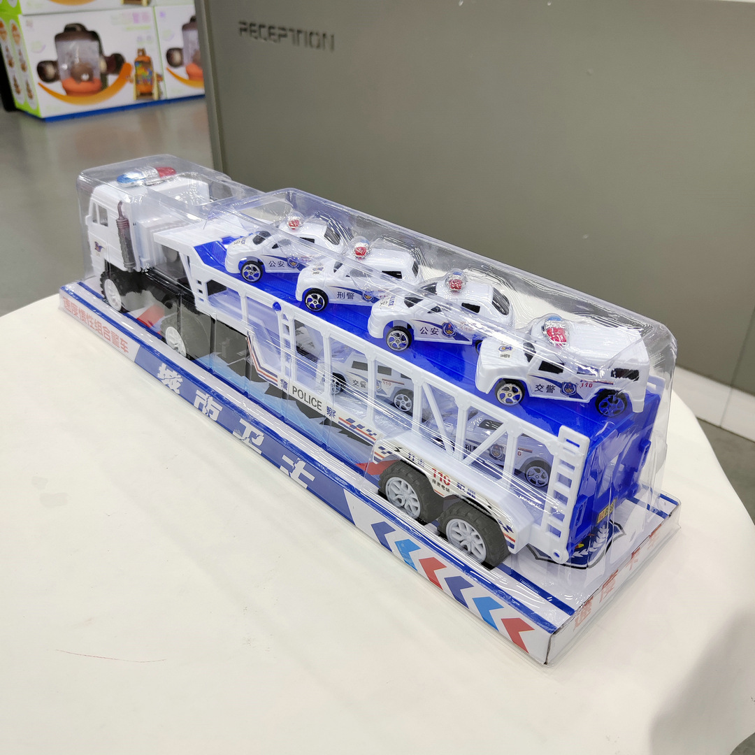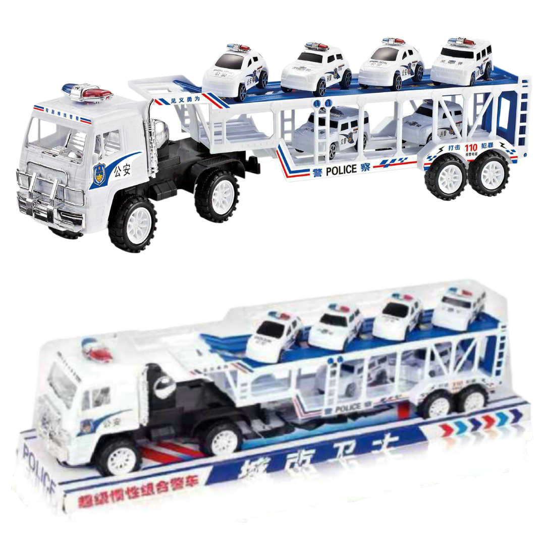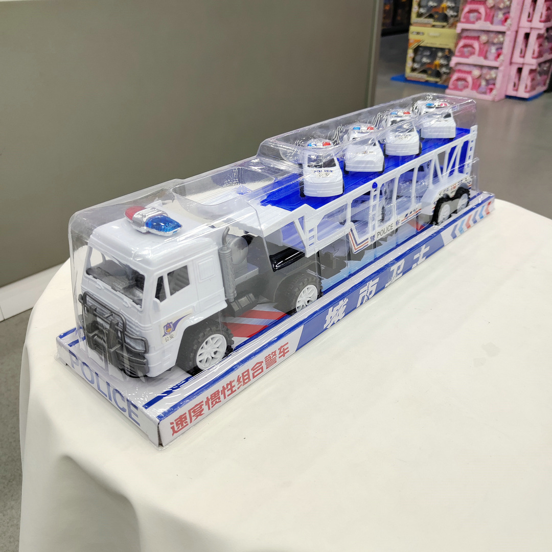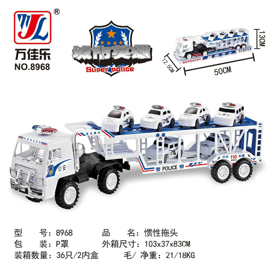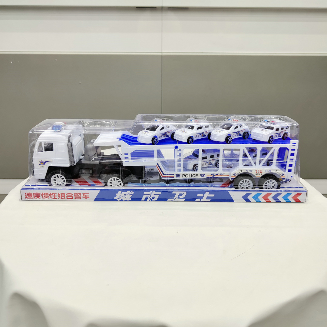 관성 경찰 이층 트레일러 8698 백포스 시뮬레이션 모델 퍼즐 놀이 집 마구간 어린이 장난감 혼합 배치
