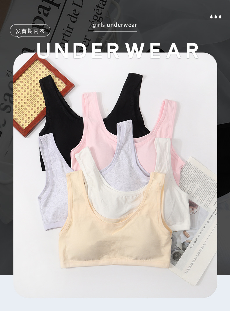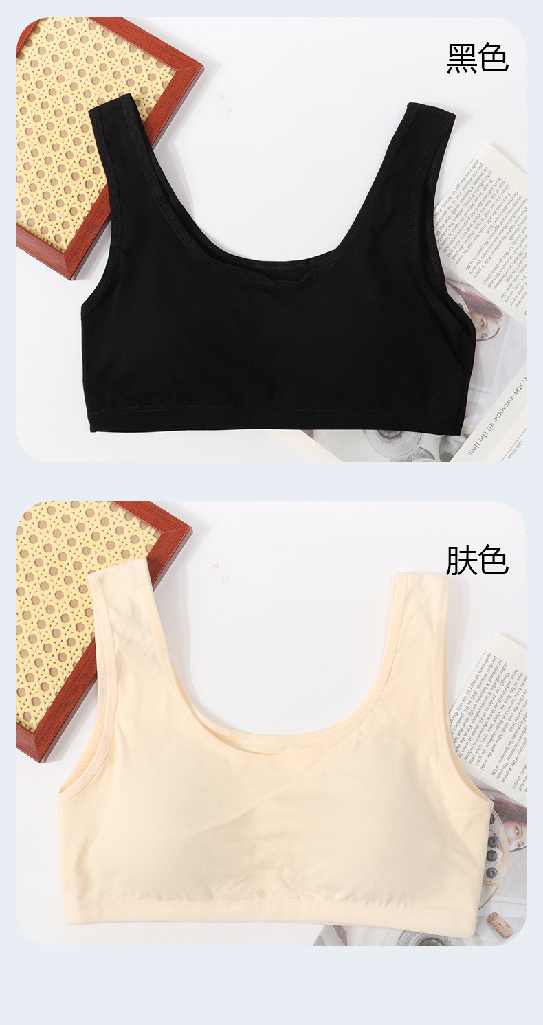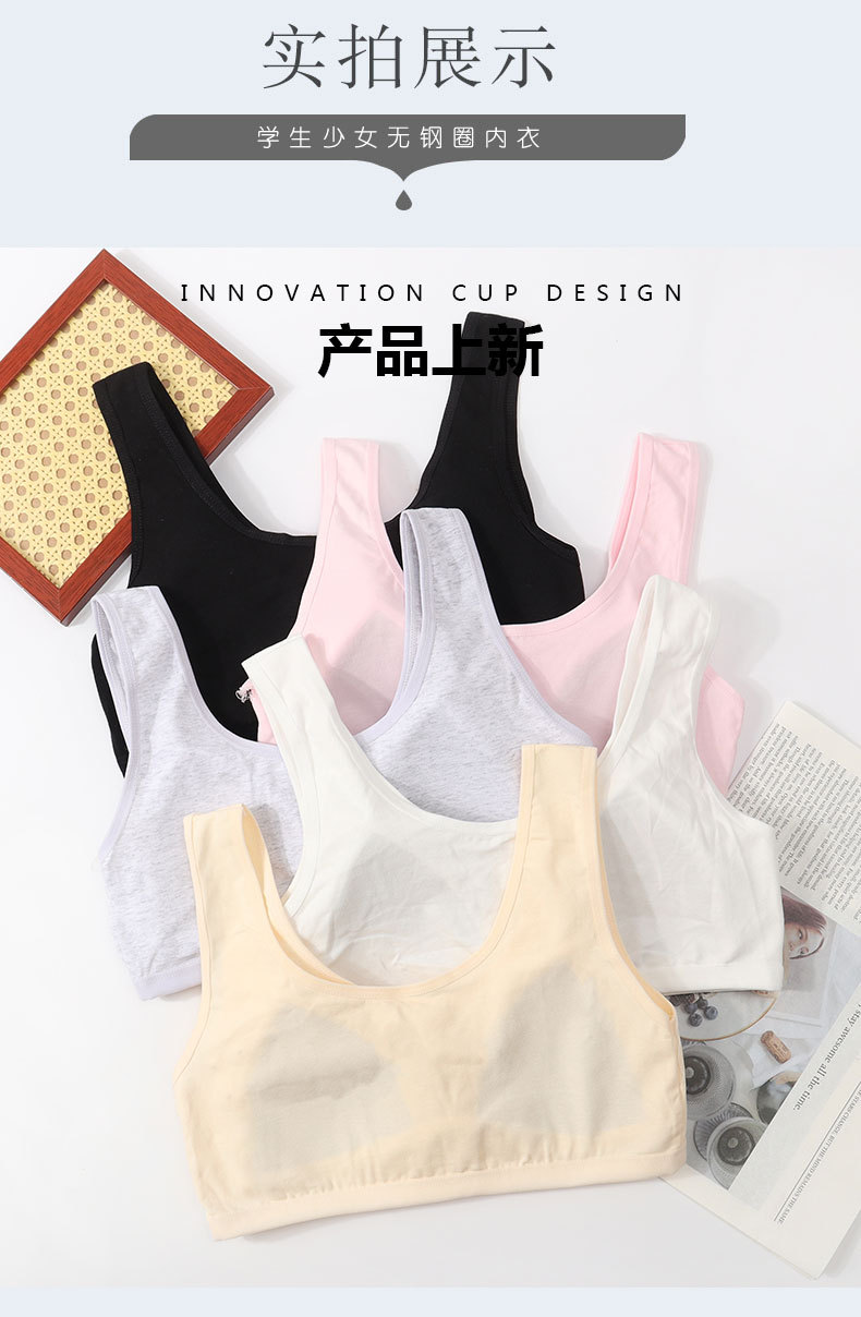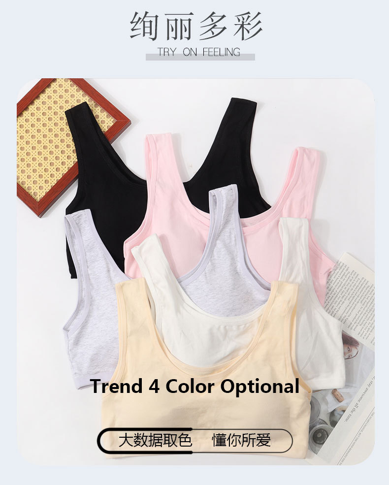 퓨어 코튼 걸 브라 원피스 고정 컵 속옷 여성 학생의 무테 스포츠 소녀 조끼 개발