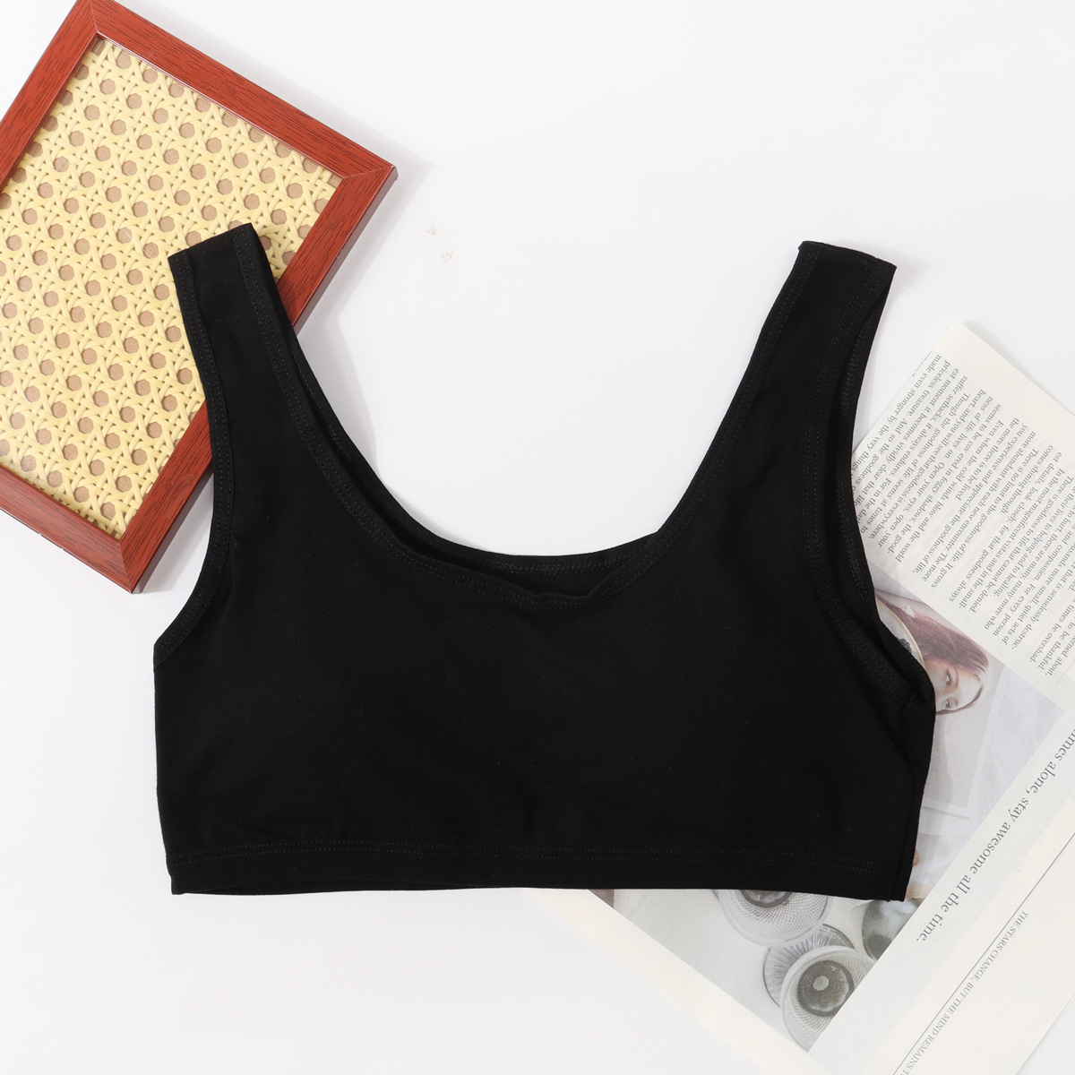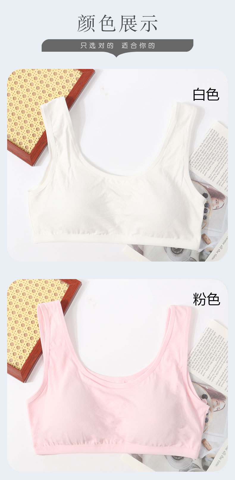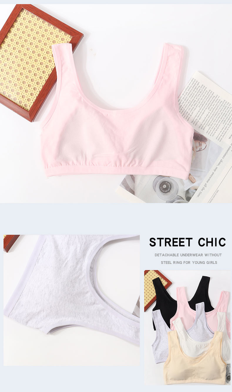 퓨어 코튼 걸 브라 원피스 고정 컵 속옷 여성 학생의 무테 스포츠 소녀 조끼 개발