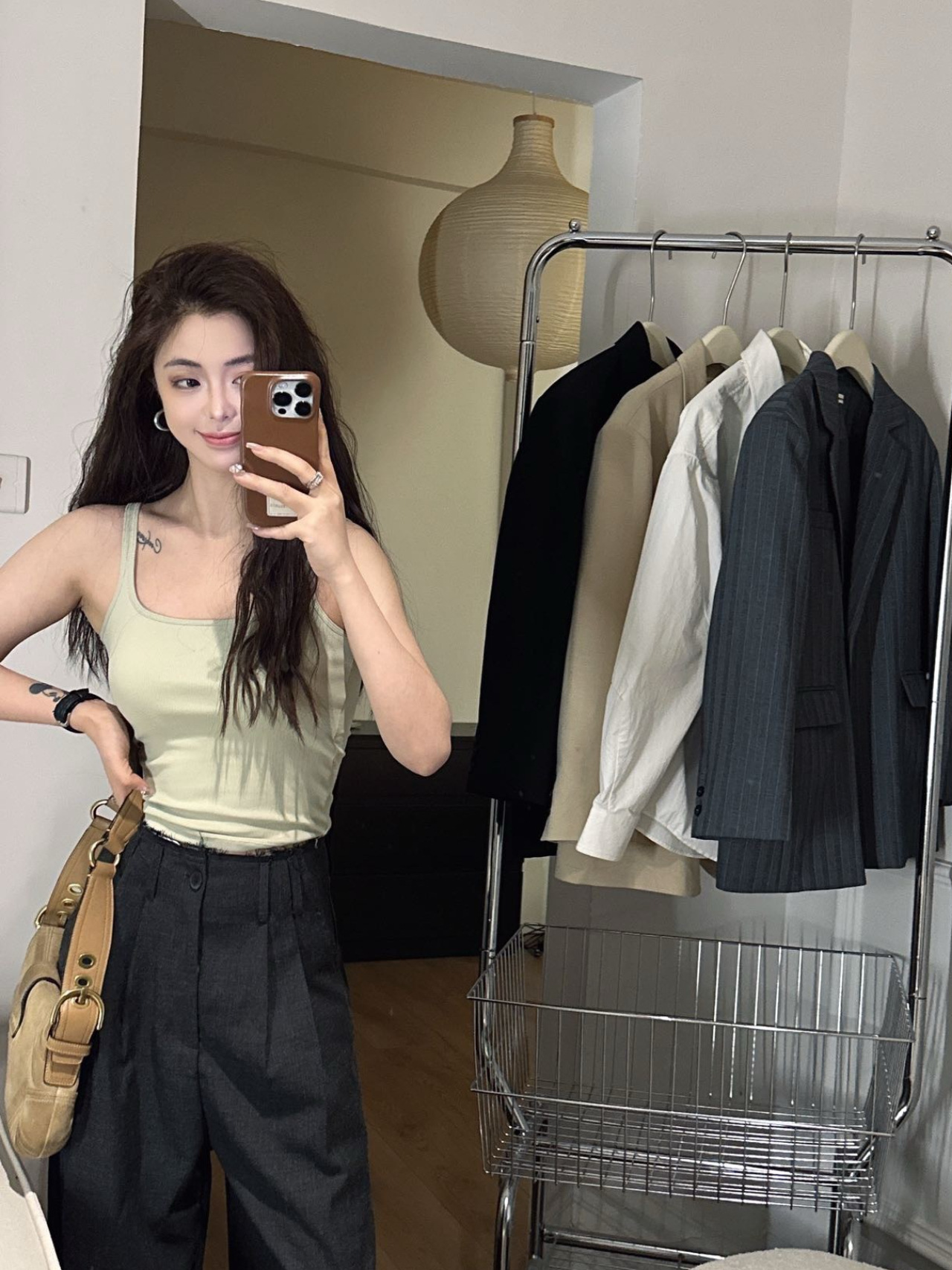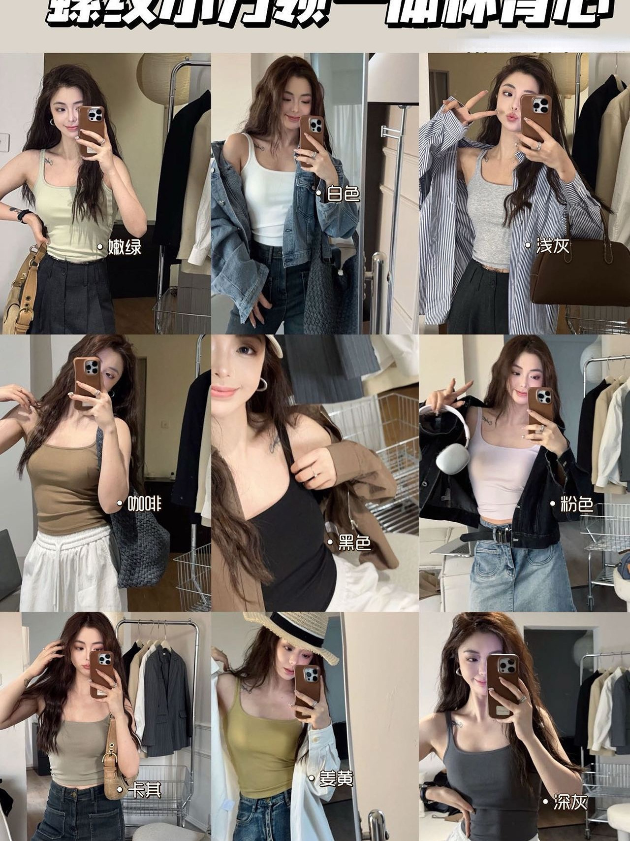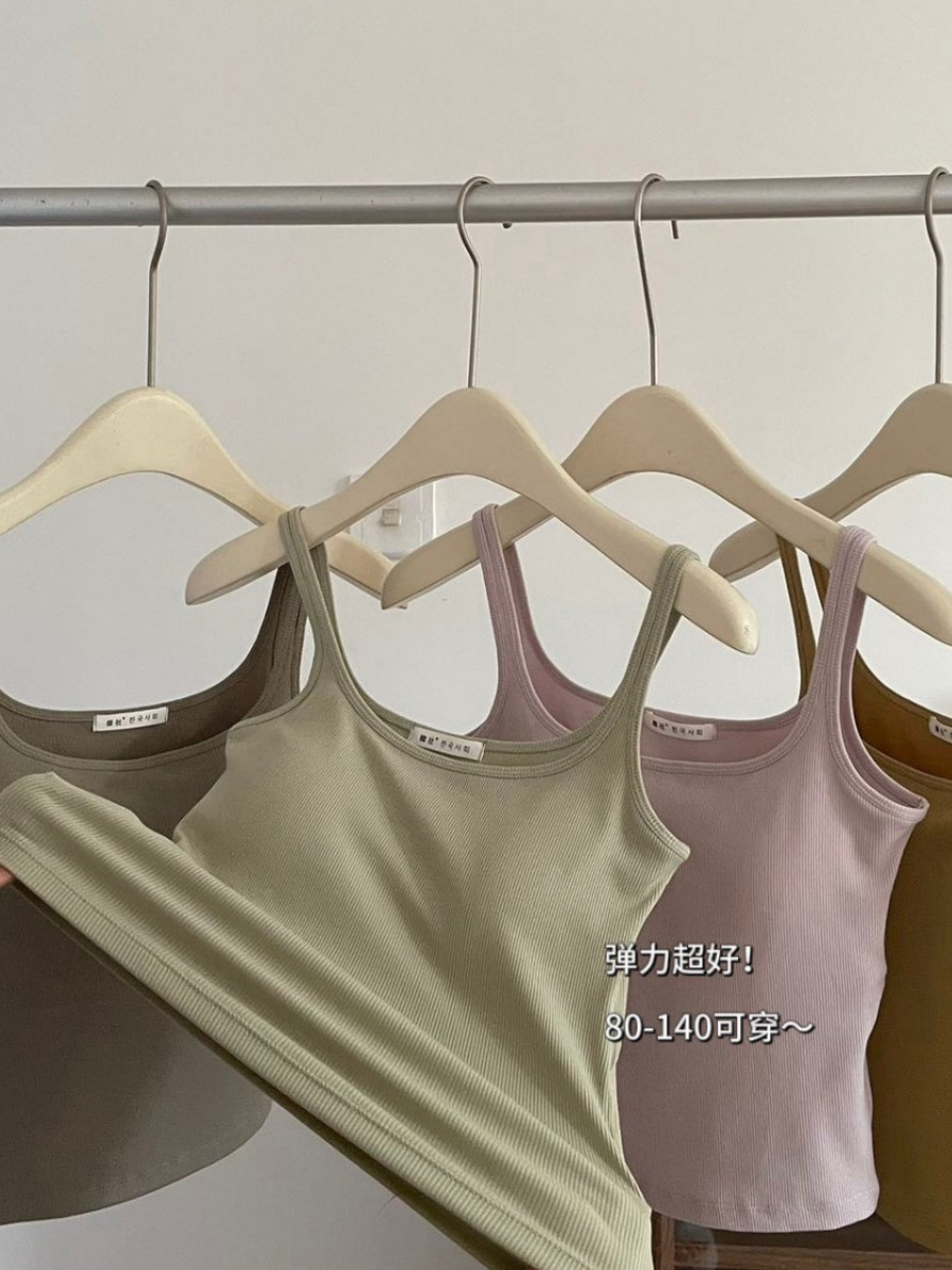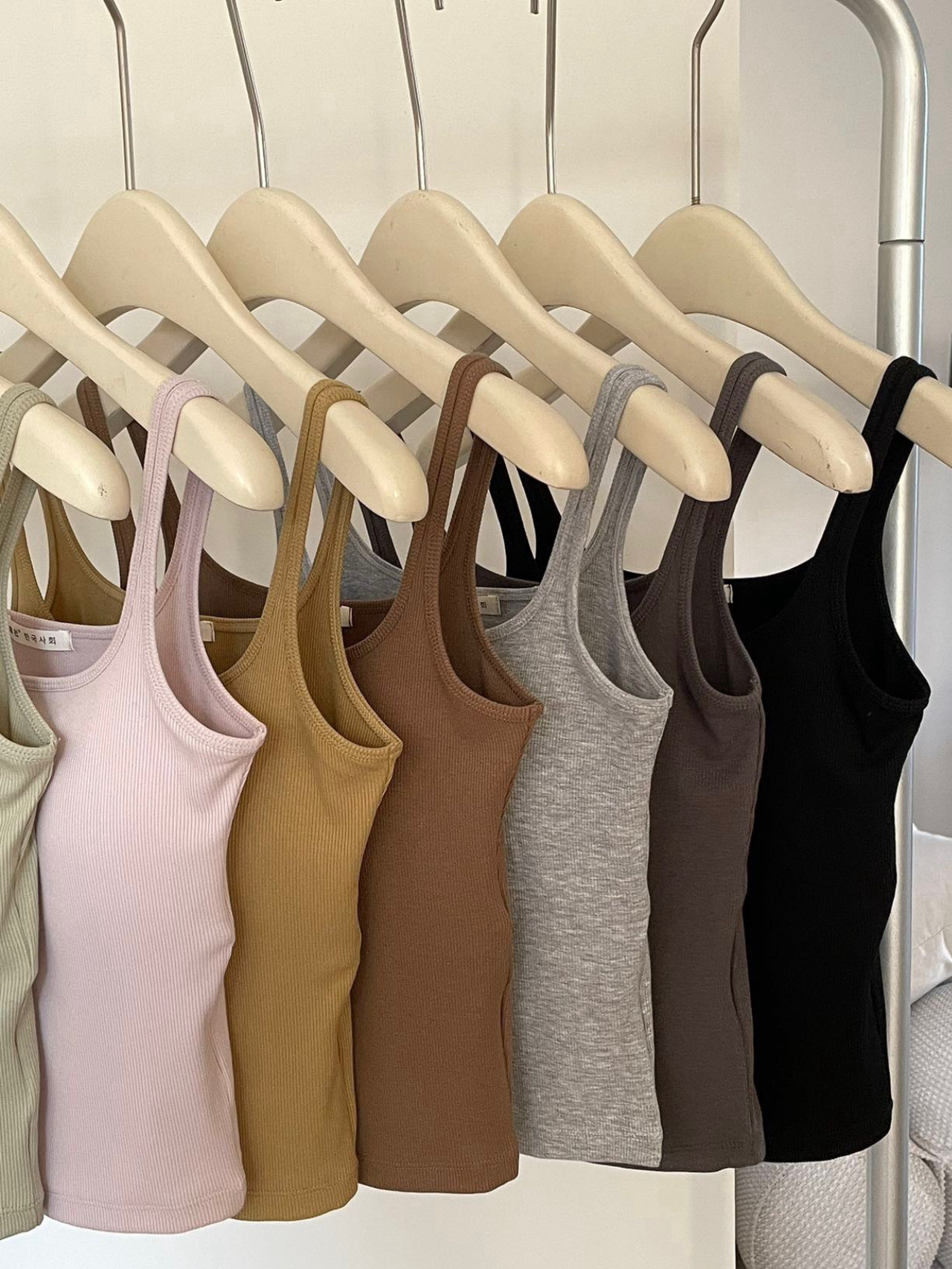 작은 사각 칼라가 있는 끈나시탑, 가슴 패드가 내장된 골지 원컵 이너웨어, 여름용 컬러풀 아우터탑 여성용 6612스토어 가기