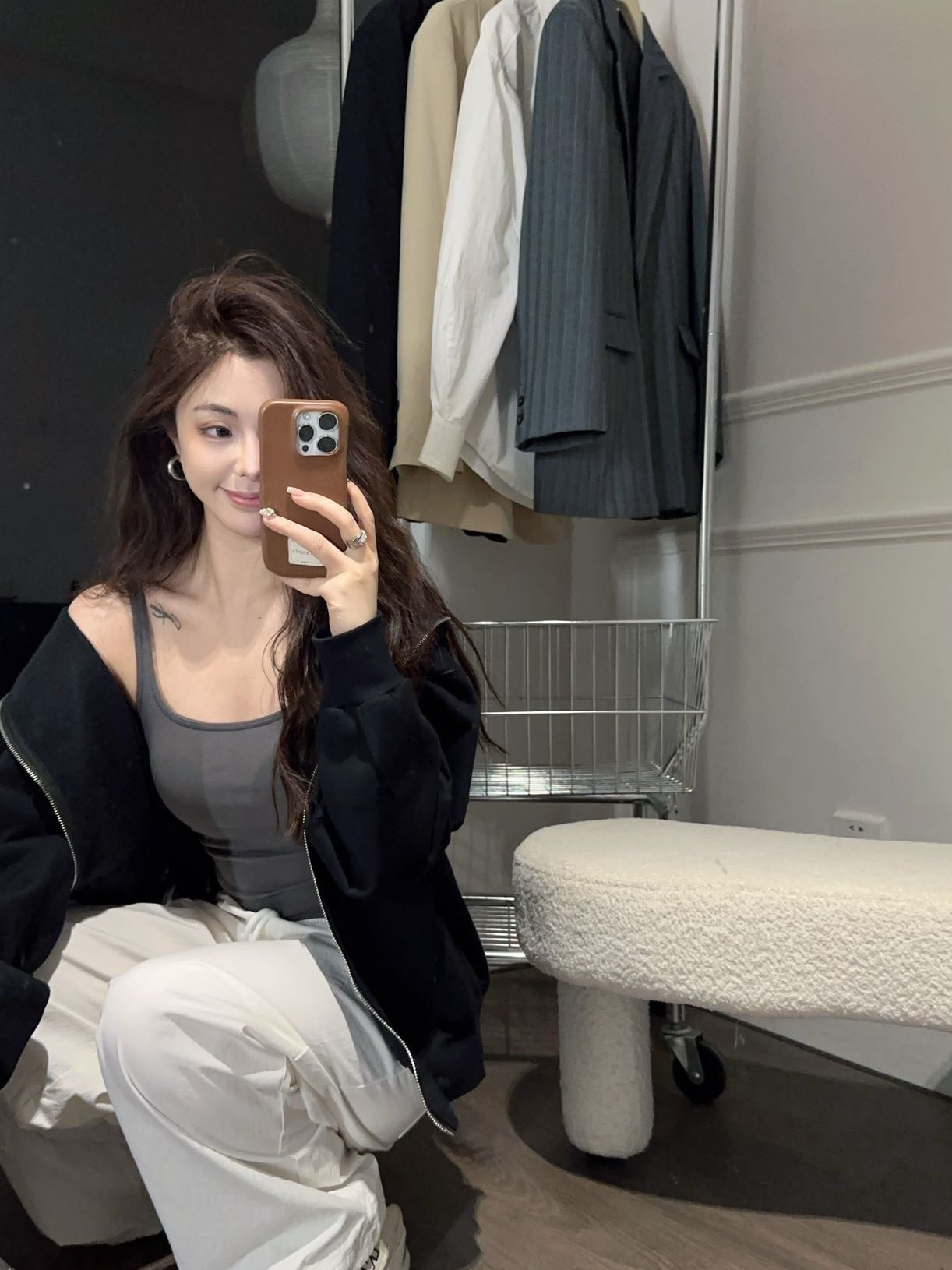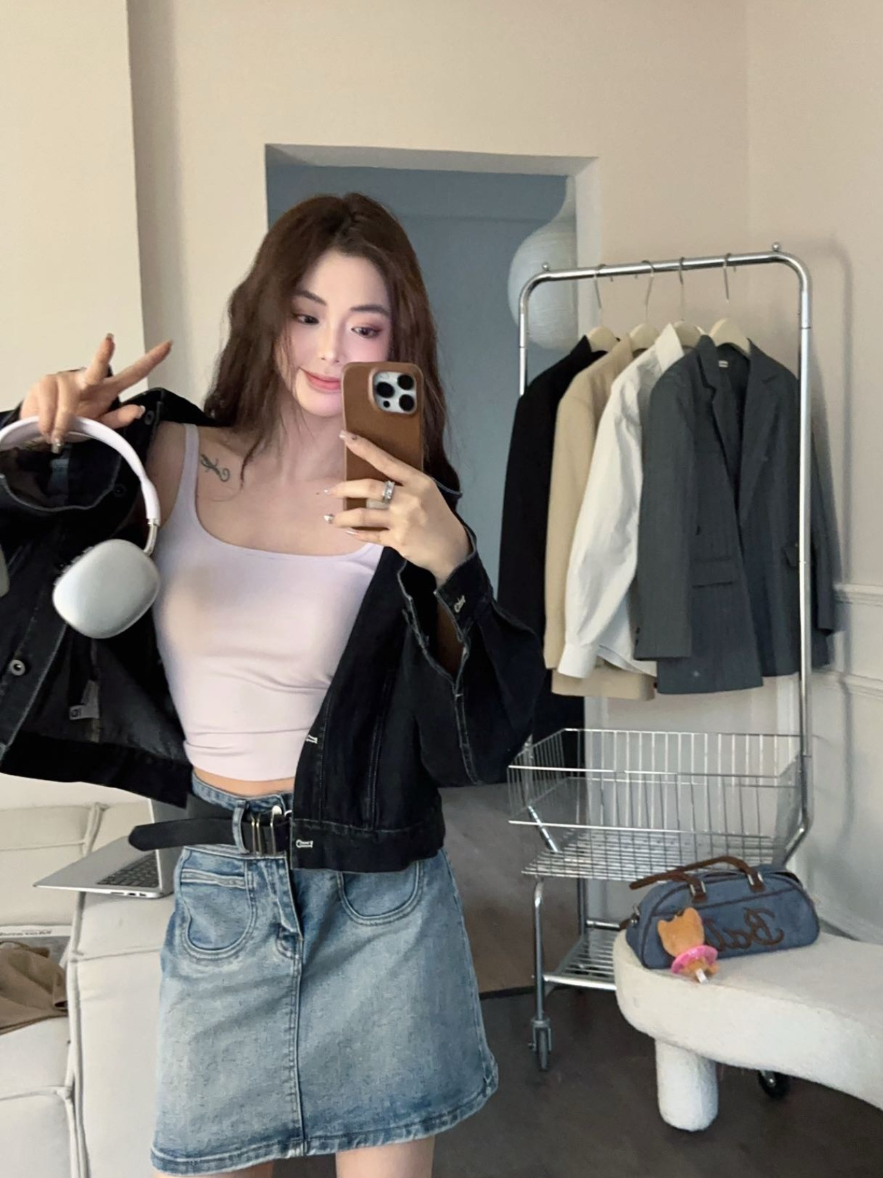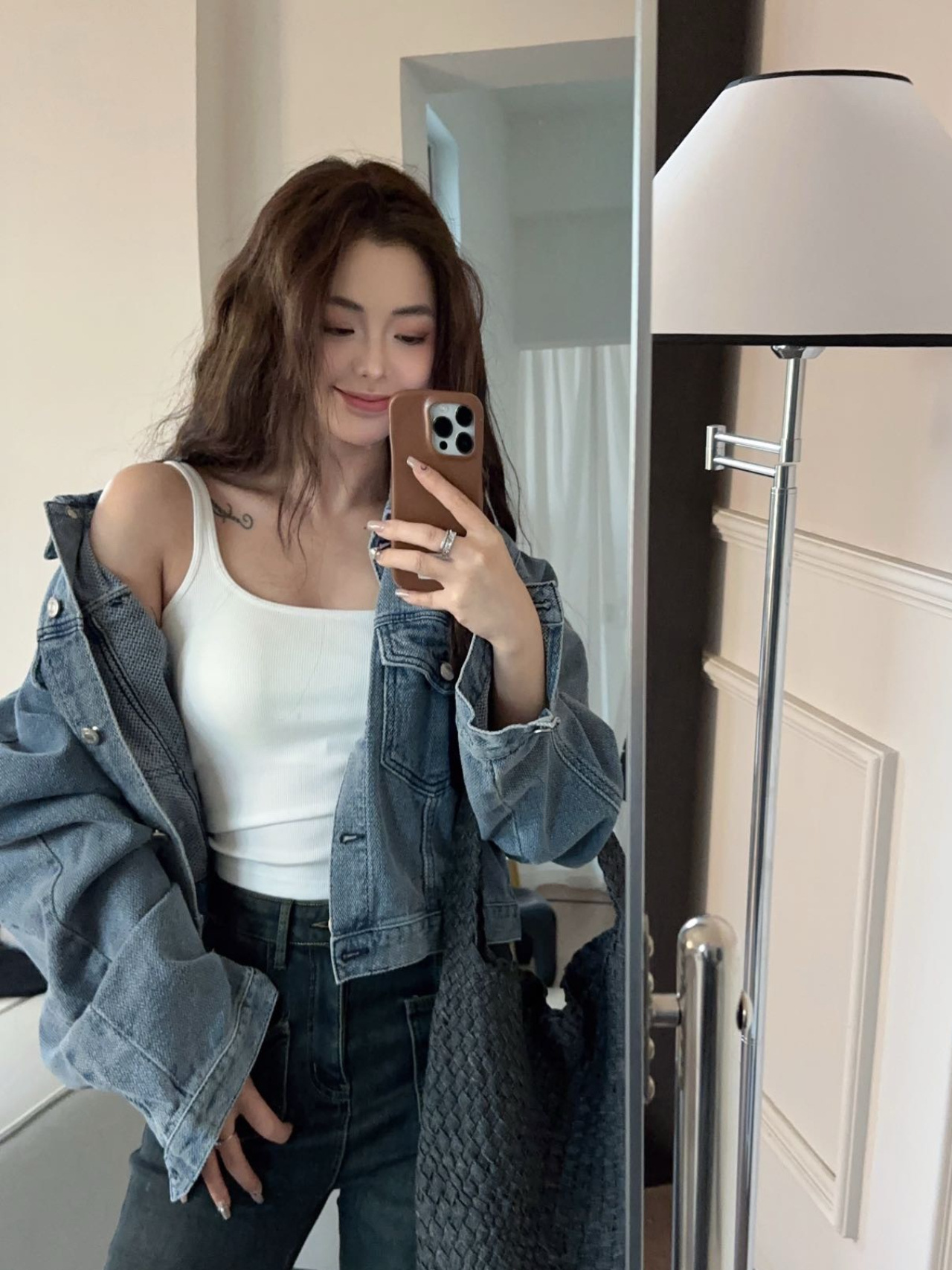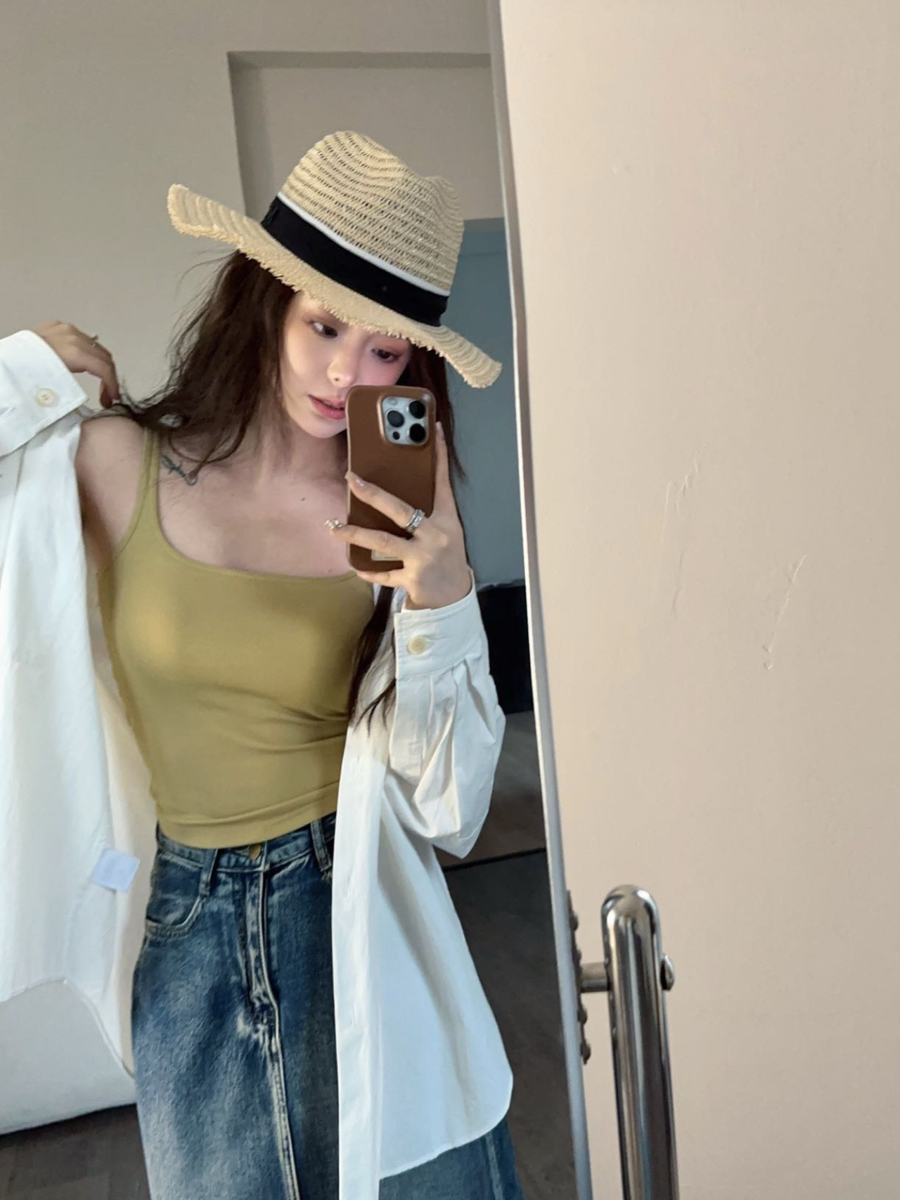 작은 사각 칼라가 있는 끈나시탑, 가슴 패드가 내장된 골지 원컵 이너웨어, 여름용 컬러풀 아우터탑 여성용 6612스토어 가기