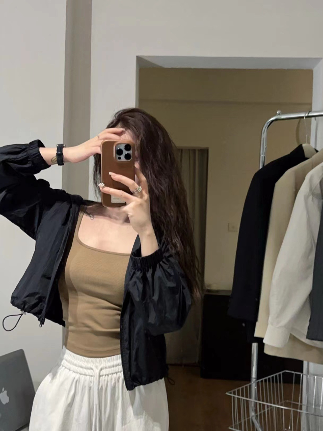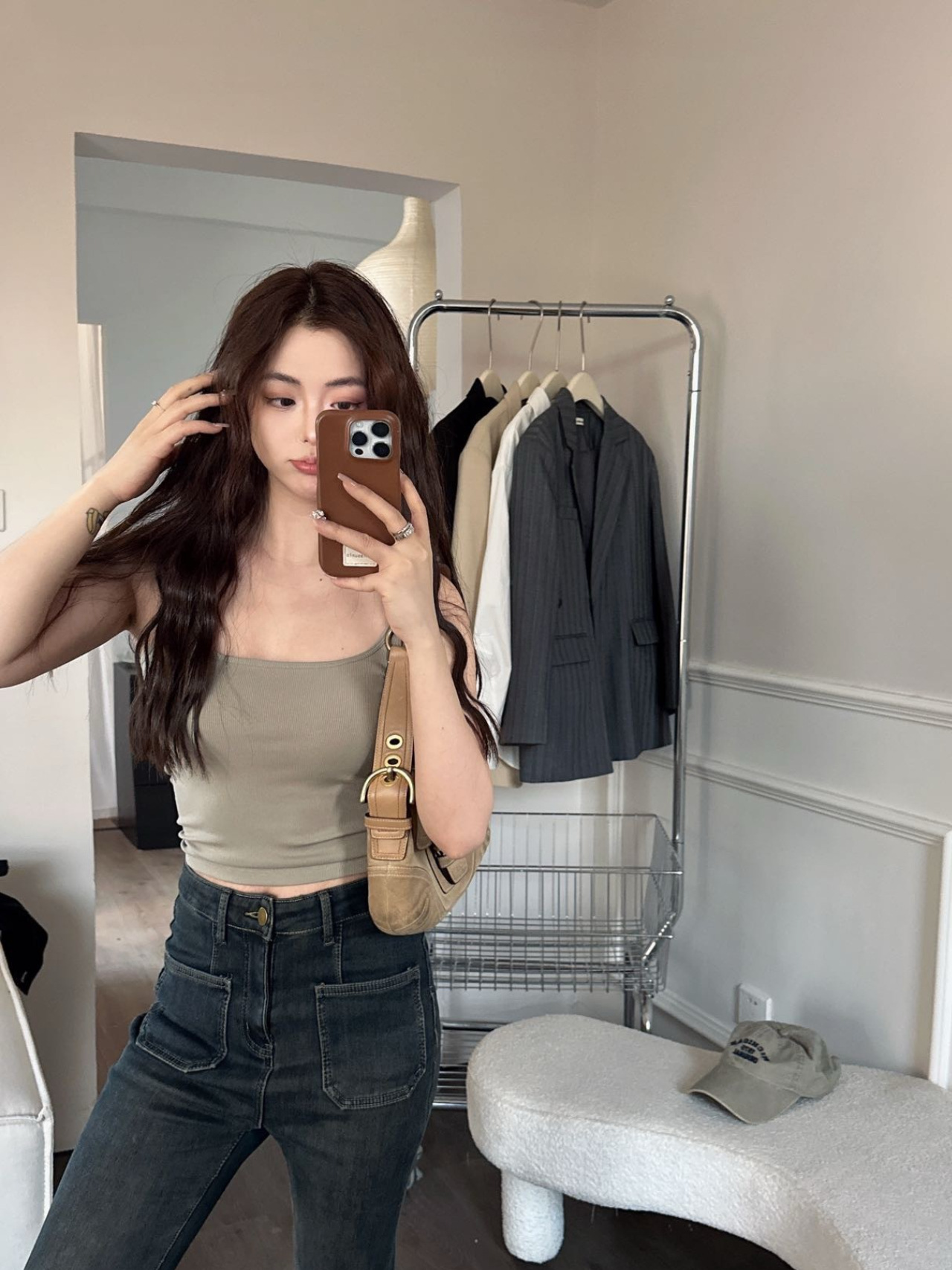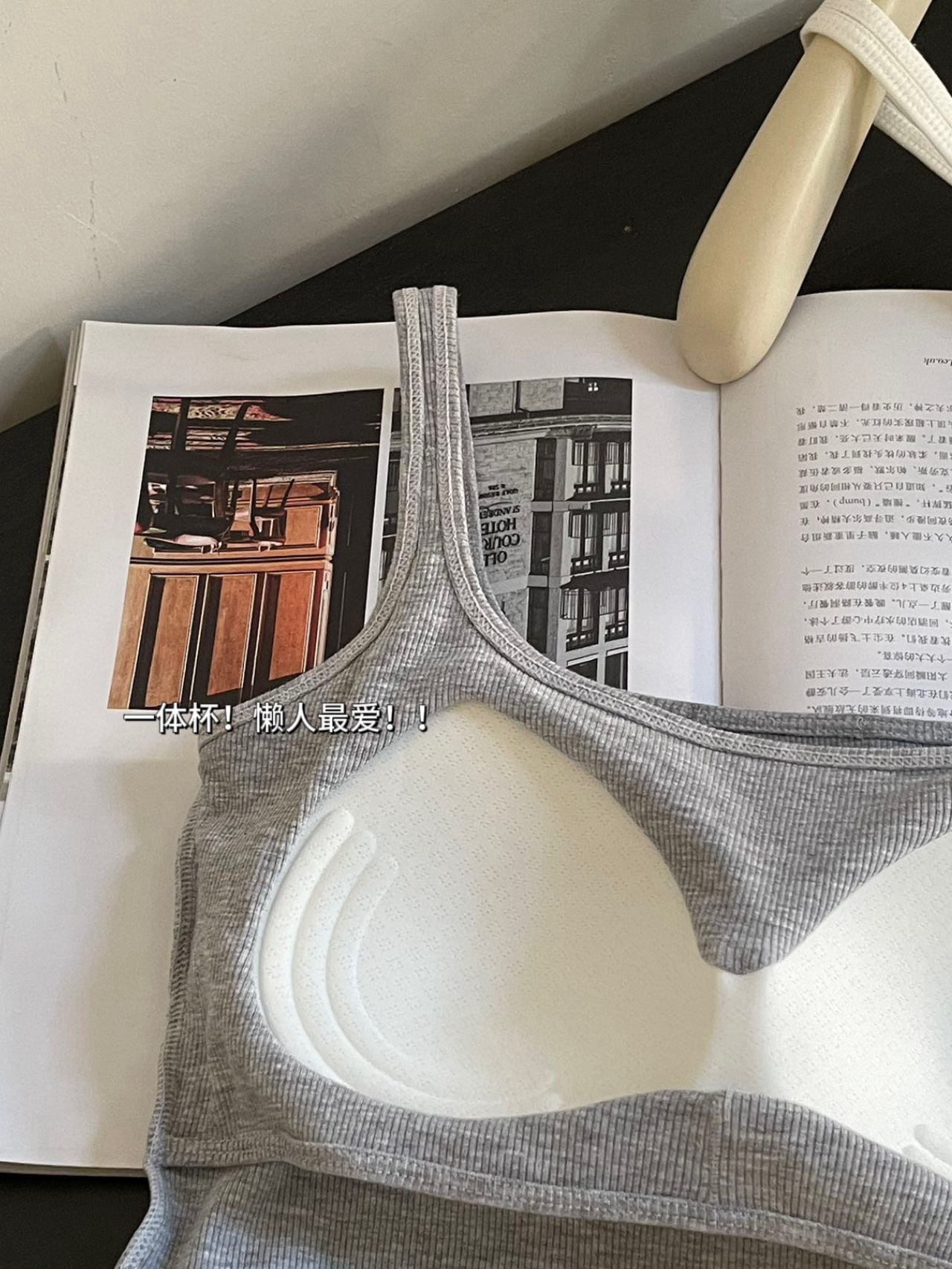 작은 사각 칼라가 있는 끈나시탑, 가슴 패드가 내장된 골지 원컵 이너웨어, 여름용 컬러풀 아우터탑 여성용 6612