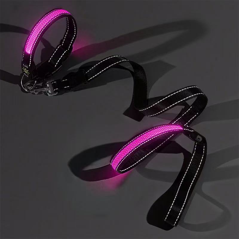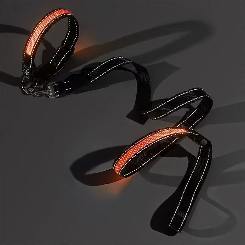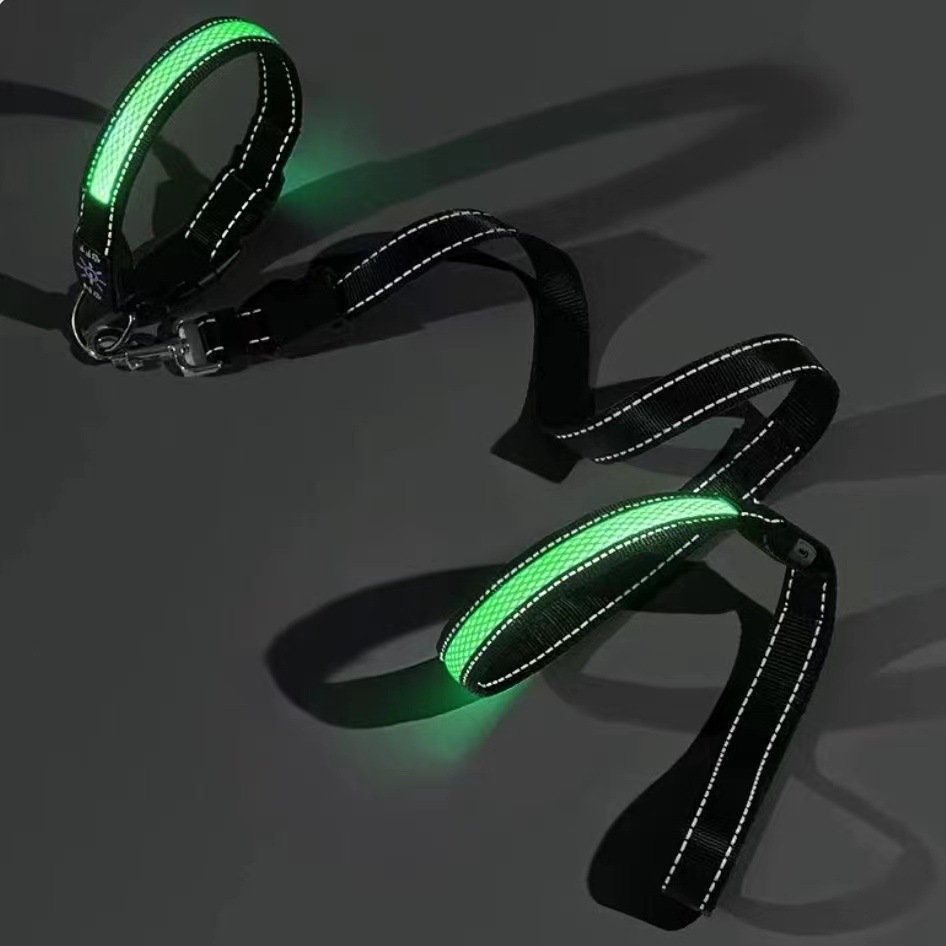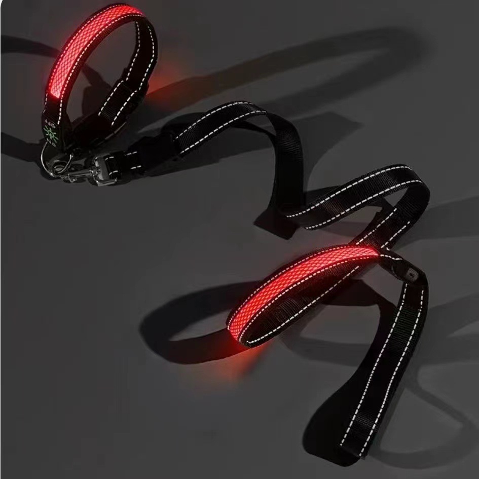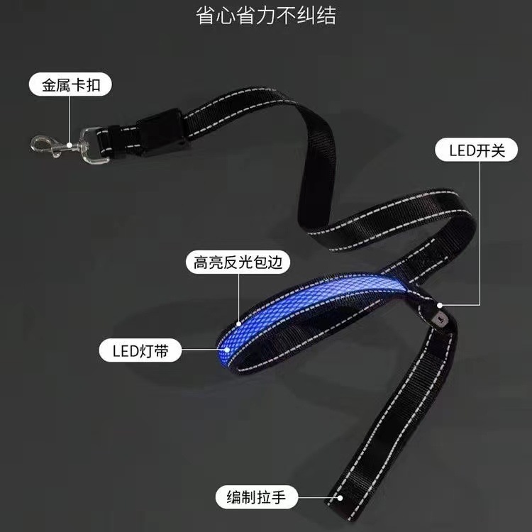 LED 발광 견인 로프 개 야외 개 가죽끈 야간 안전 개 산책 USB 충전 방수 사용자 정의스토어 가기