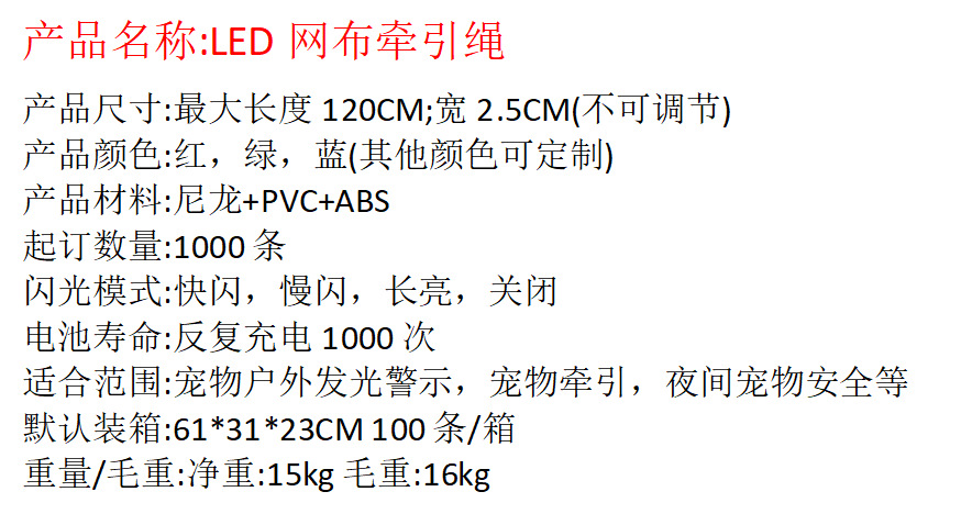 LED 발광 견인 로프 개 야외 개 가죽끈 야간 안전 개 산책 USB 충전 방수 사용자 정의