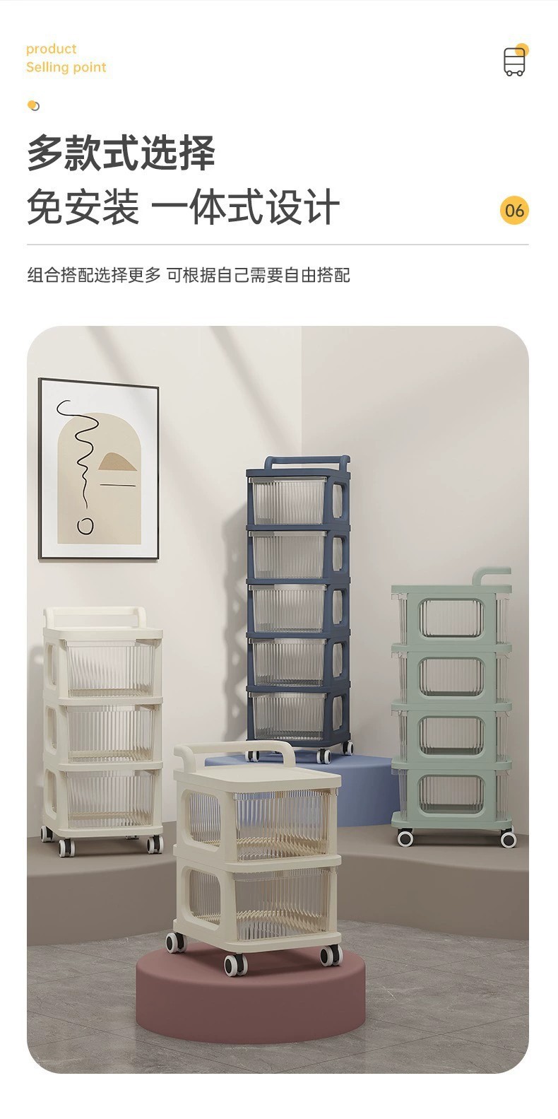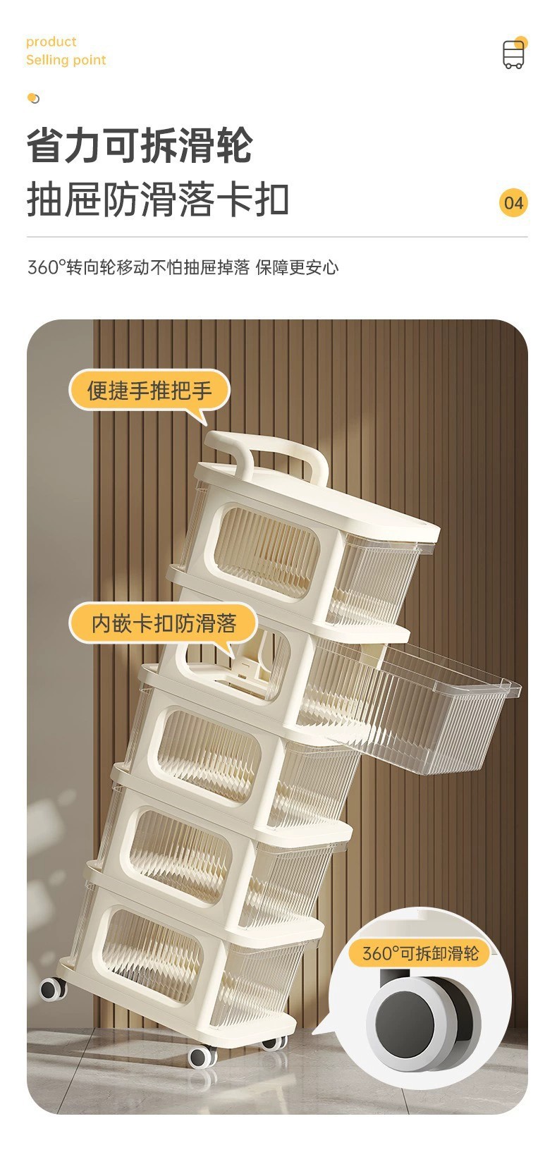바퀴 잡화 저장 랙을 가진 투명한 서랍 유형 트롤리 저장 랙 간식 장난감 아기 제품 보관 캐비닛스토어 가기